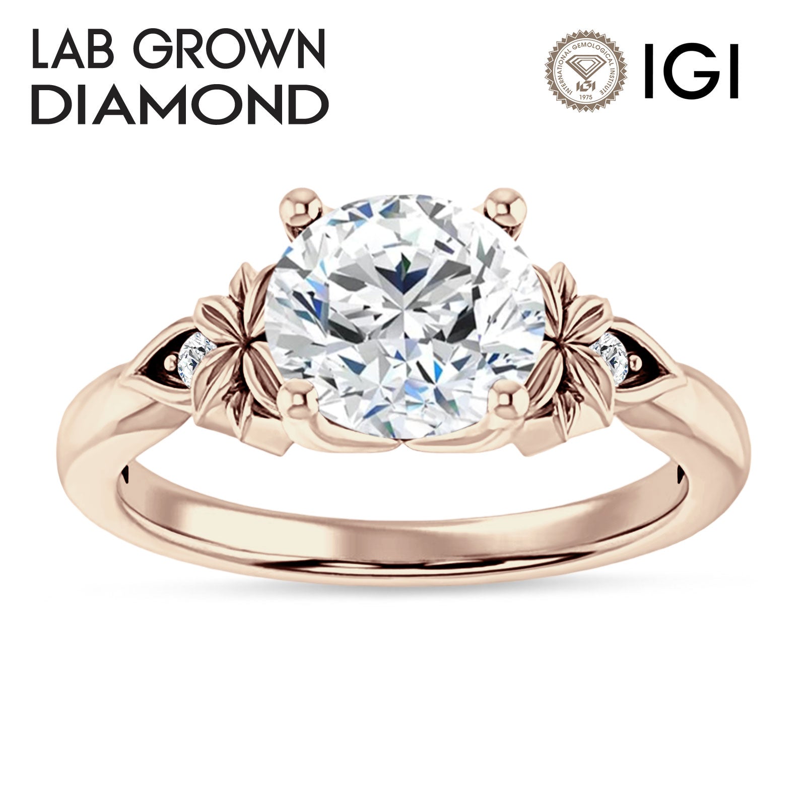 IGI Certified Round 2 Carat Lab Grown Diamond Floral Ring