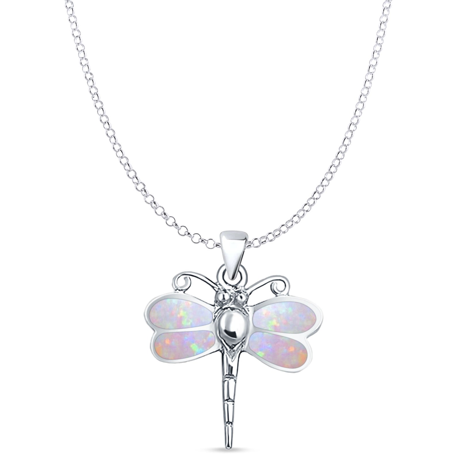 Style: Lab Created Pink Opal Dragonfly Pendant Necklace