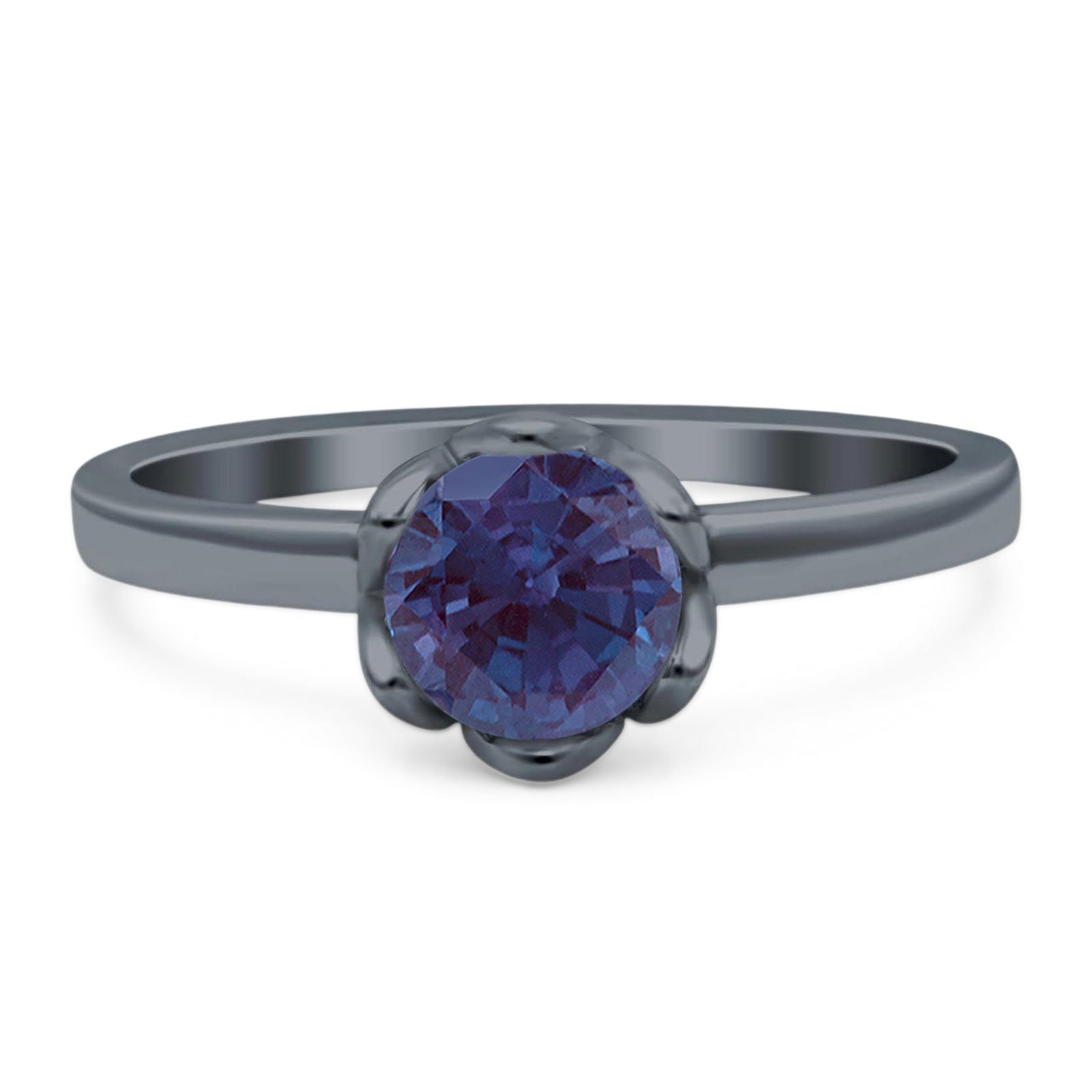 CZ & Blue Sapphire CZ Rose Tone Silver