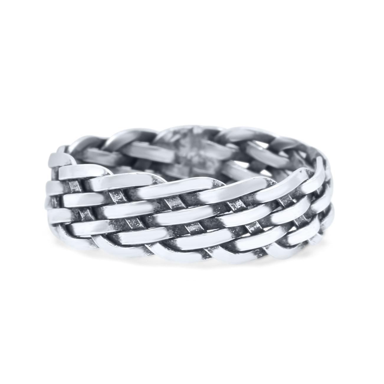 Braided Rounded Weave Knot Innovative Fashion Oxidized Band Solid 925 Sterling Silver Thumb Ring (6mm)