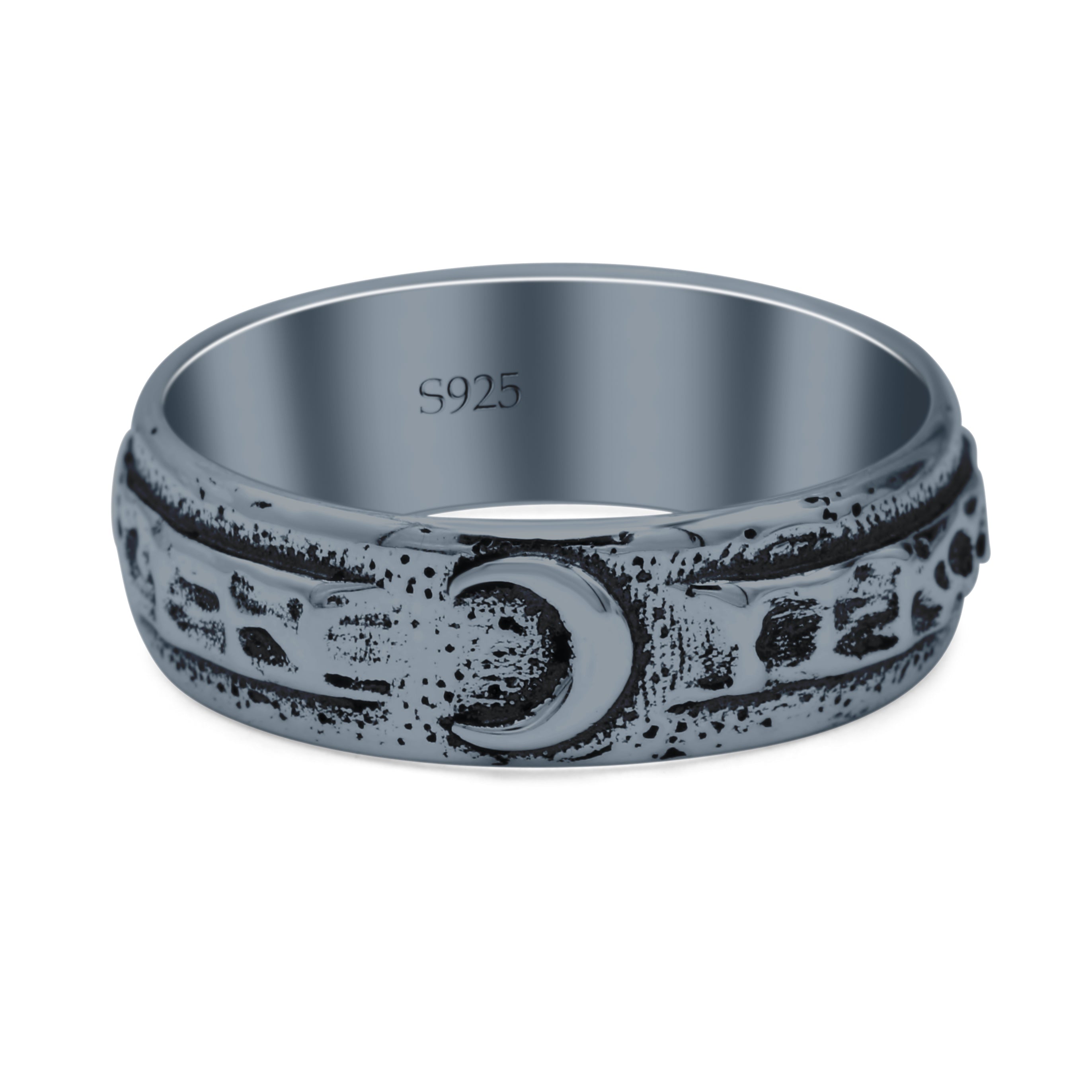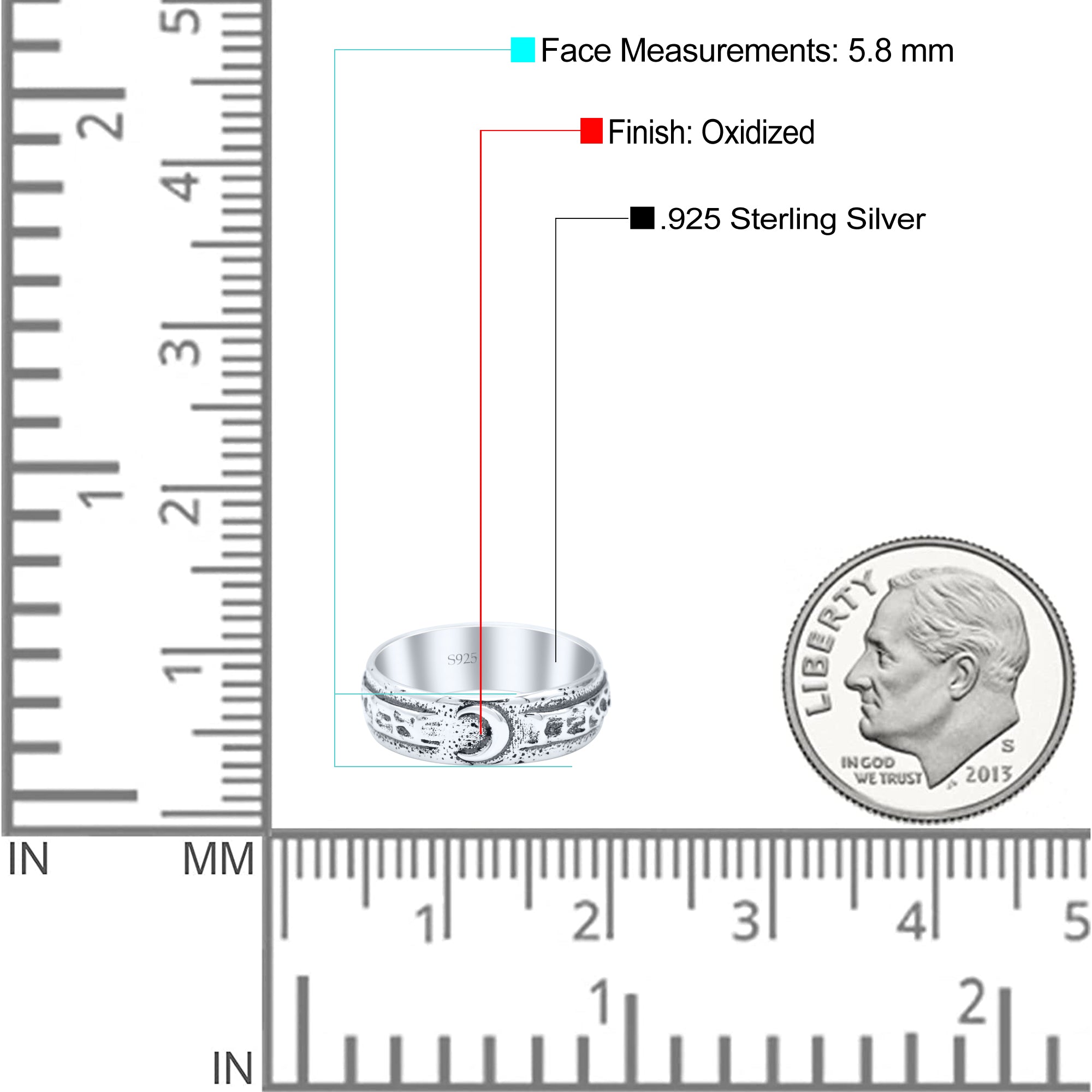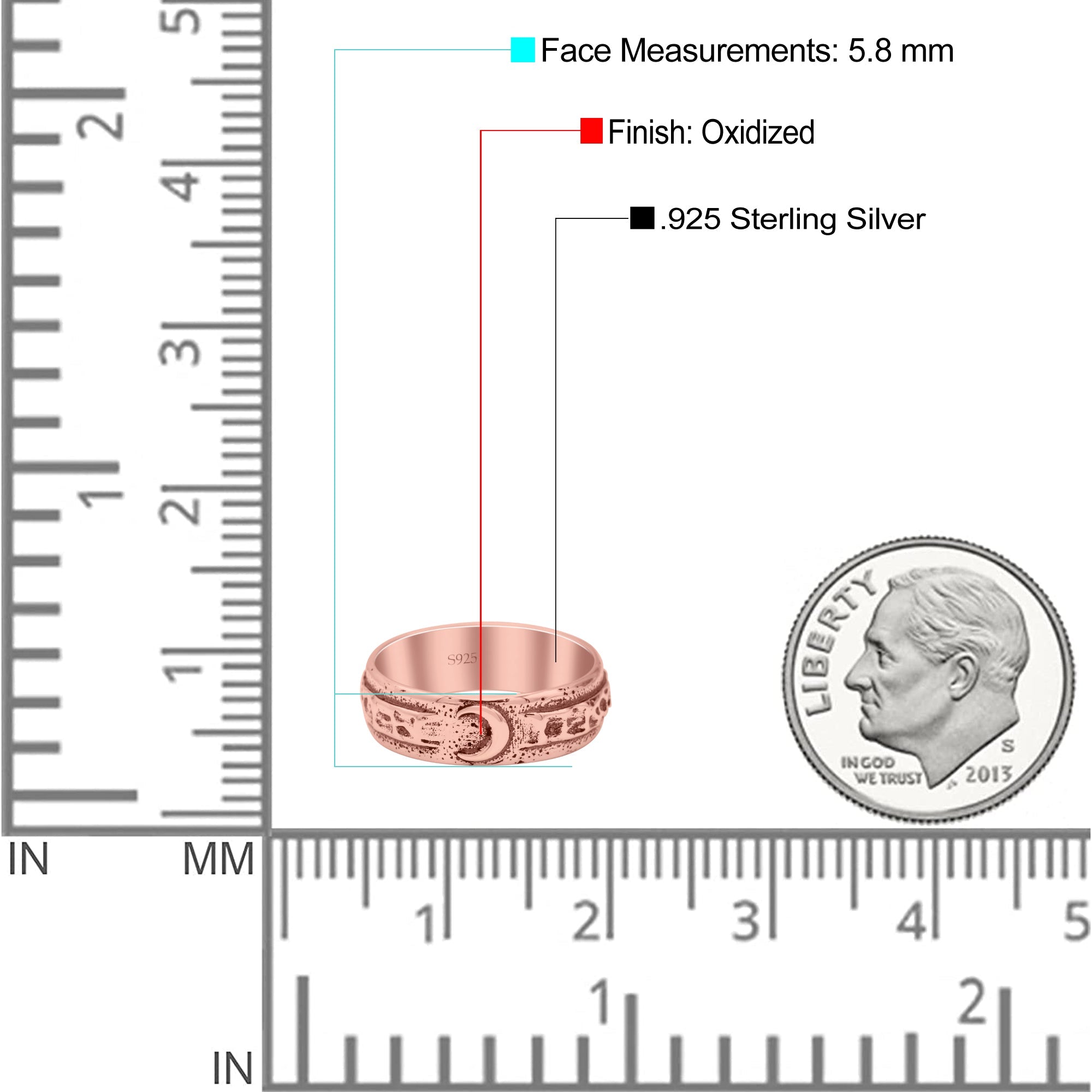 Celestial Oxidized Design Moon Engraved Beautiful Band Solid 925 Sterling Silver Thumb Ring (5.8mm)