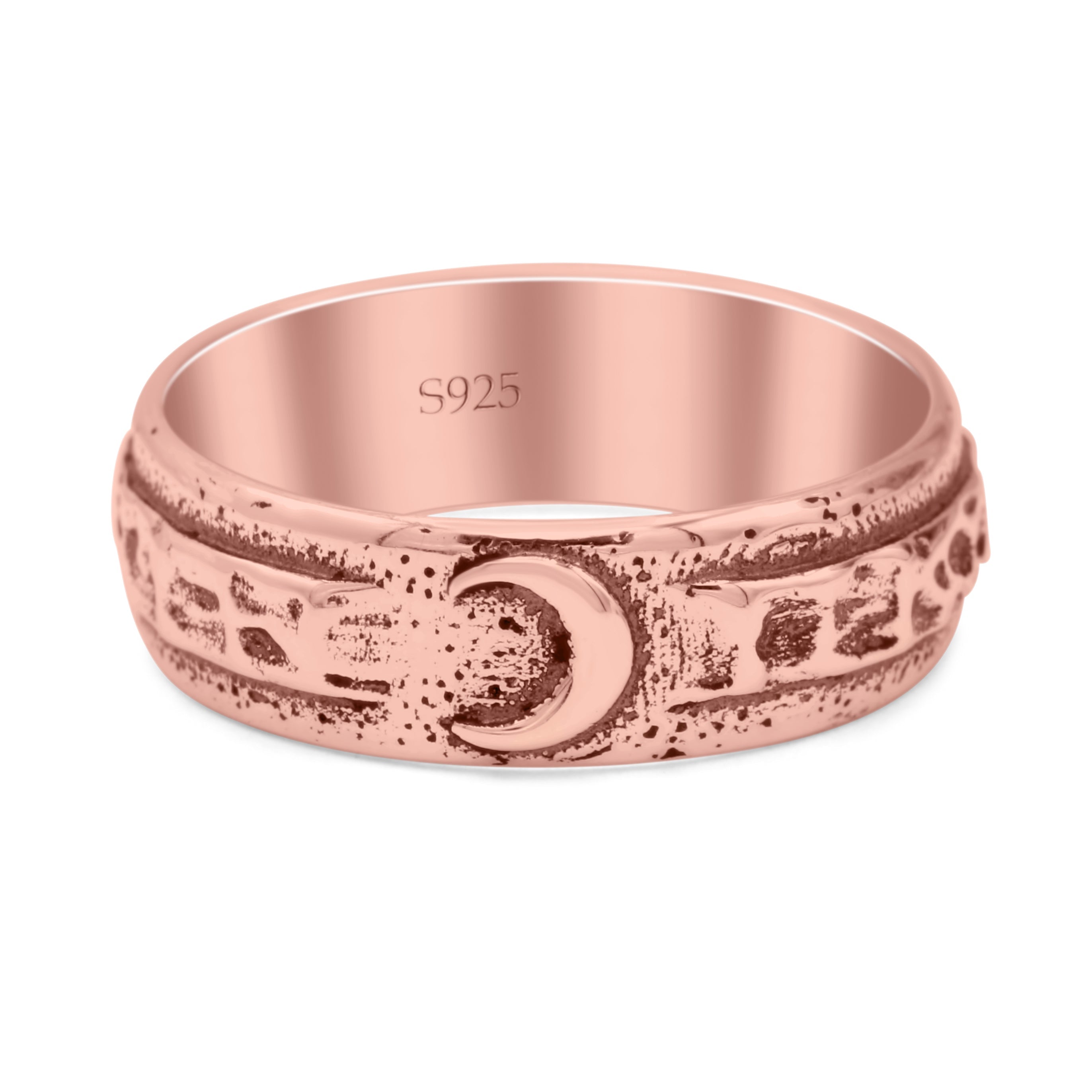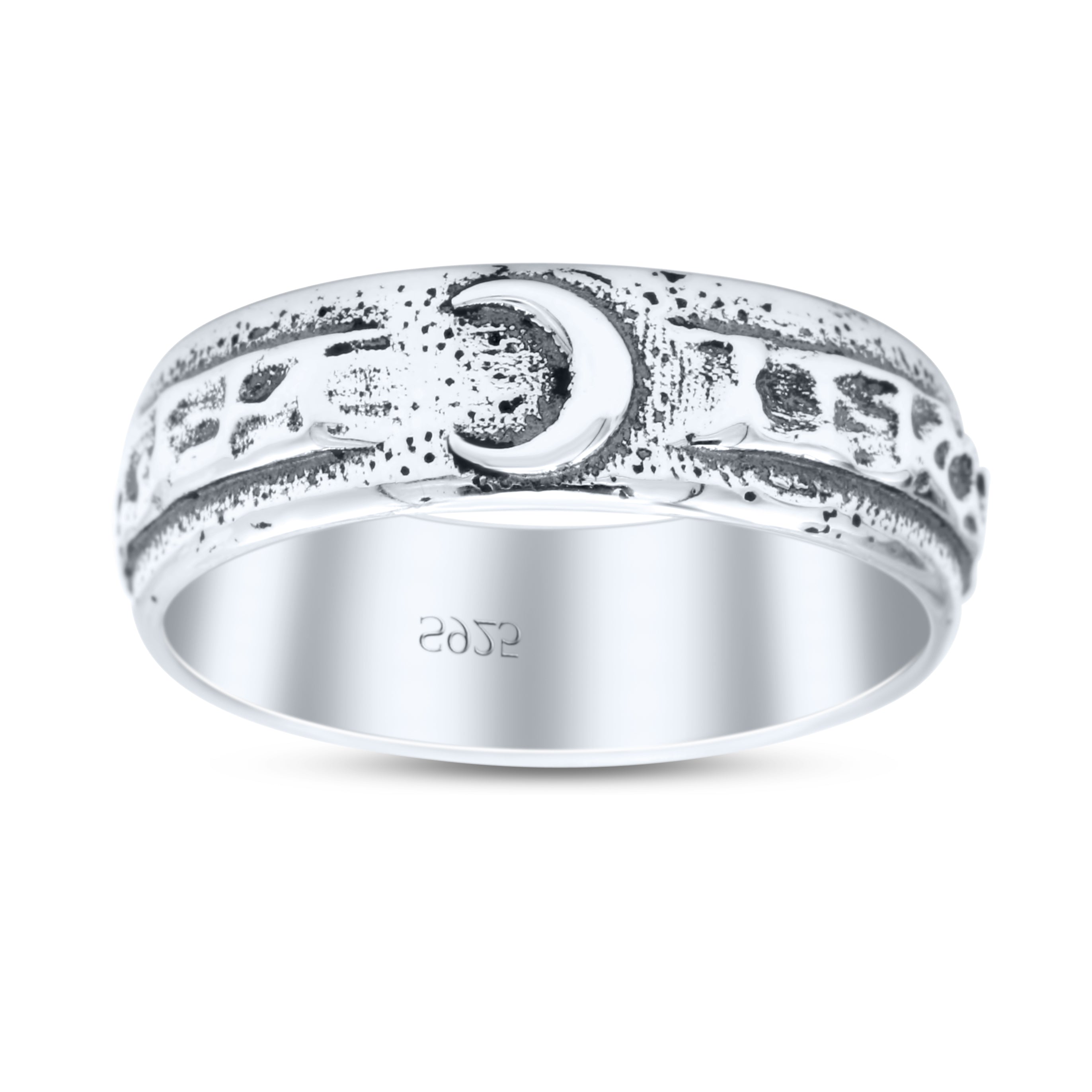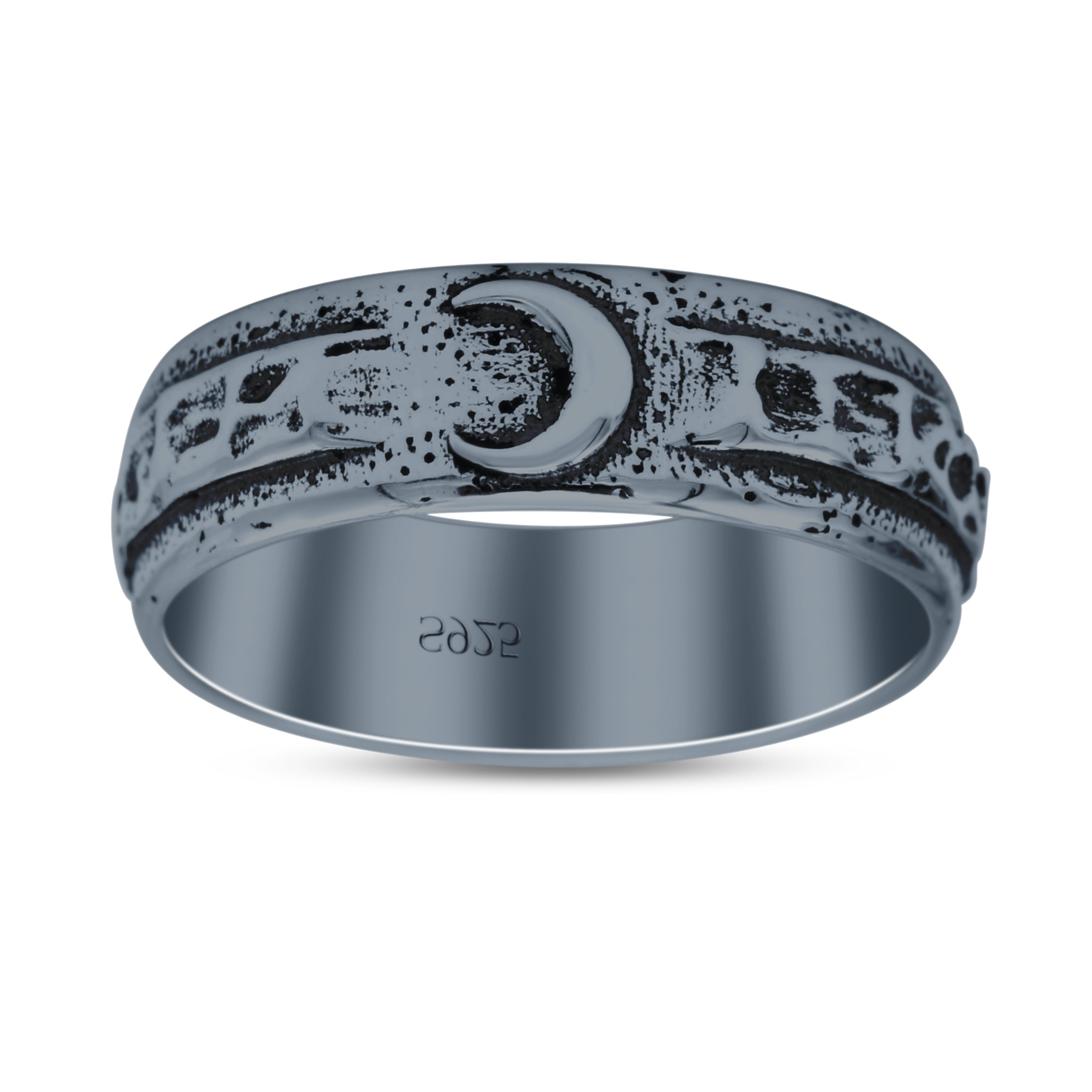 Celestial Oxidized Design Moon Engraved Beautiful Band Solid 925 Sterling Silver Thumb Ring (5.8mm)