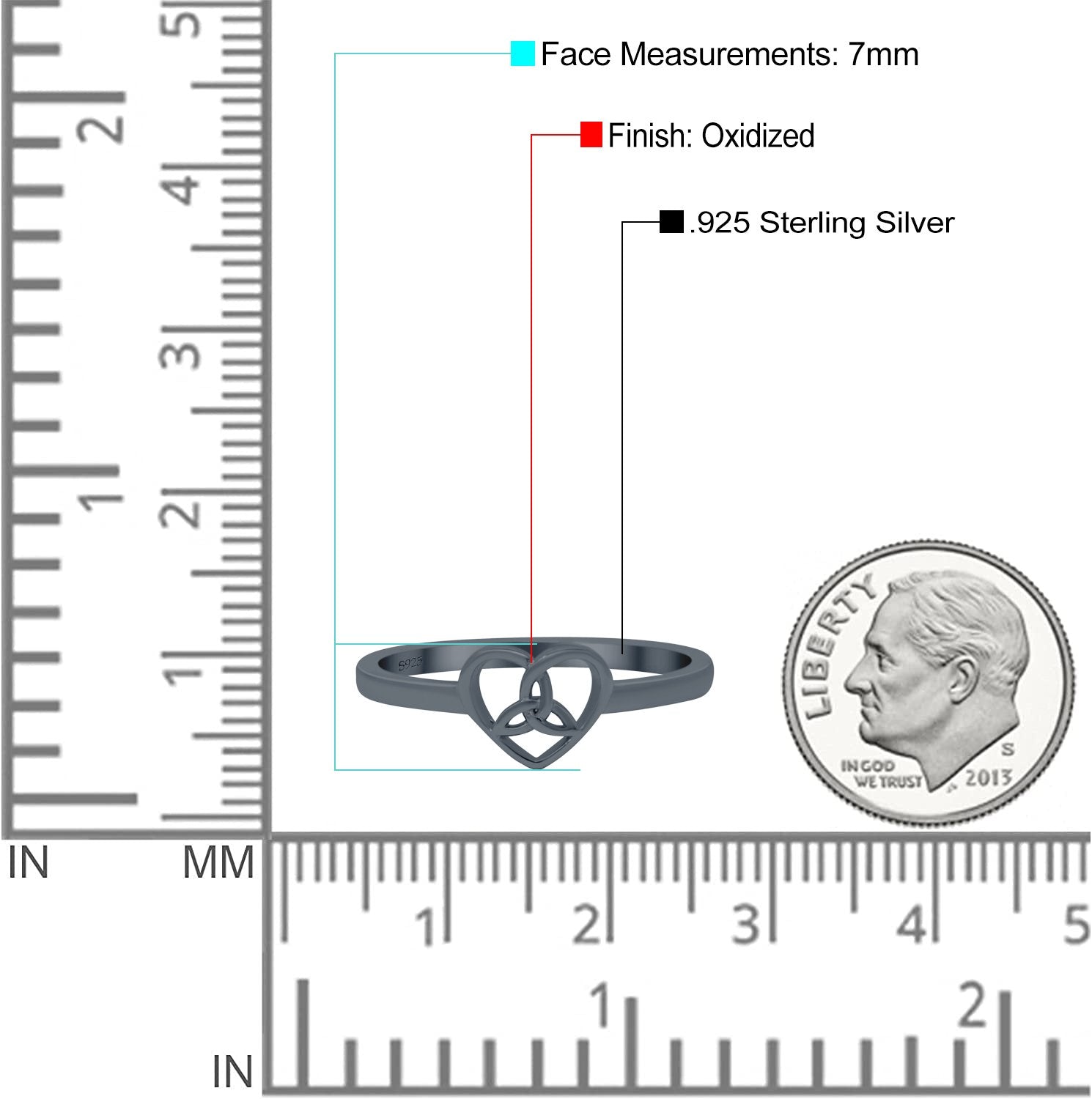 Celtic Heart Band Oxidized Ring Solid 925 Sterling Silver Thumb Ring (7mm)