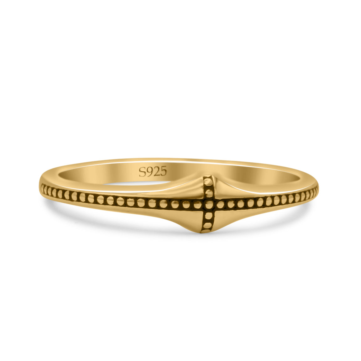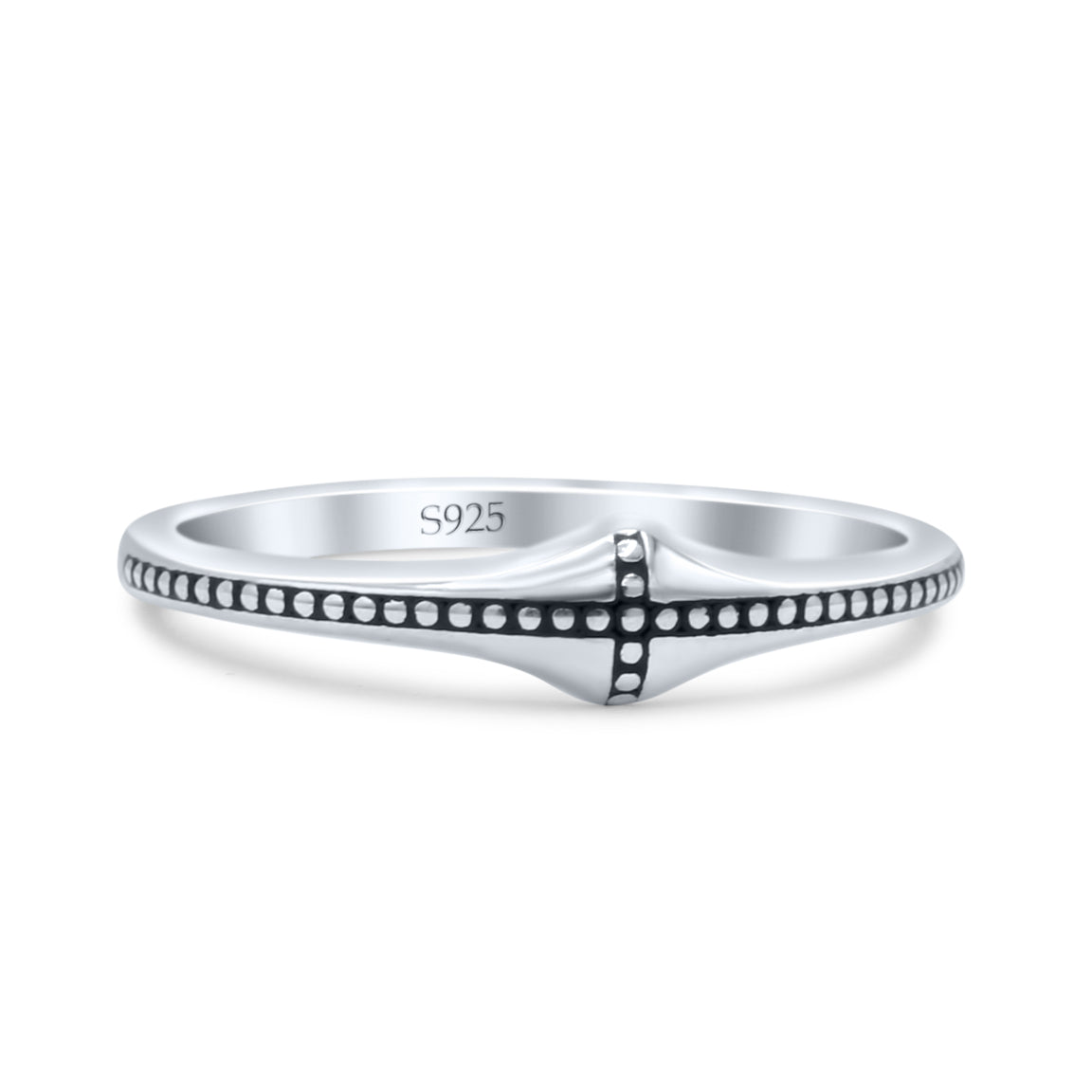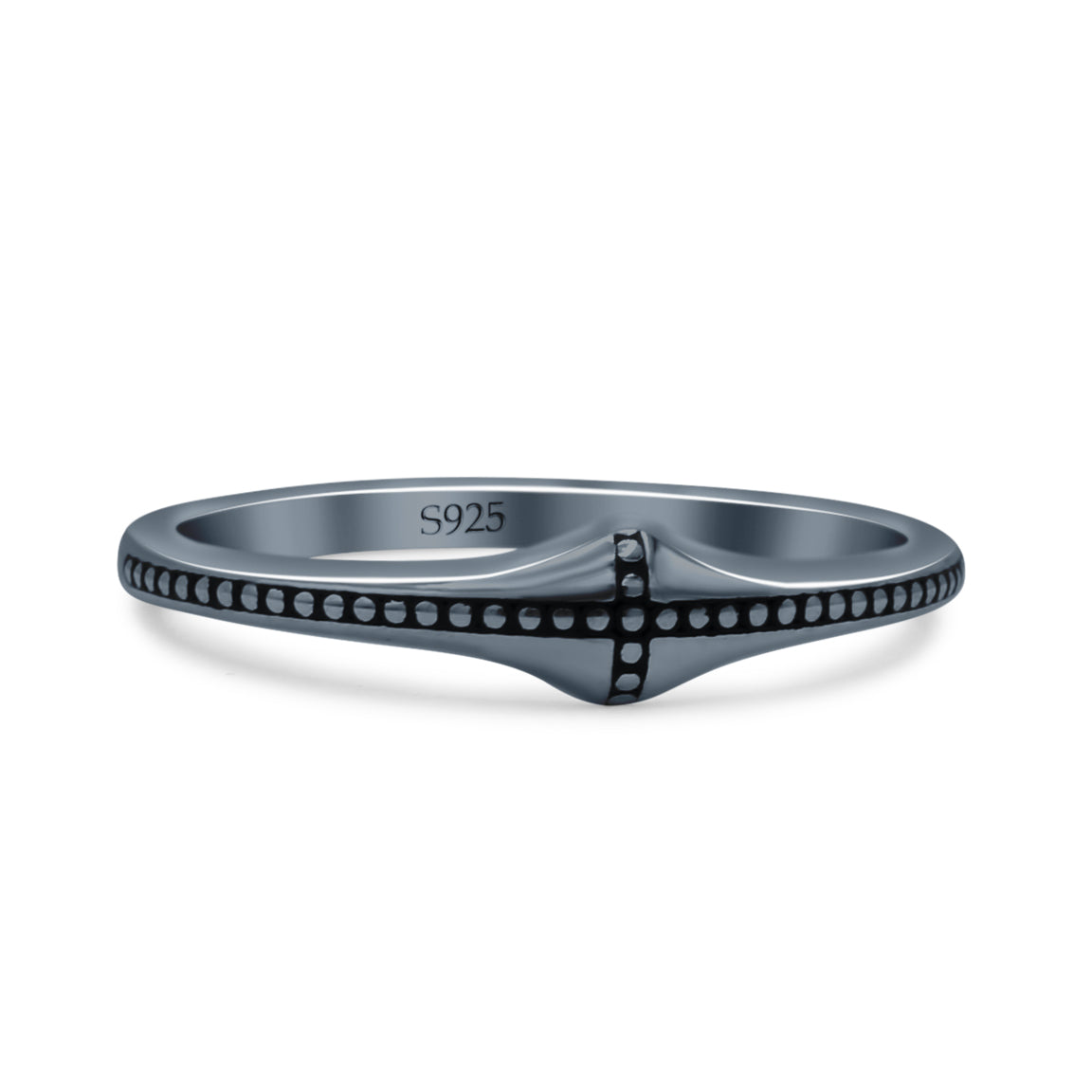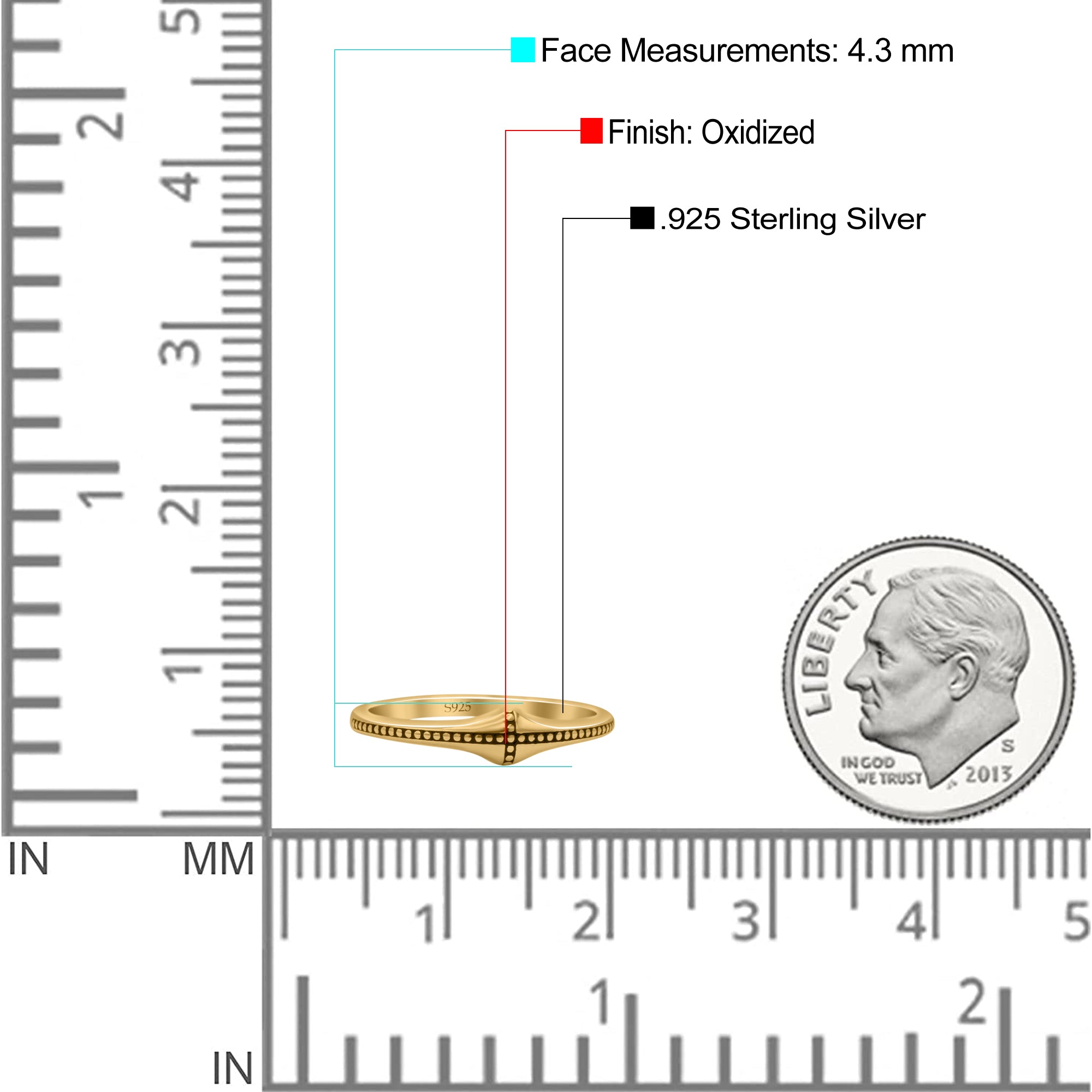 Classic Cross Designer Rounded Engraved Stackable Oxidized Statement Band Solid 925 Sterling Silver Thumb Ring (4.3mm)