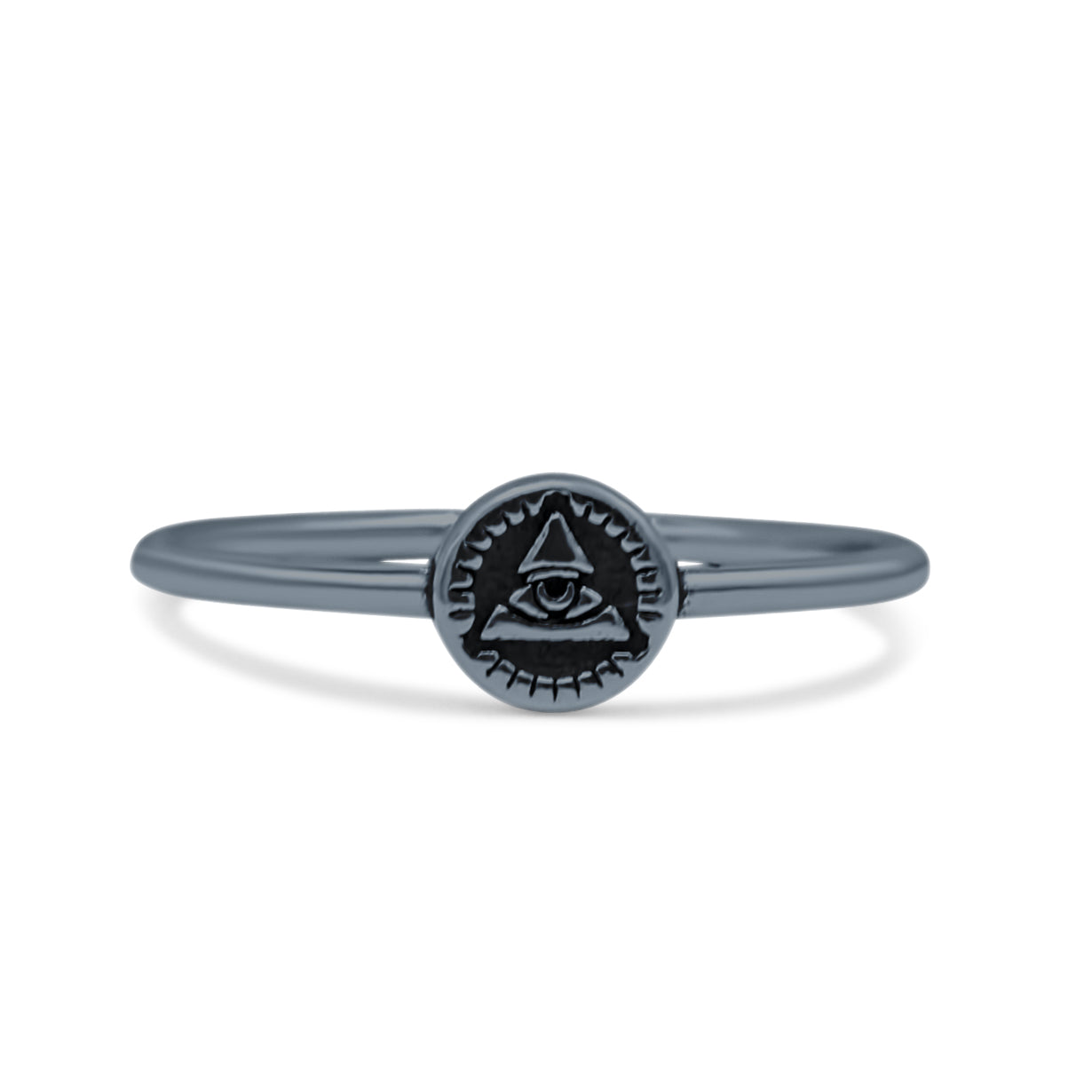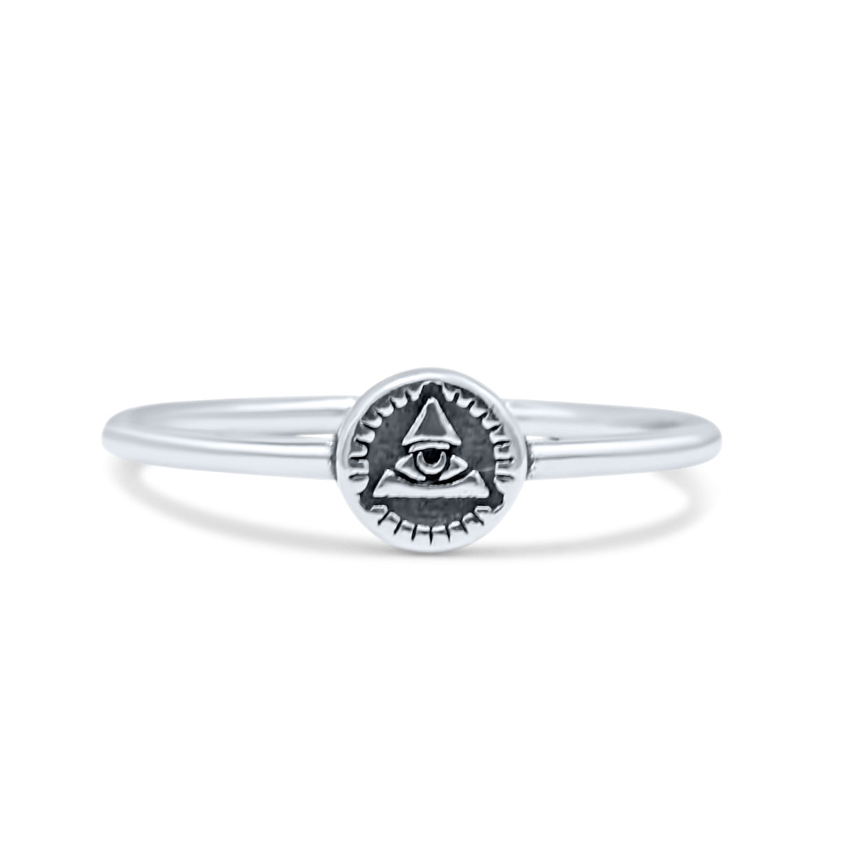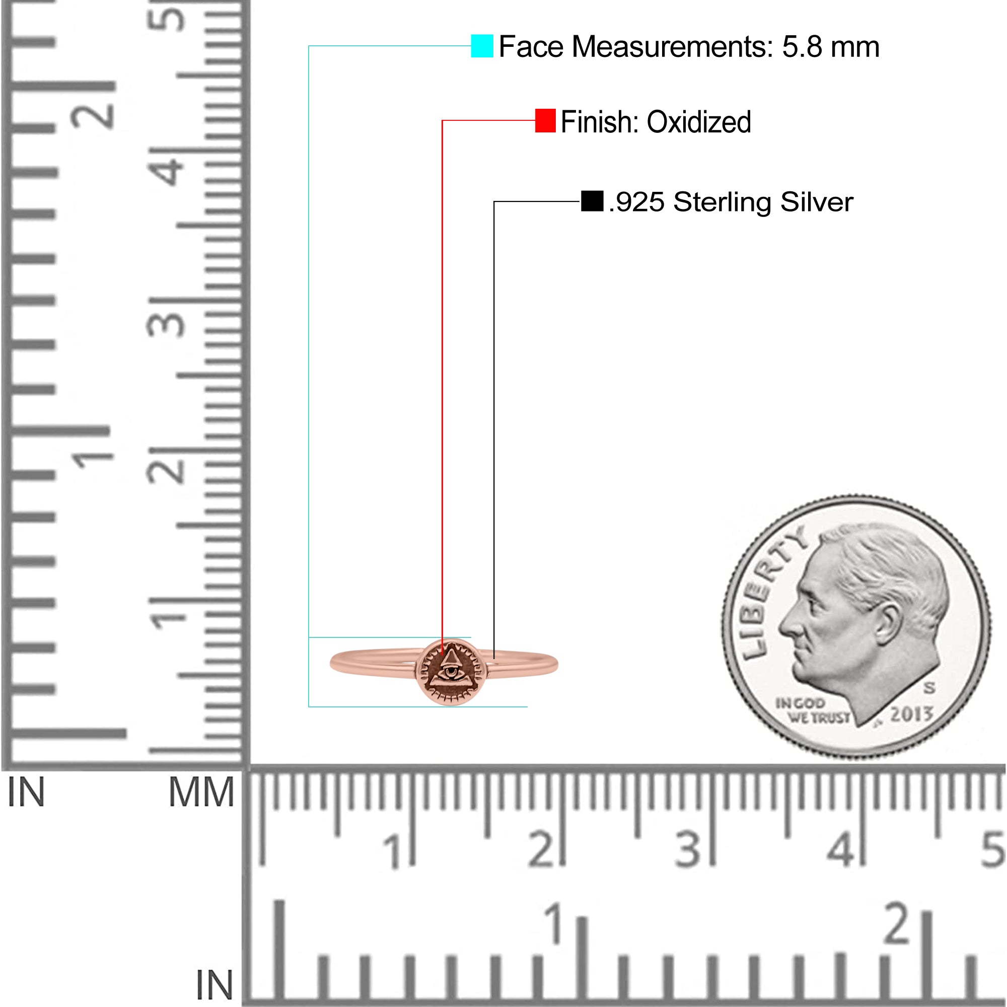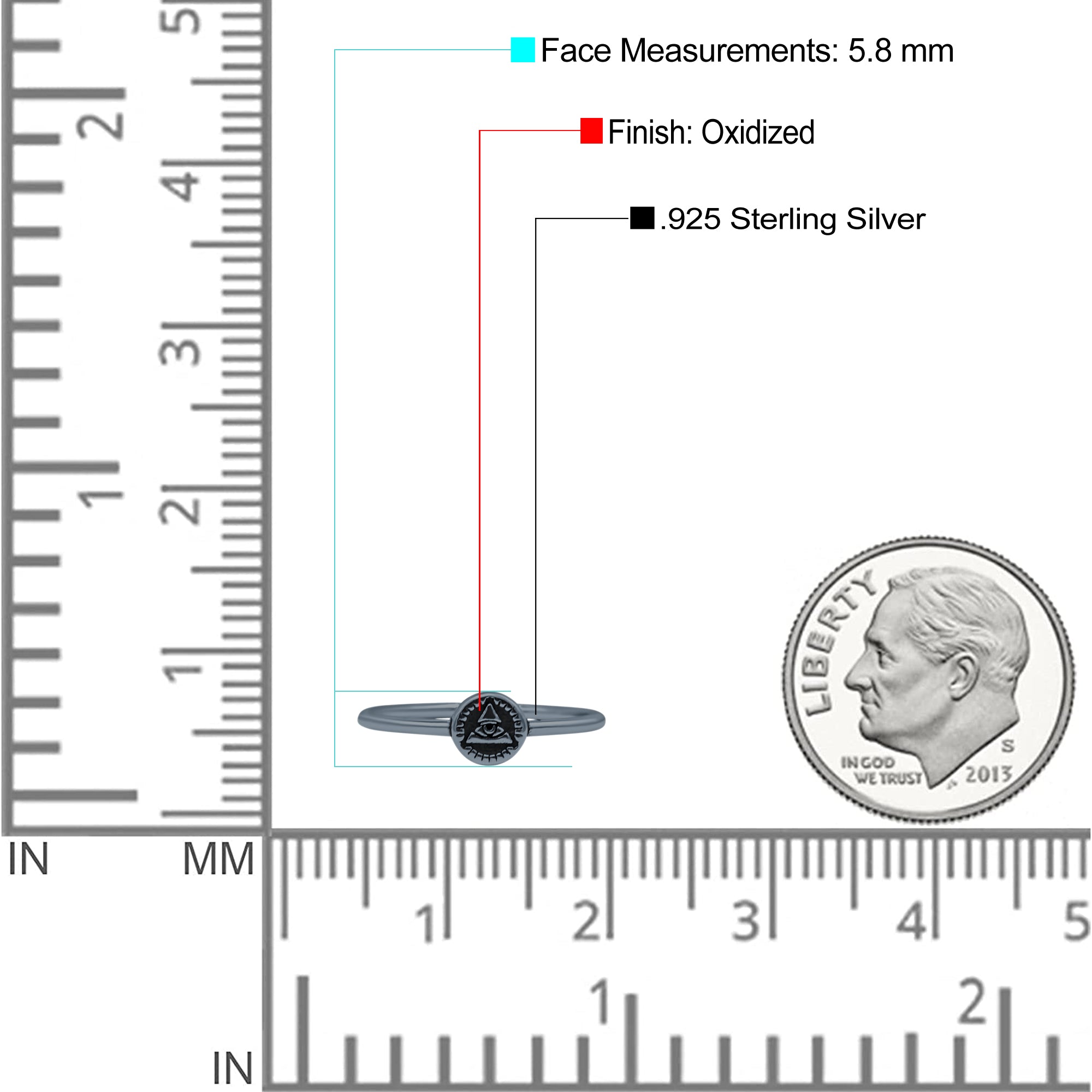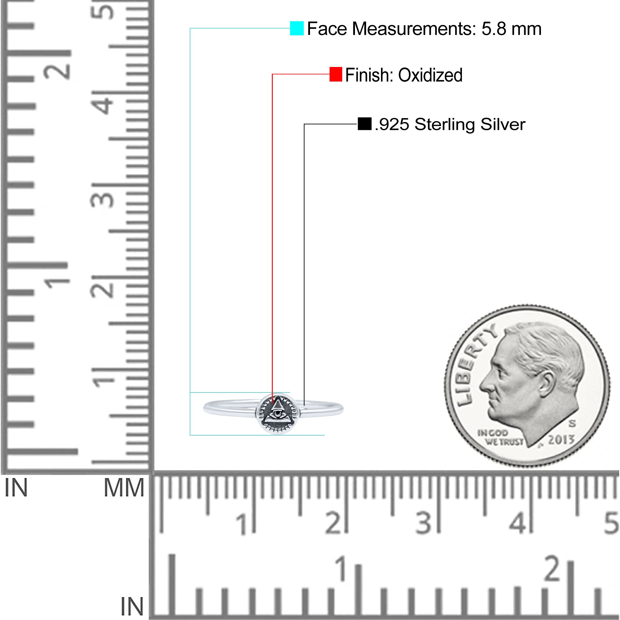 Classic Eye Of Providence Triangle Stackable Oxidized Statement Band Solid 925 Sterling Silver Thumb Ring (5.8mm)