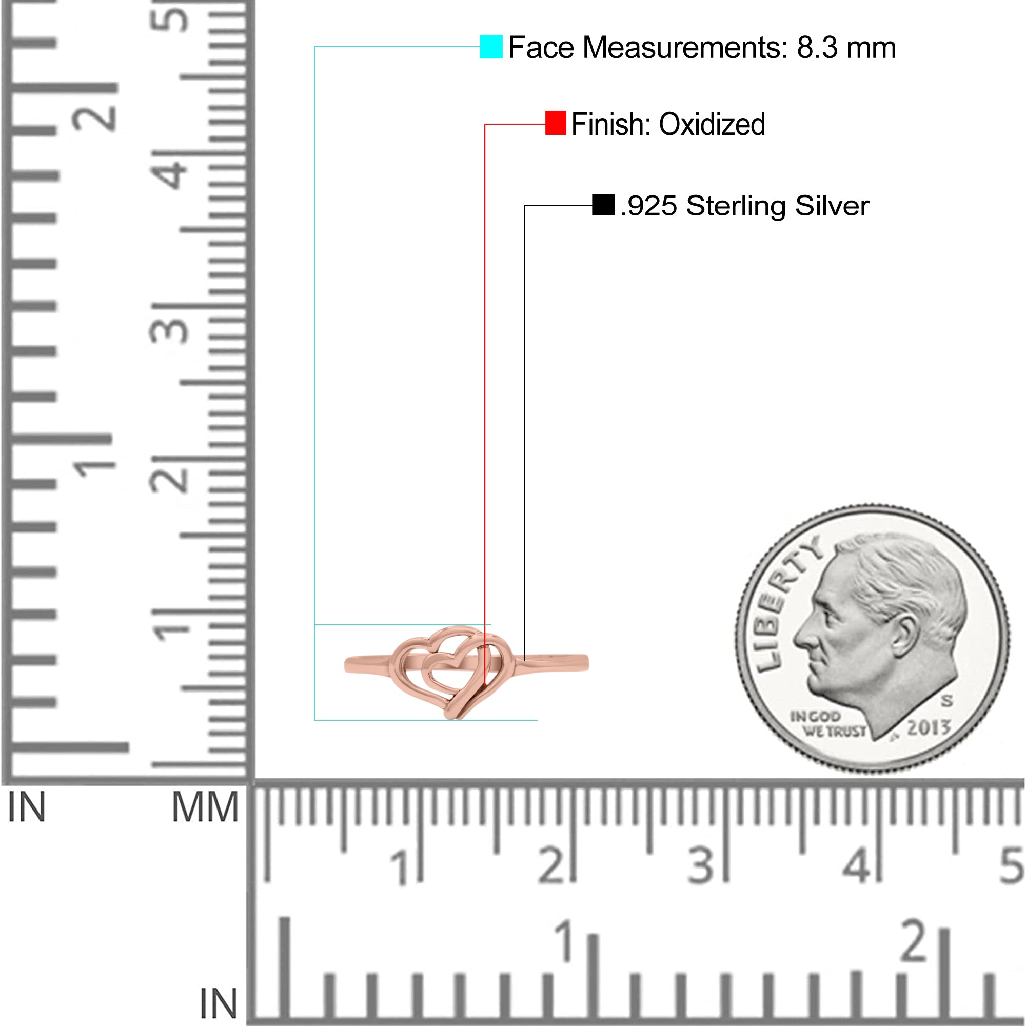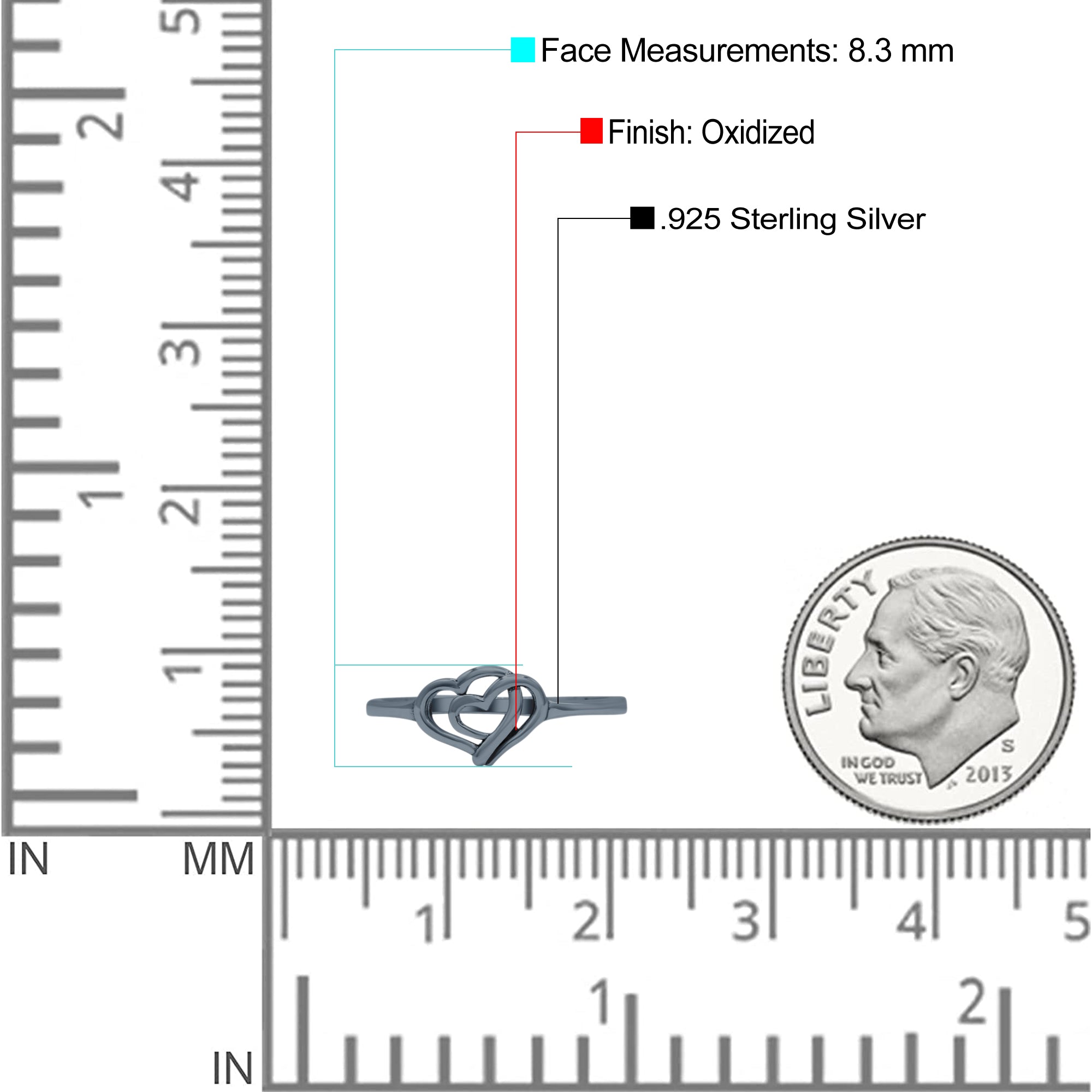 Dainty Infinity Casual Chic Double Heart Minimalist Oxidized Fashion Band Solid 925 Sterling Silver Thumb Ring (8.3mm)