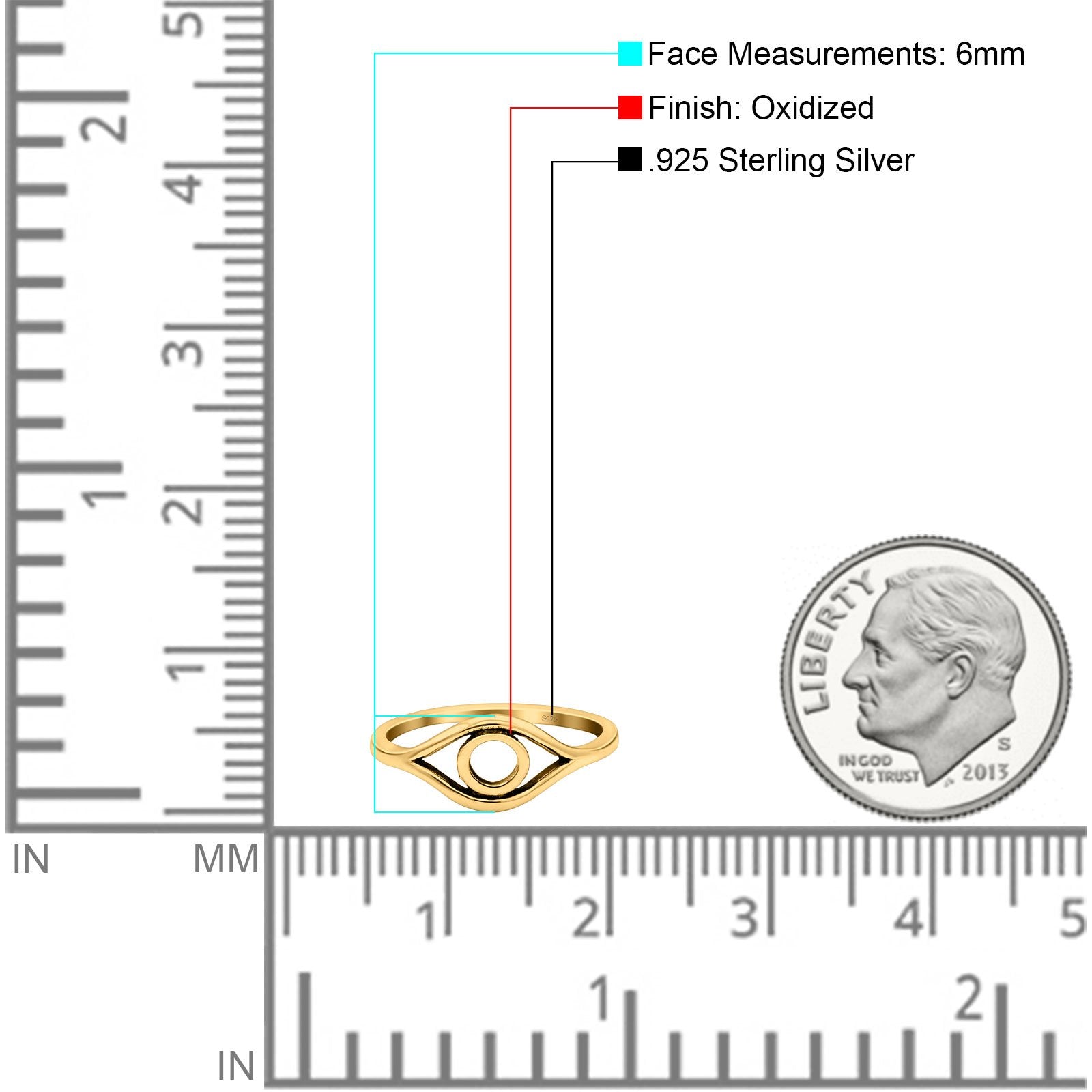 Eye Ring Oxidized Band Solid 925 Sterling Silver Thumb Ring (6mm)