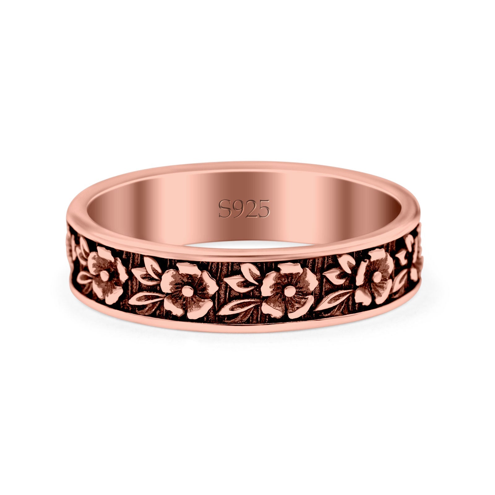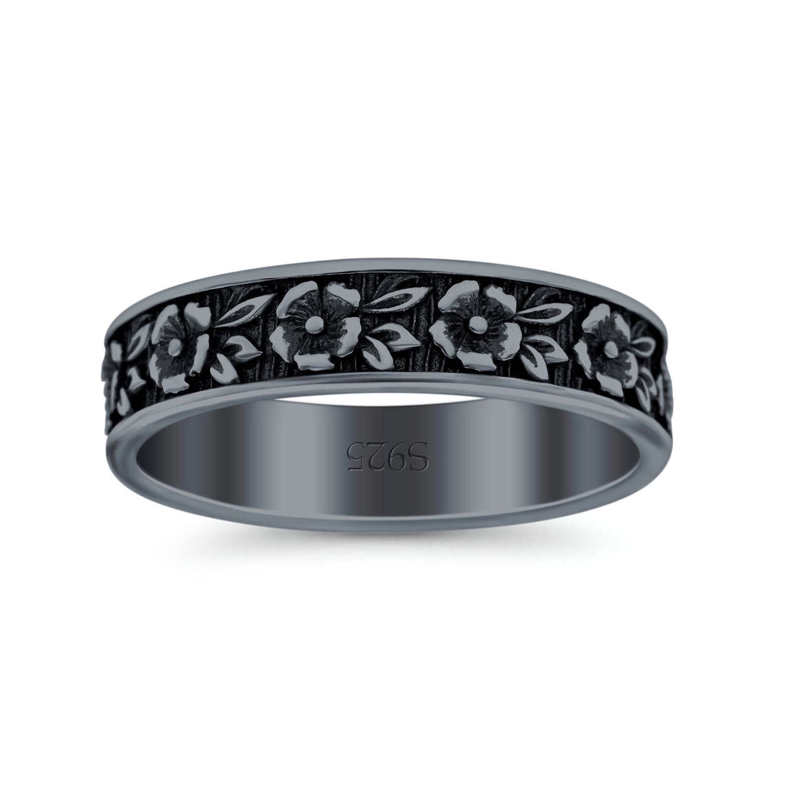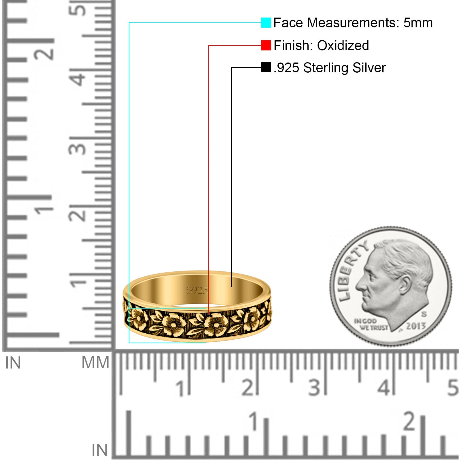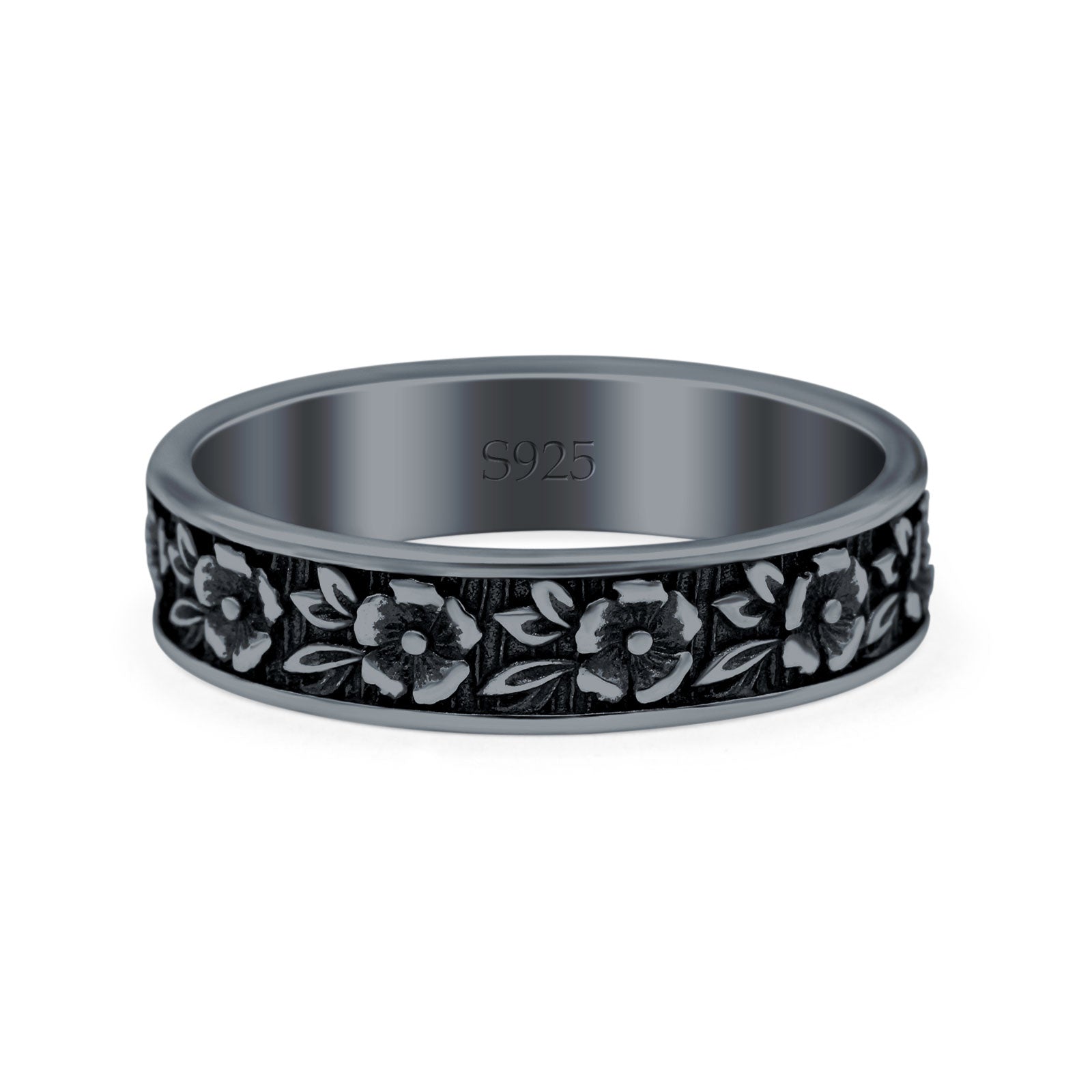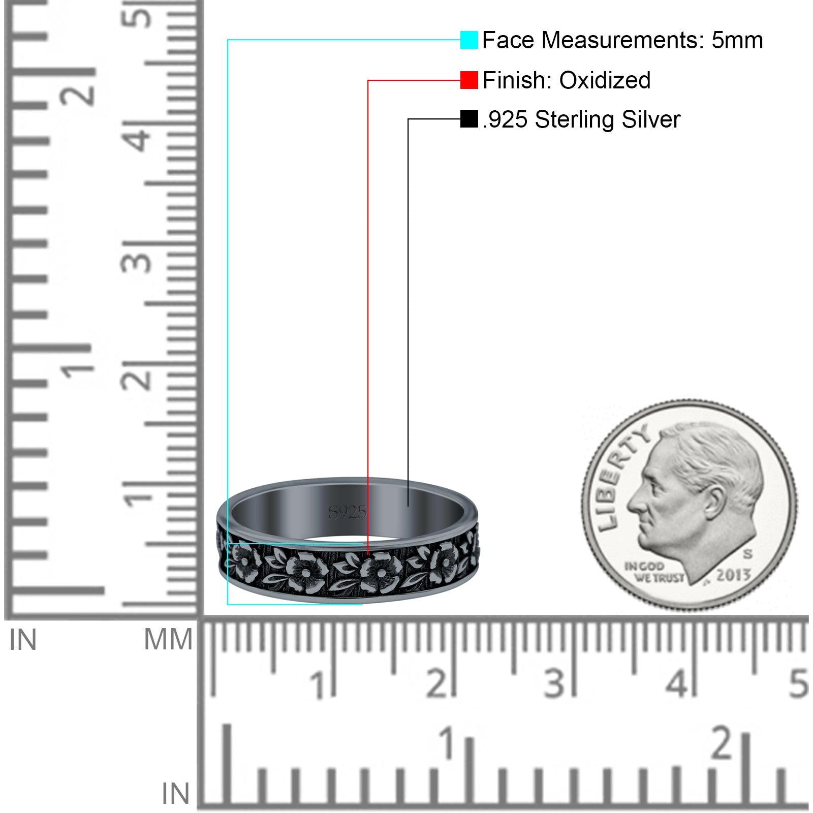 Flowers Ring Oxidized Band Solid 925 Sterling Silver Thumb Ring (5mm)