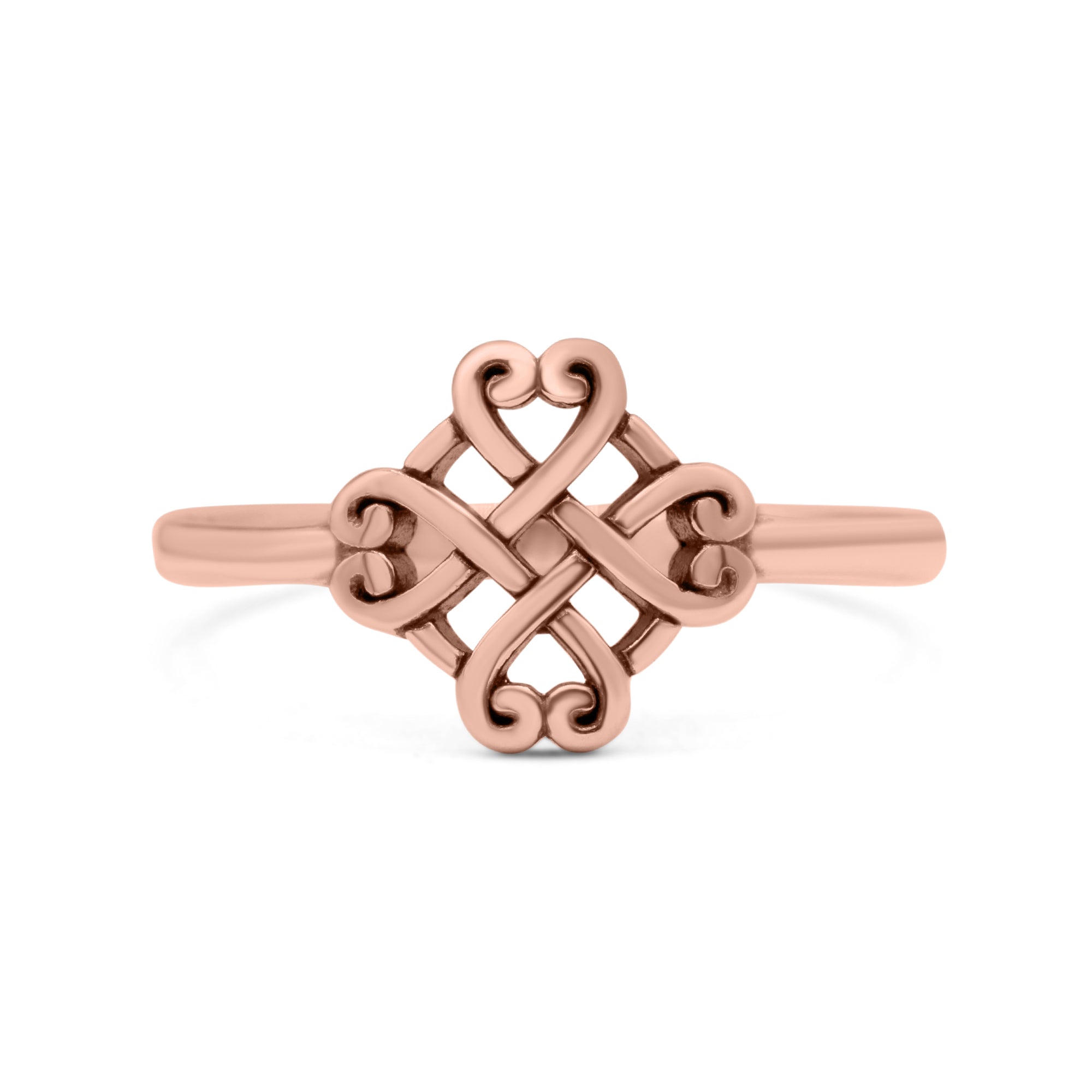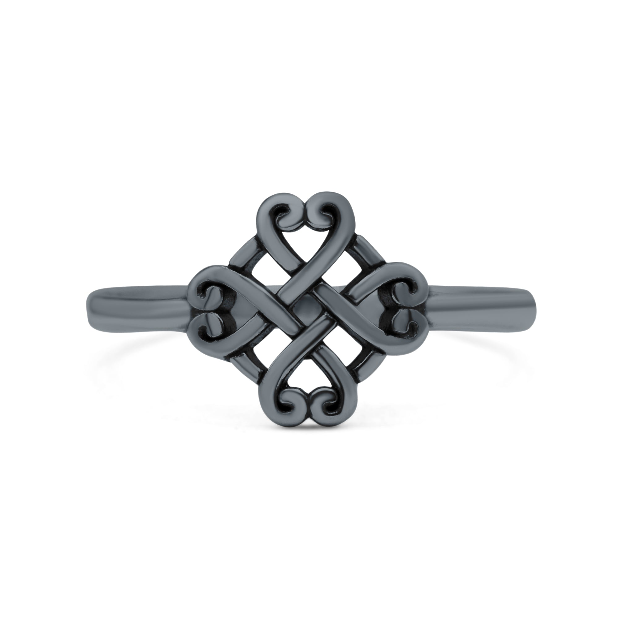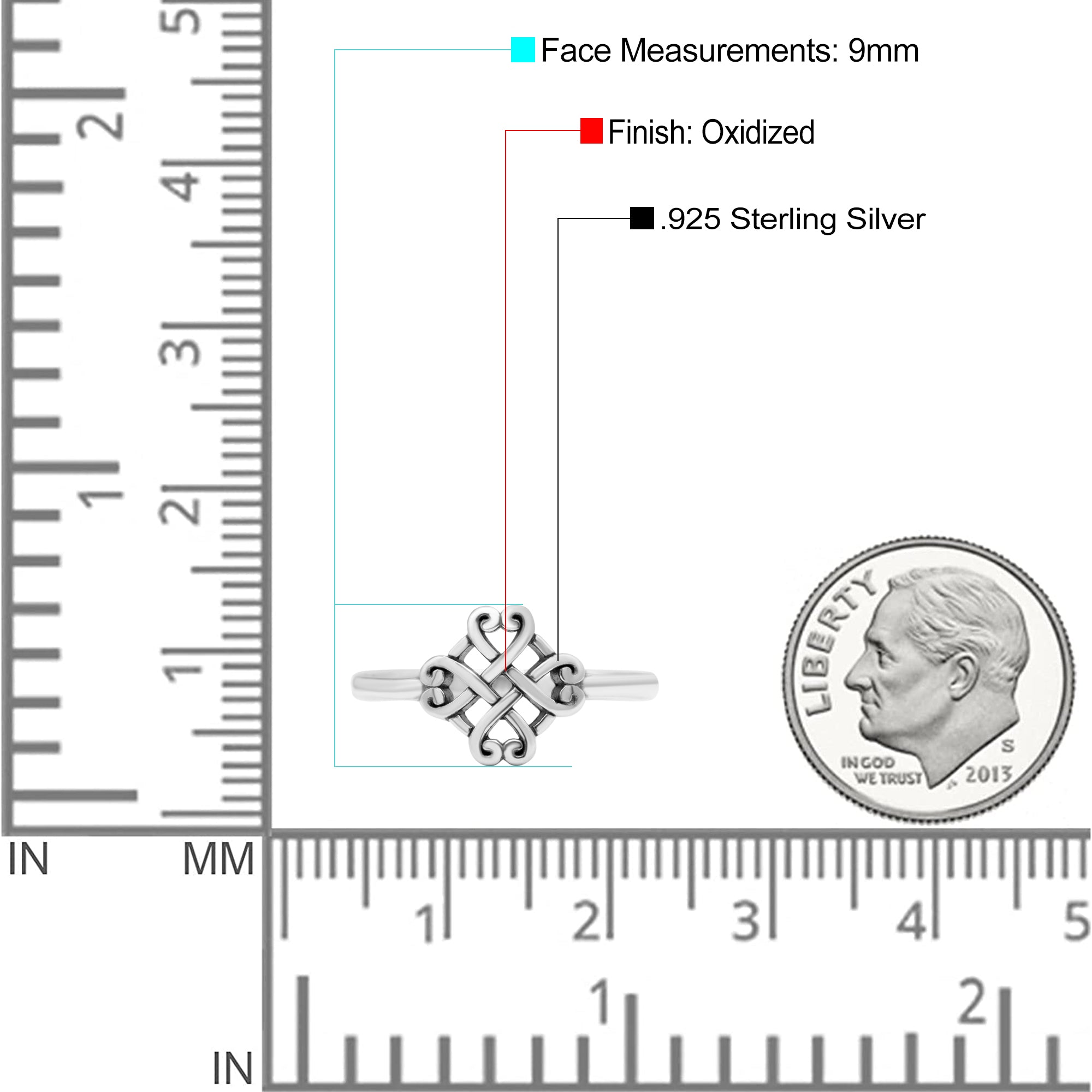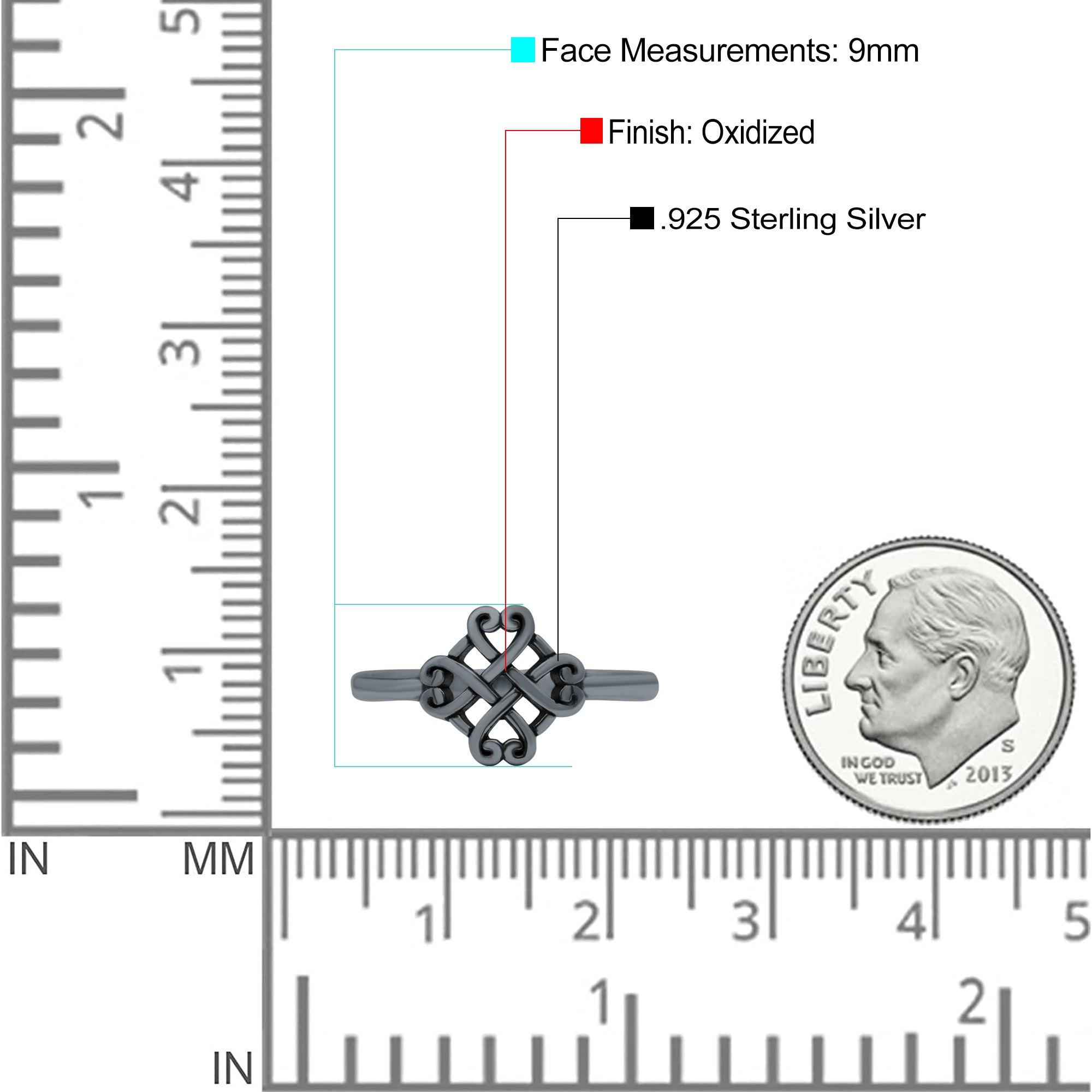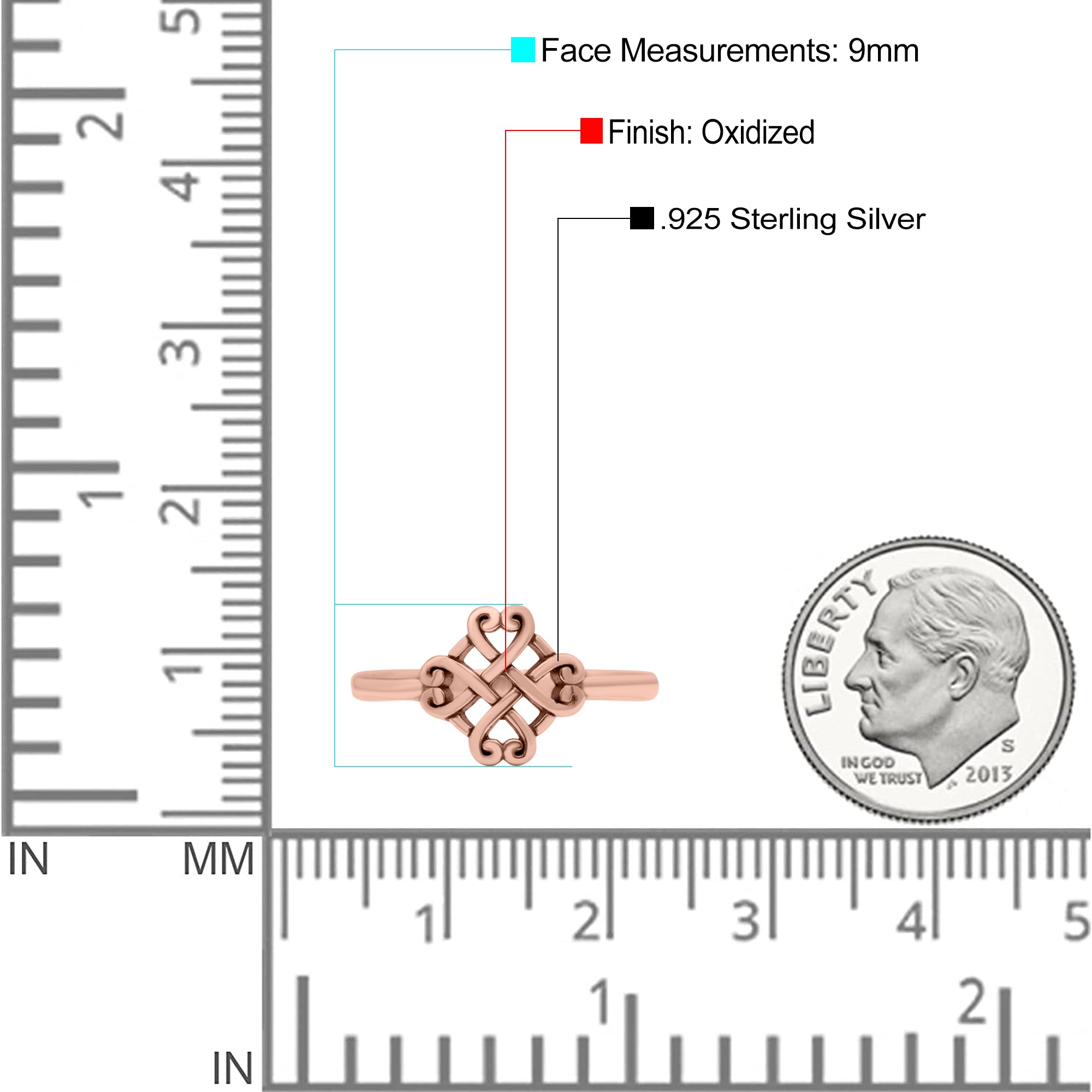 Infinity Adorned Hearts Filigree Knot Unique Design Oxidized Band Solid 925 Sterling Silver Thumb Ring Swirl (9mm)