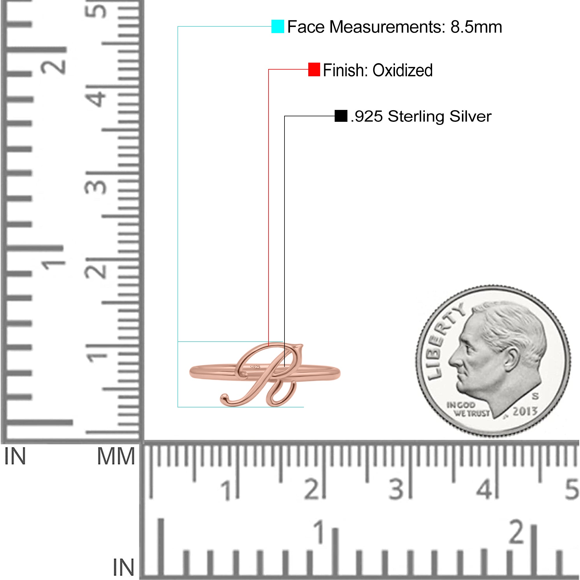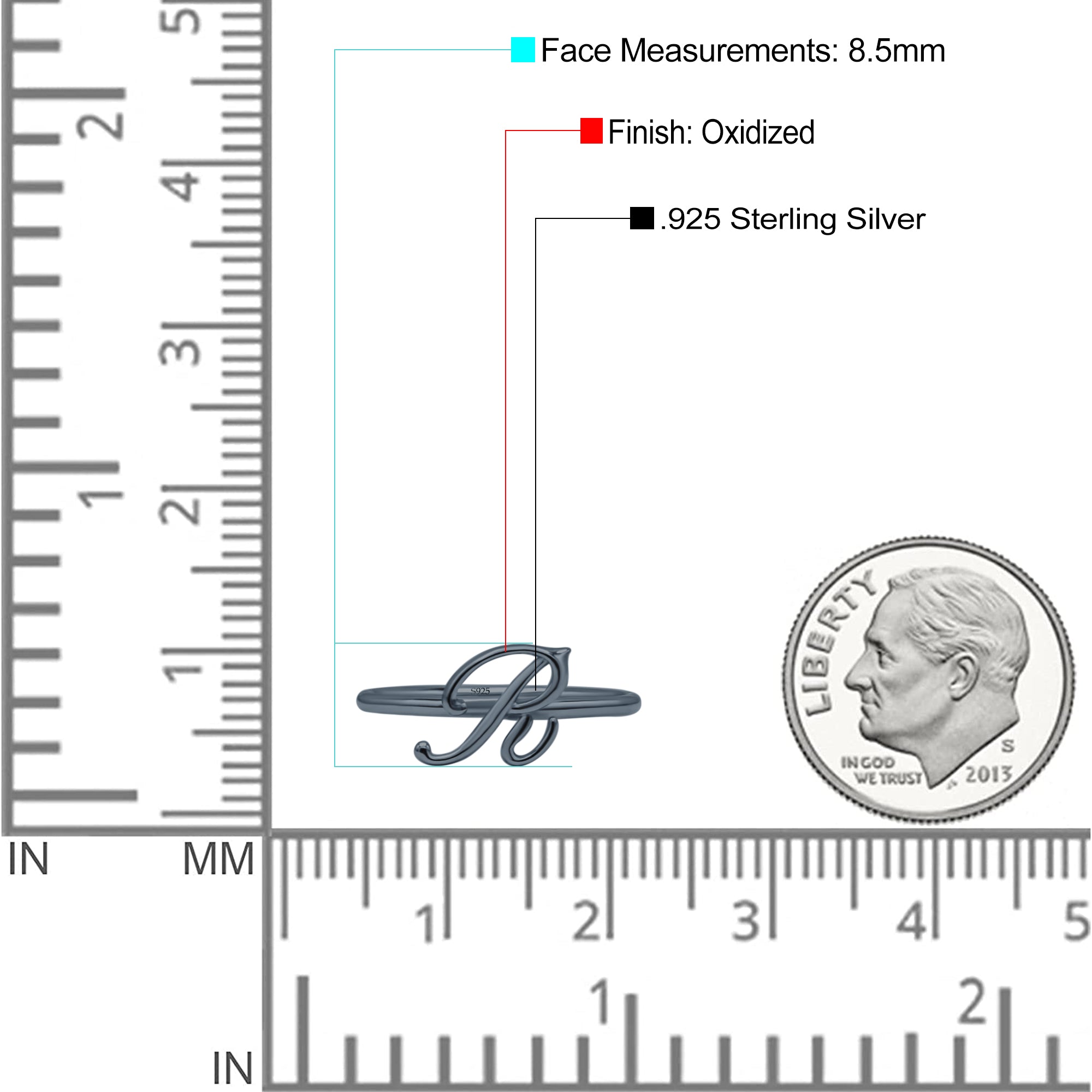 Initial R Alphabet Letter Name Monogram Stackable Trendy Ring Band Solid 925 Sterling Silver Thumb Ring (8.5mm)