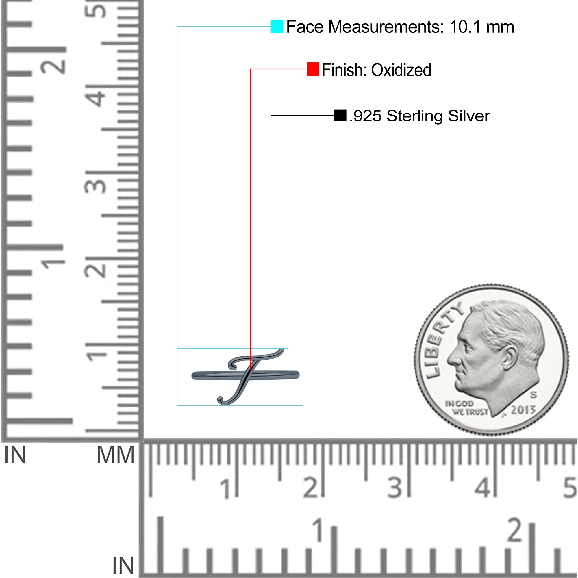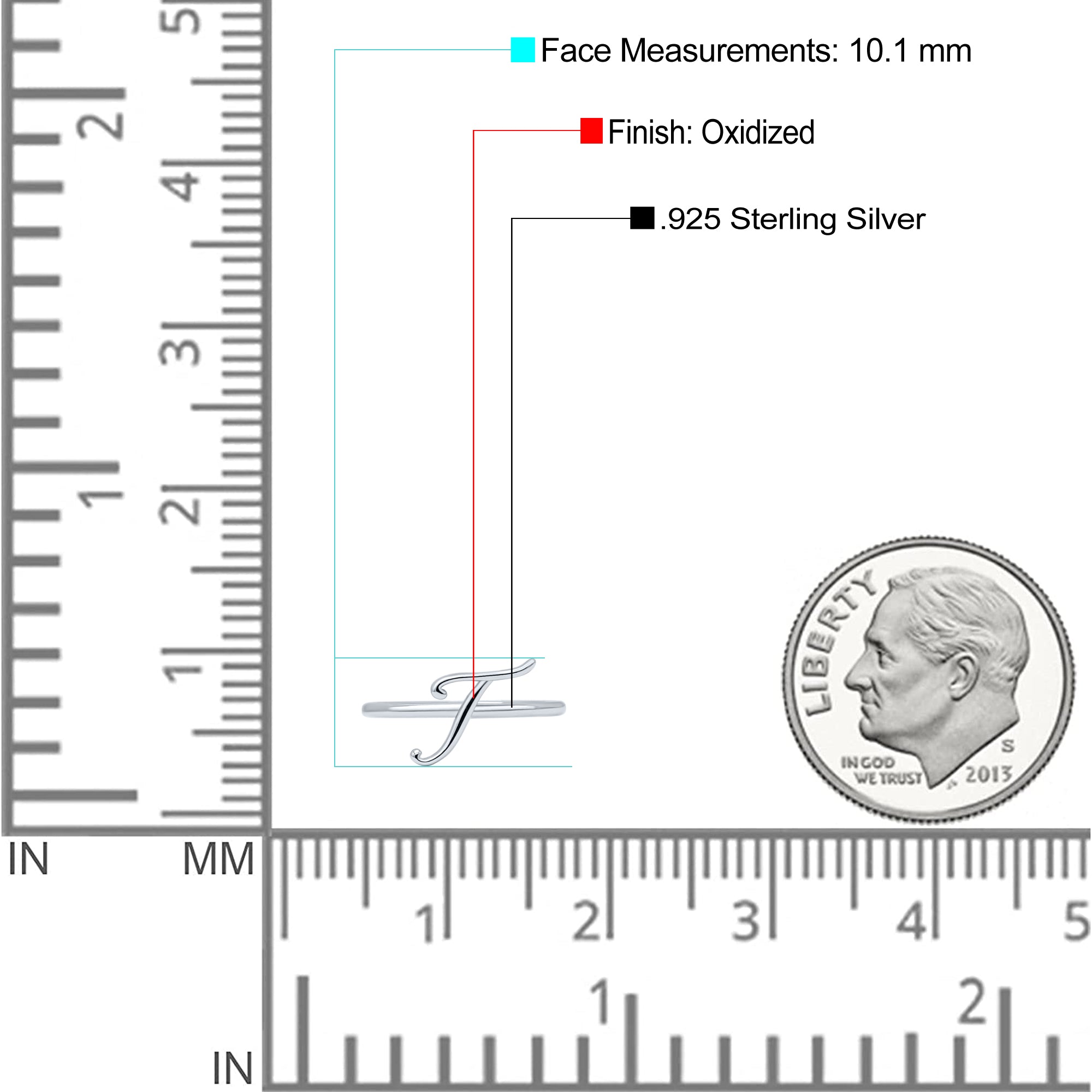 Initial T Alphabet Letter Name Monogram Stackable Statement Ring Band Solid 925 Sterling Silver Thumb Ring (10.1mm)