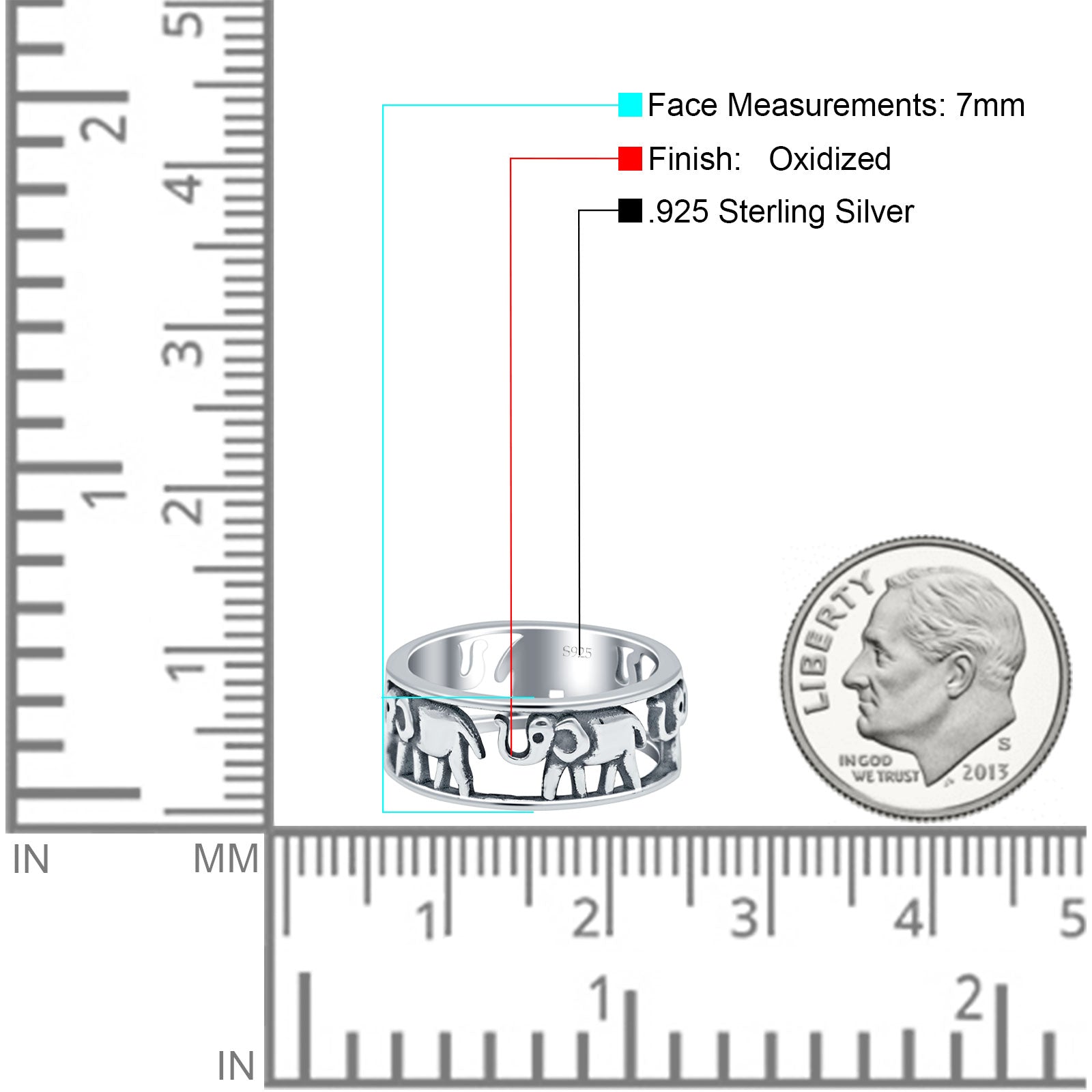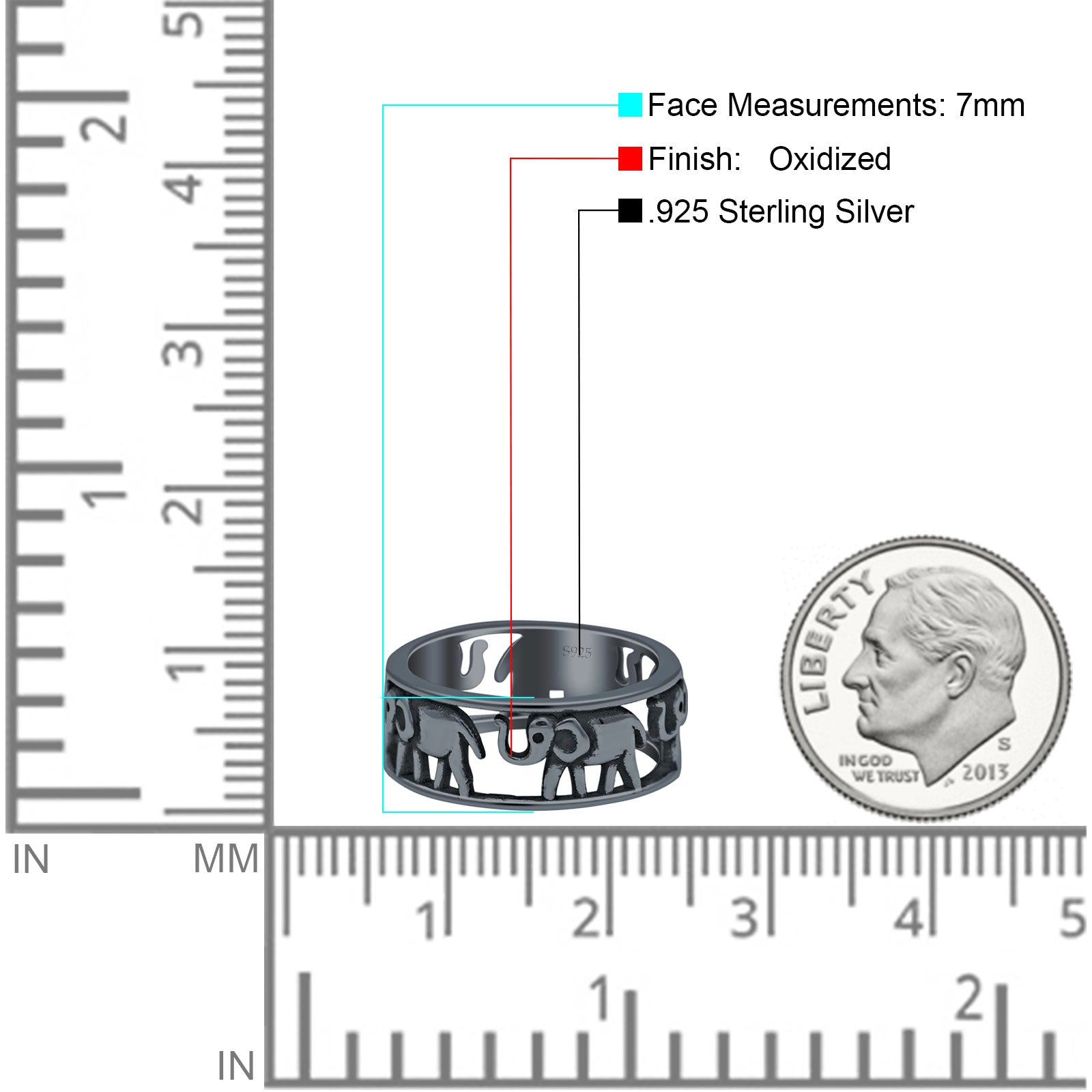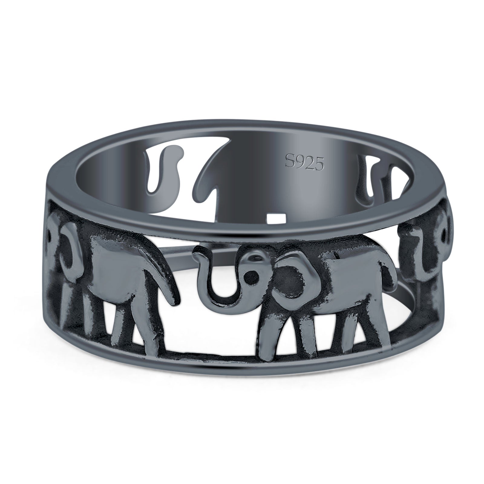 Minimalist 7mm Elephant Ring Oxidized Band 925 Sterling Silver