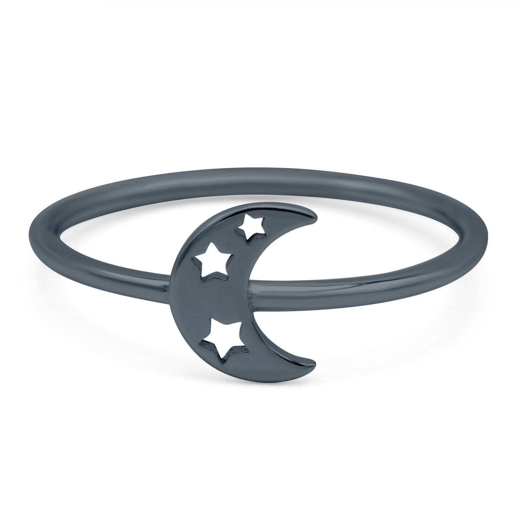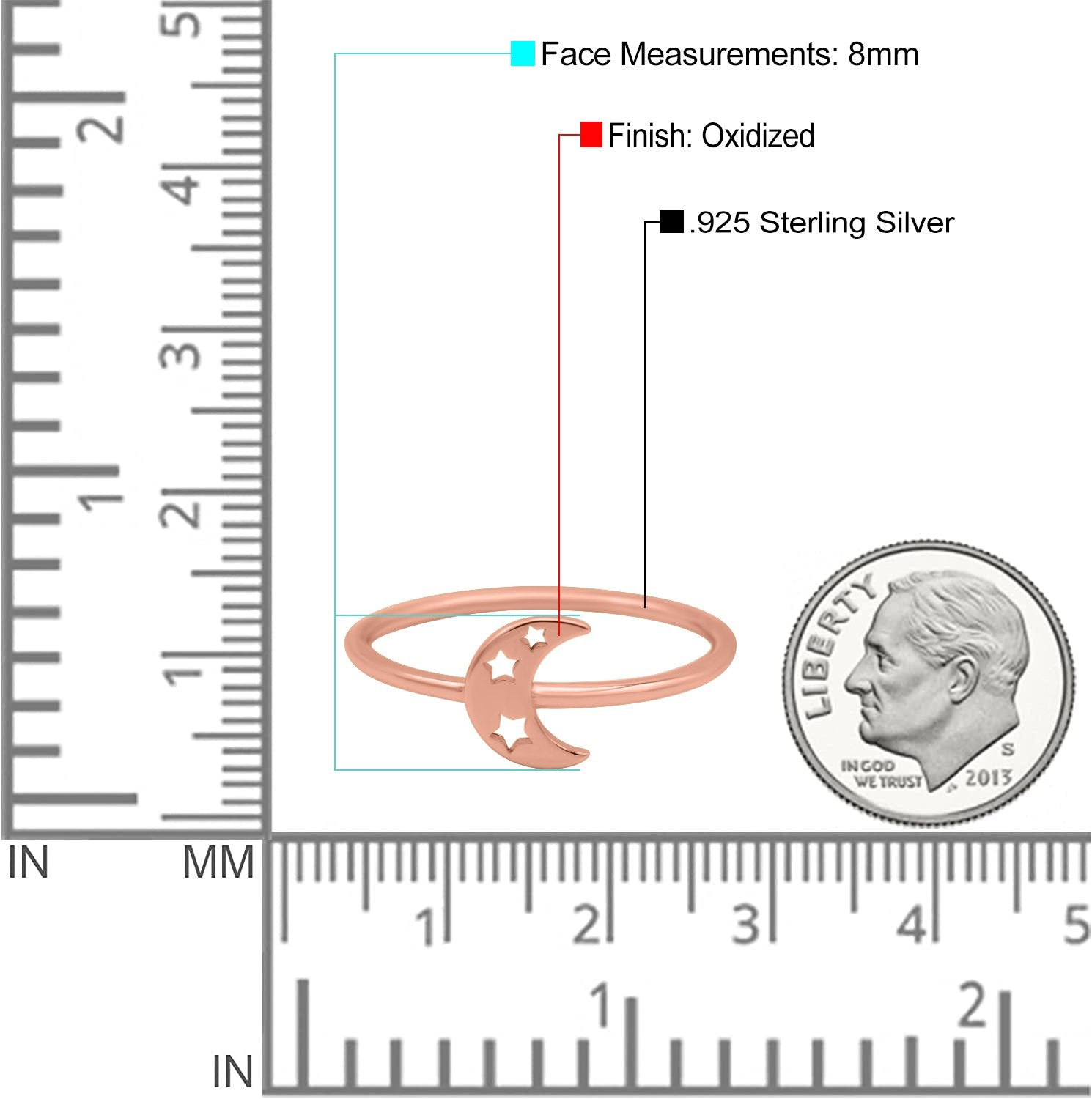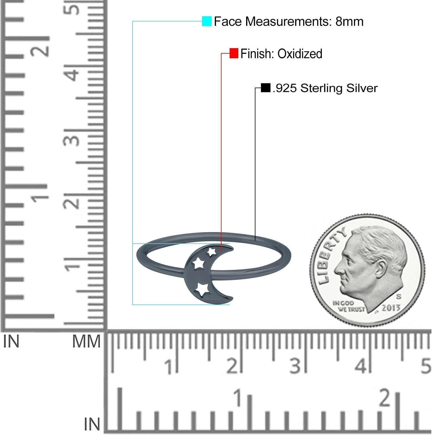Moon with Stars Ring Oxidized Band Solid 925 Sterling Silver (8mm)