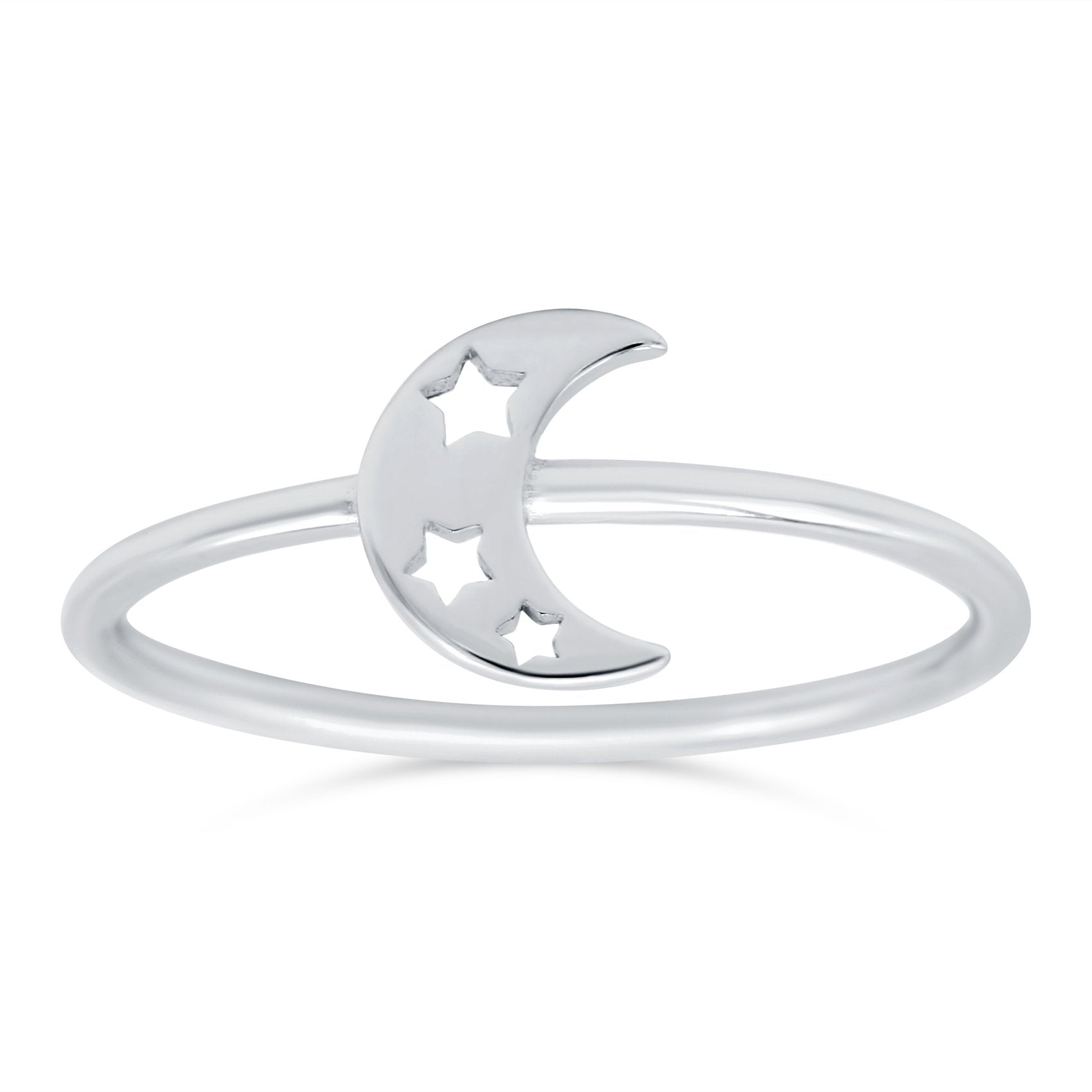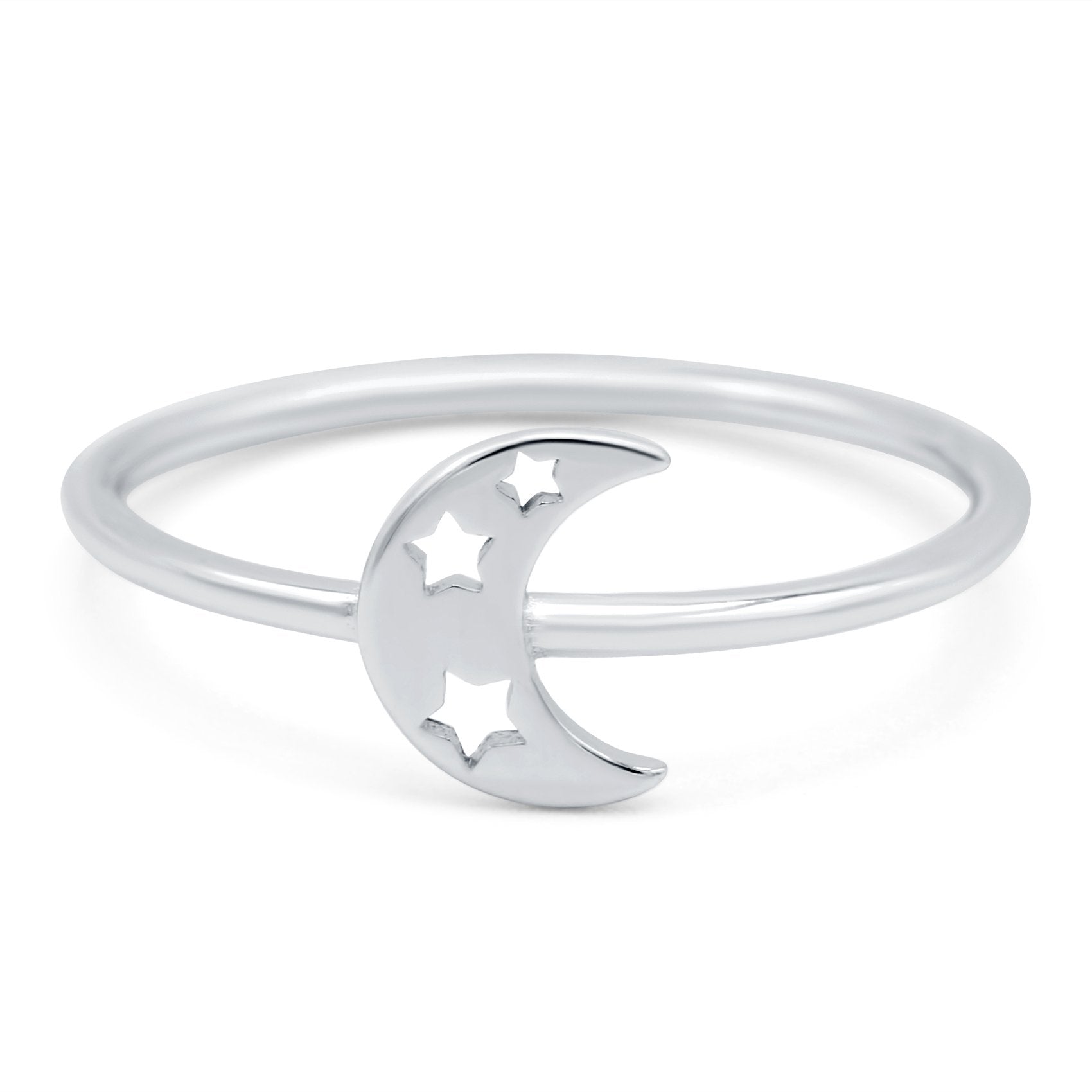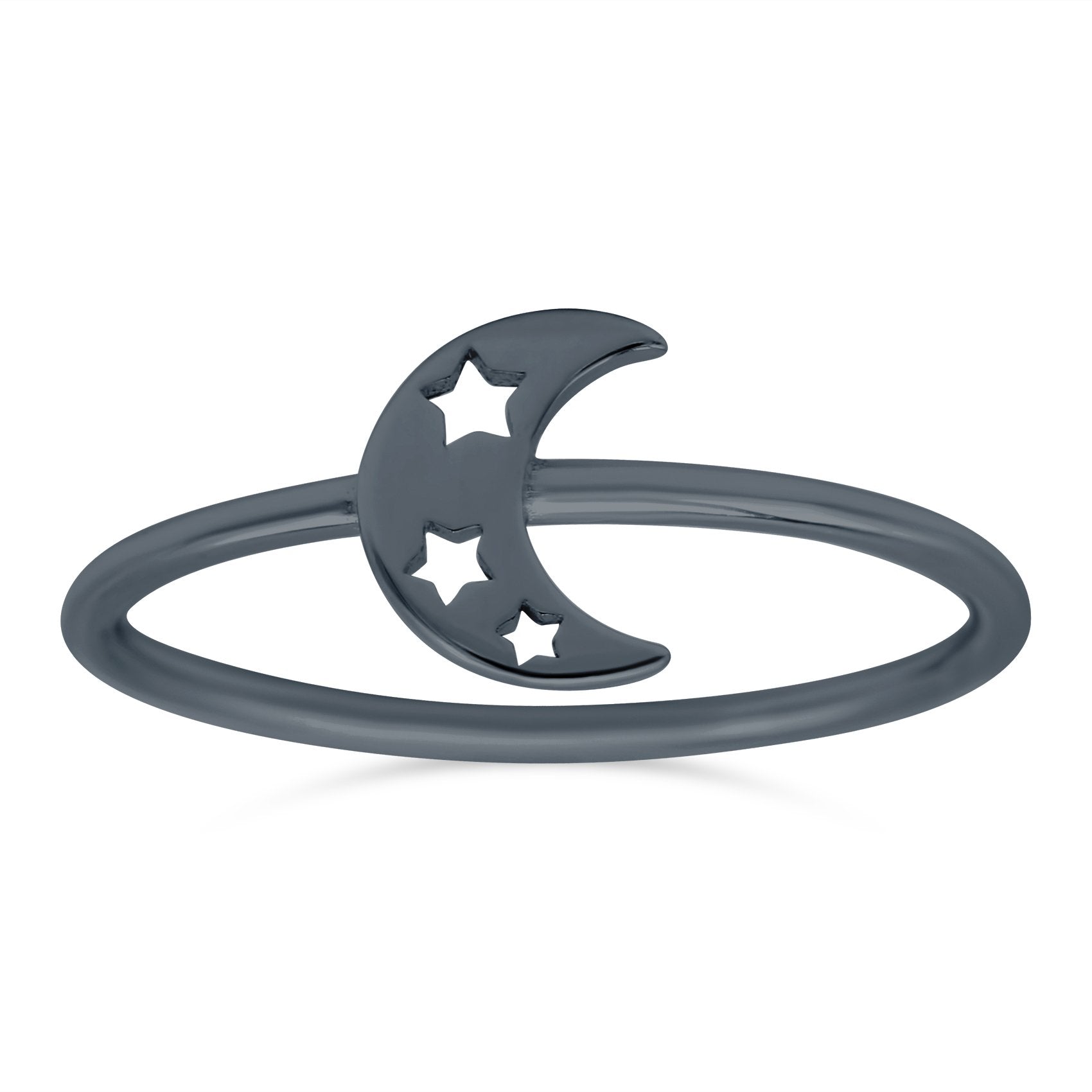 Moon with Stars Ring Oxidized Band Solid 925 Sterling Silver (8mm)