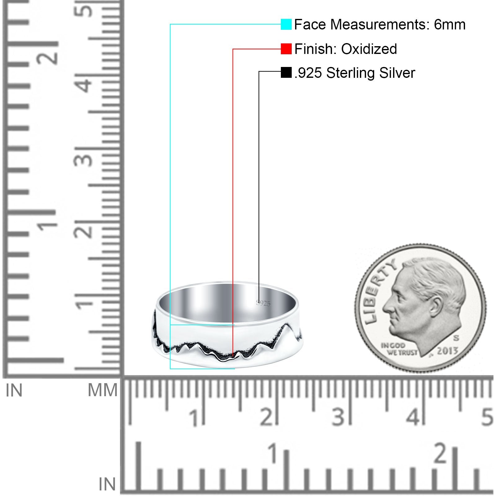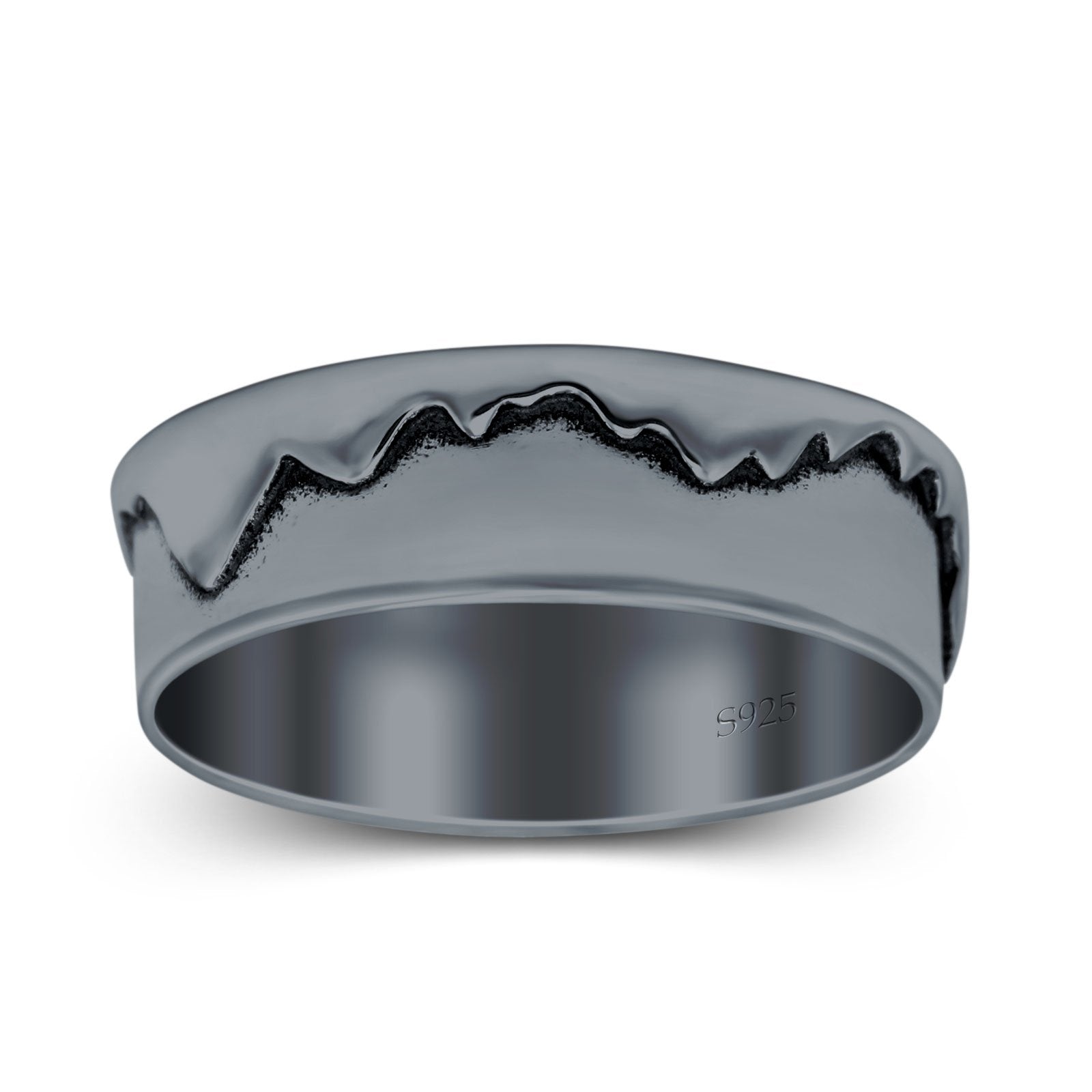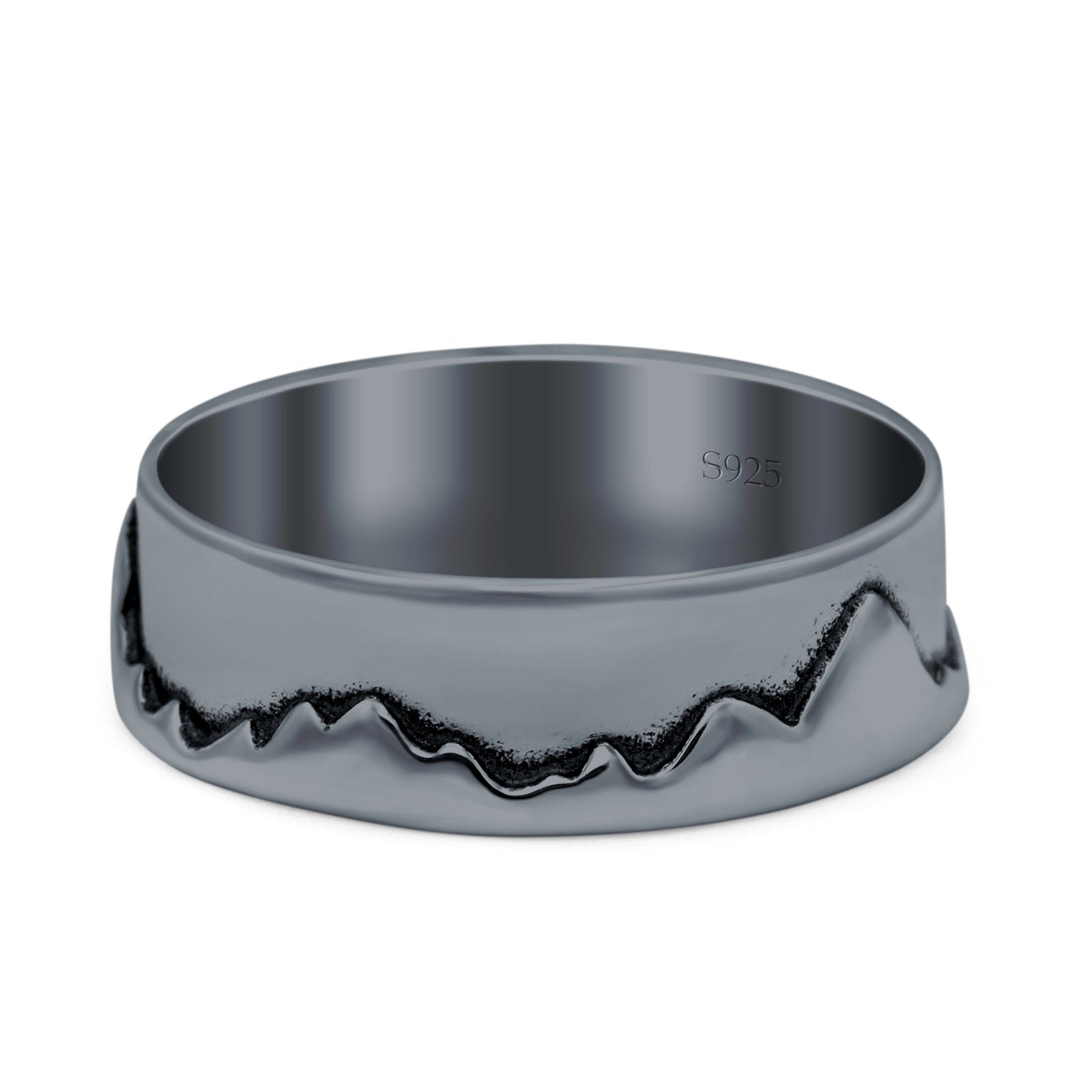 Mountains Ring Oxidized Band Solid 925 Sterling Silver Thumb Ring (6mm)