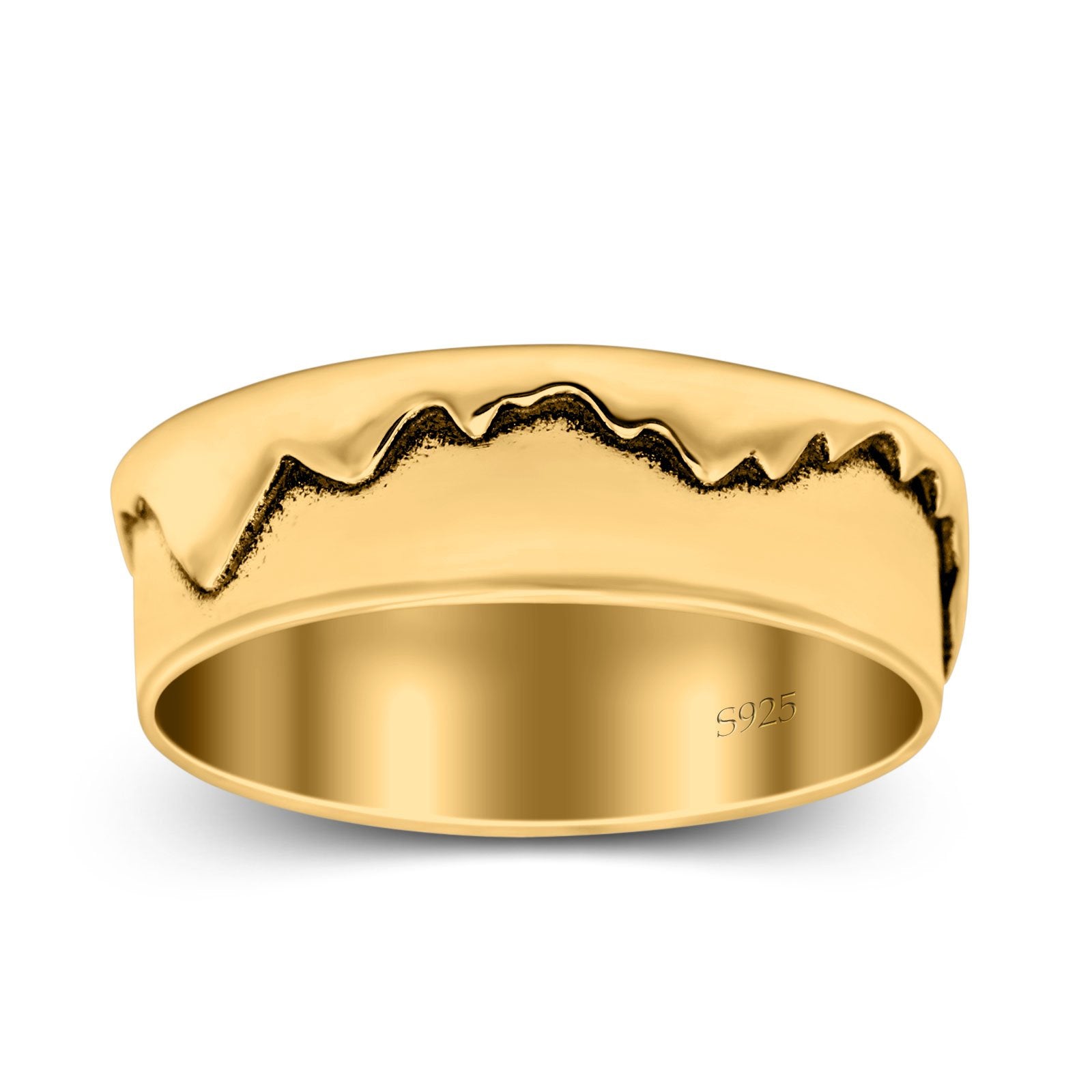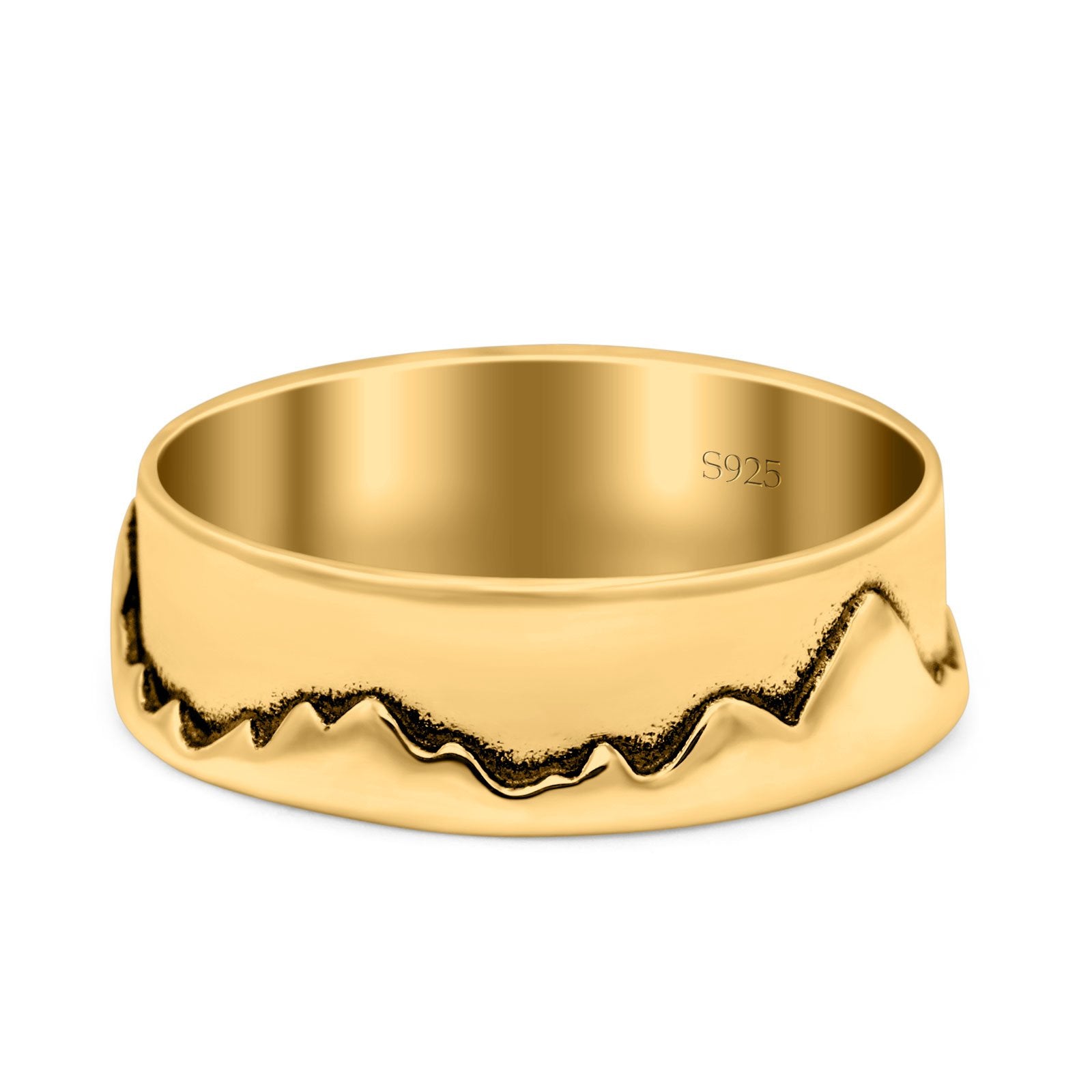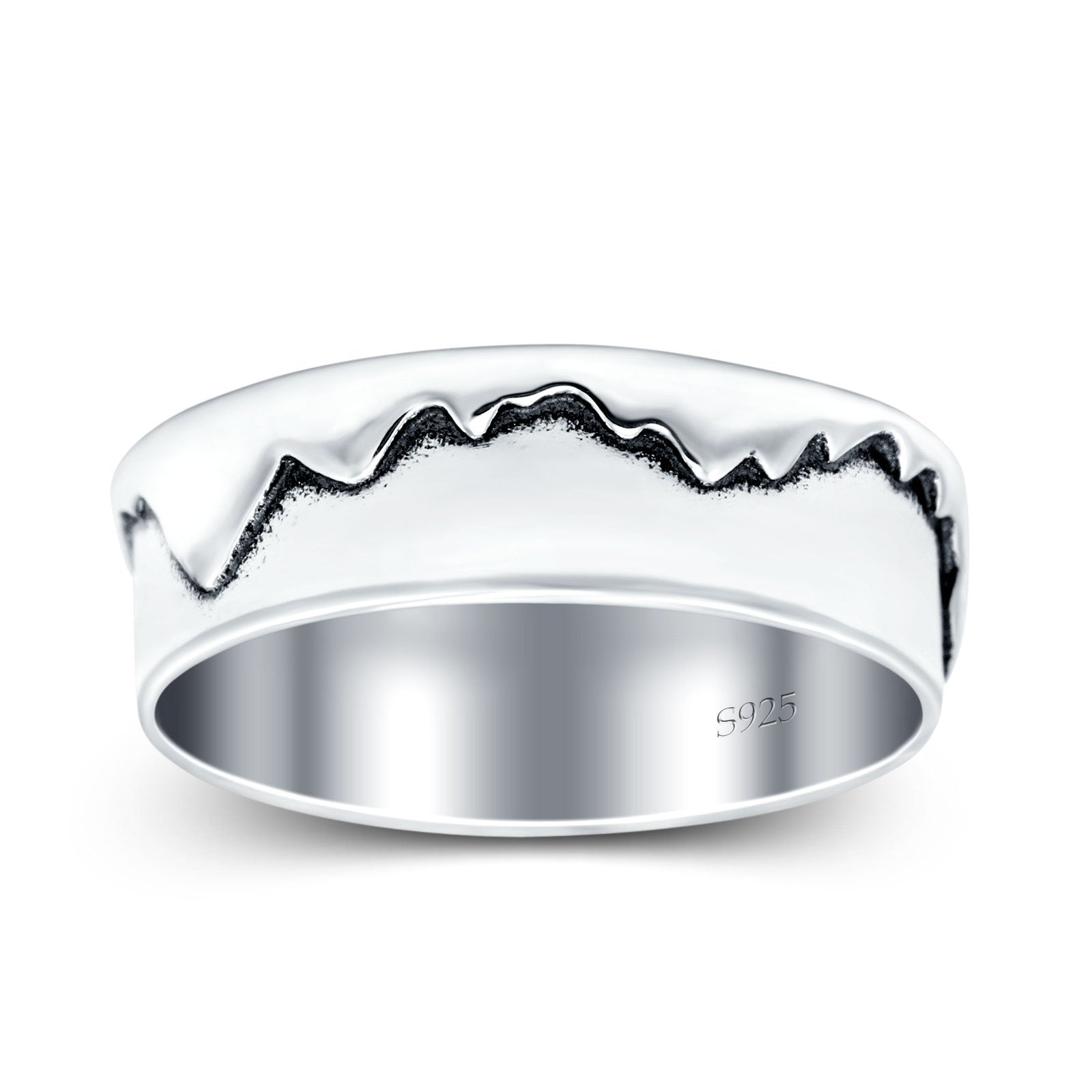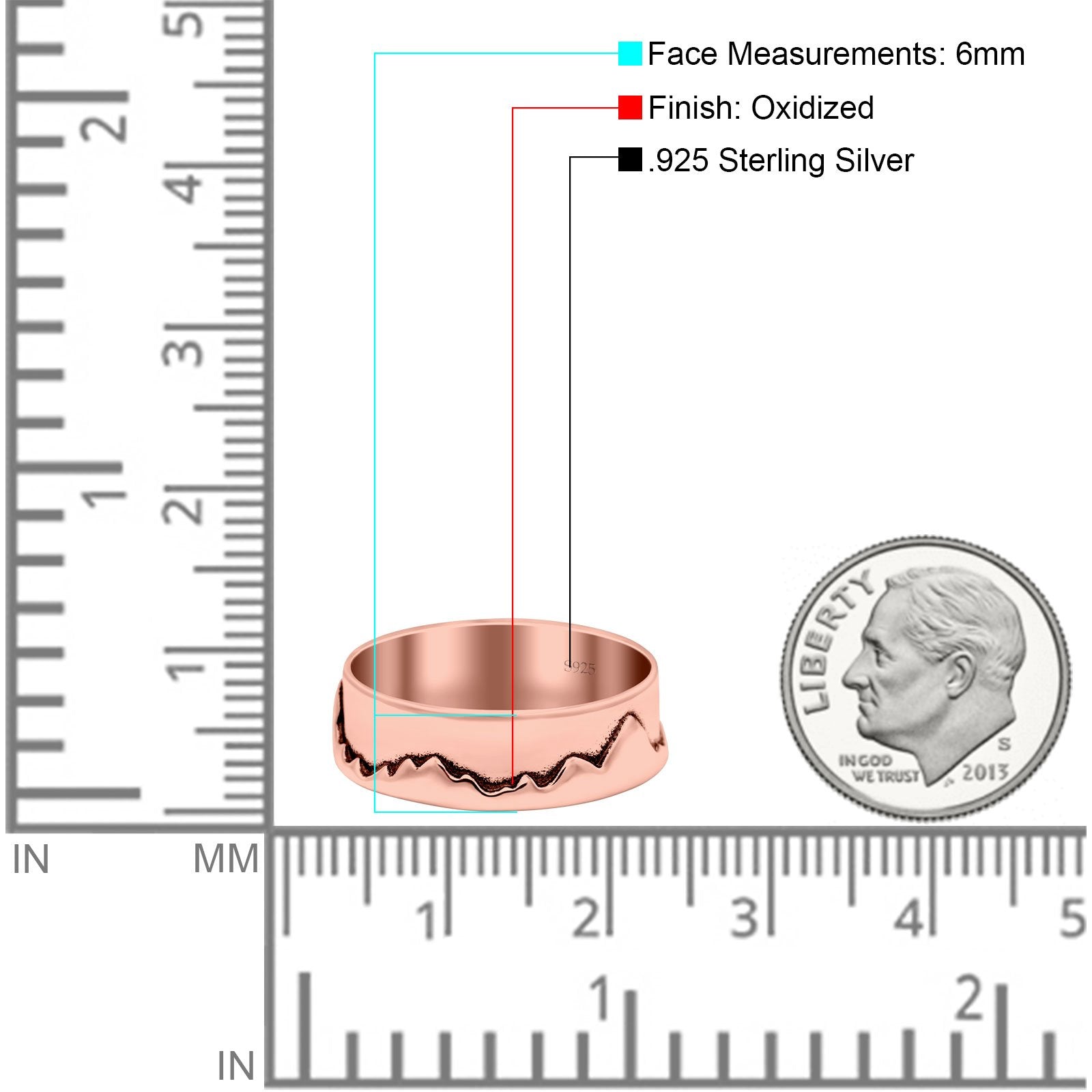 Mountains Ring Oxidized Band Solid 925 Sterling Silver Thumb Ring (6mm)