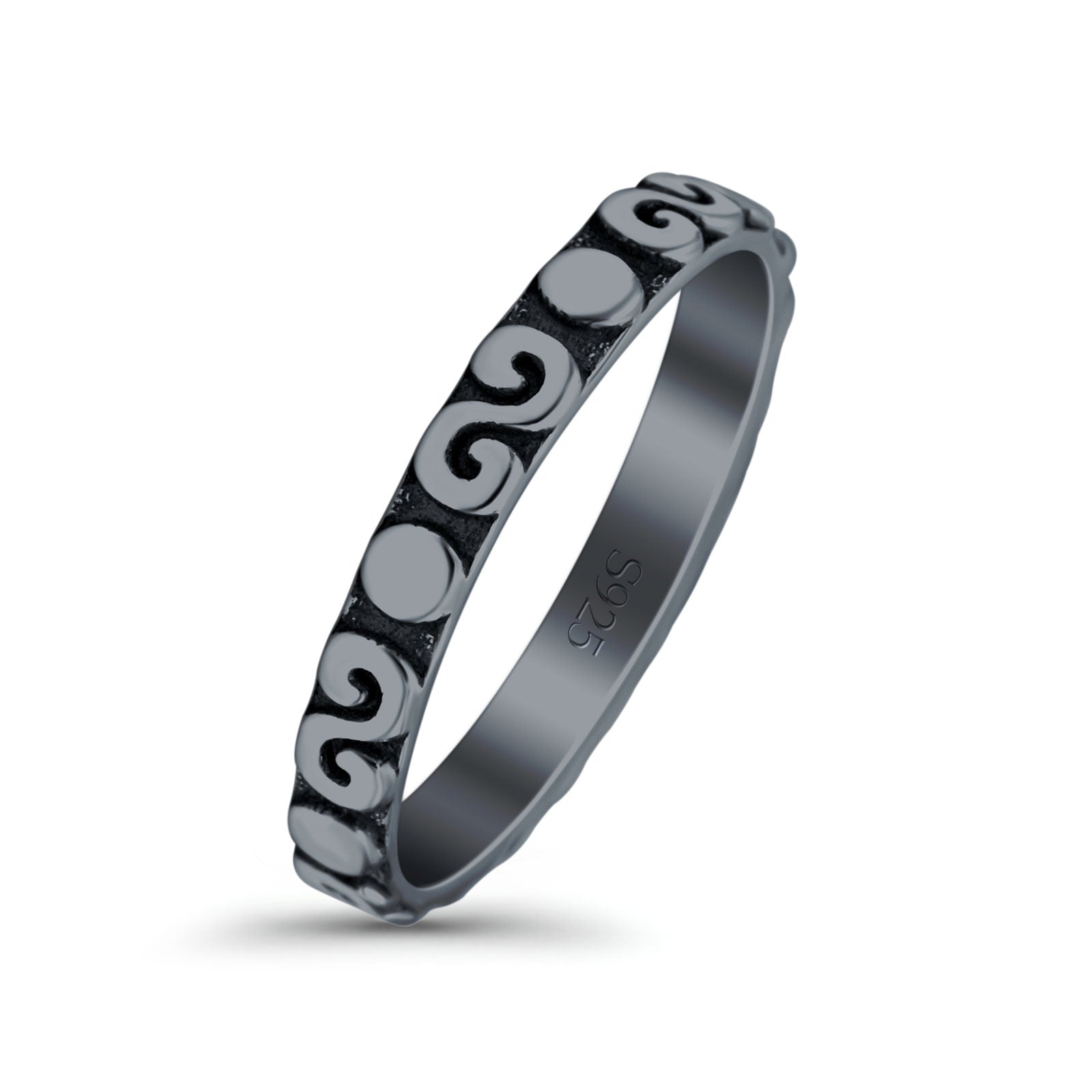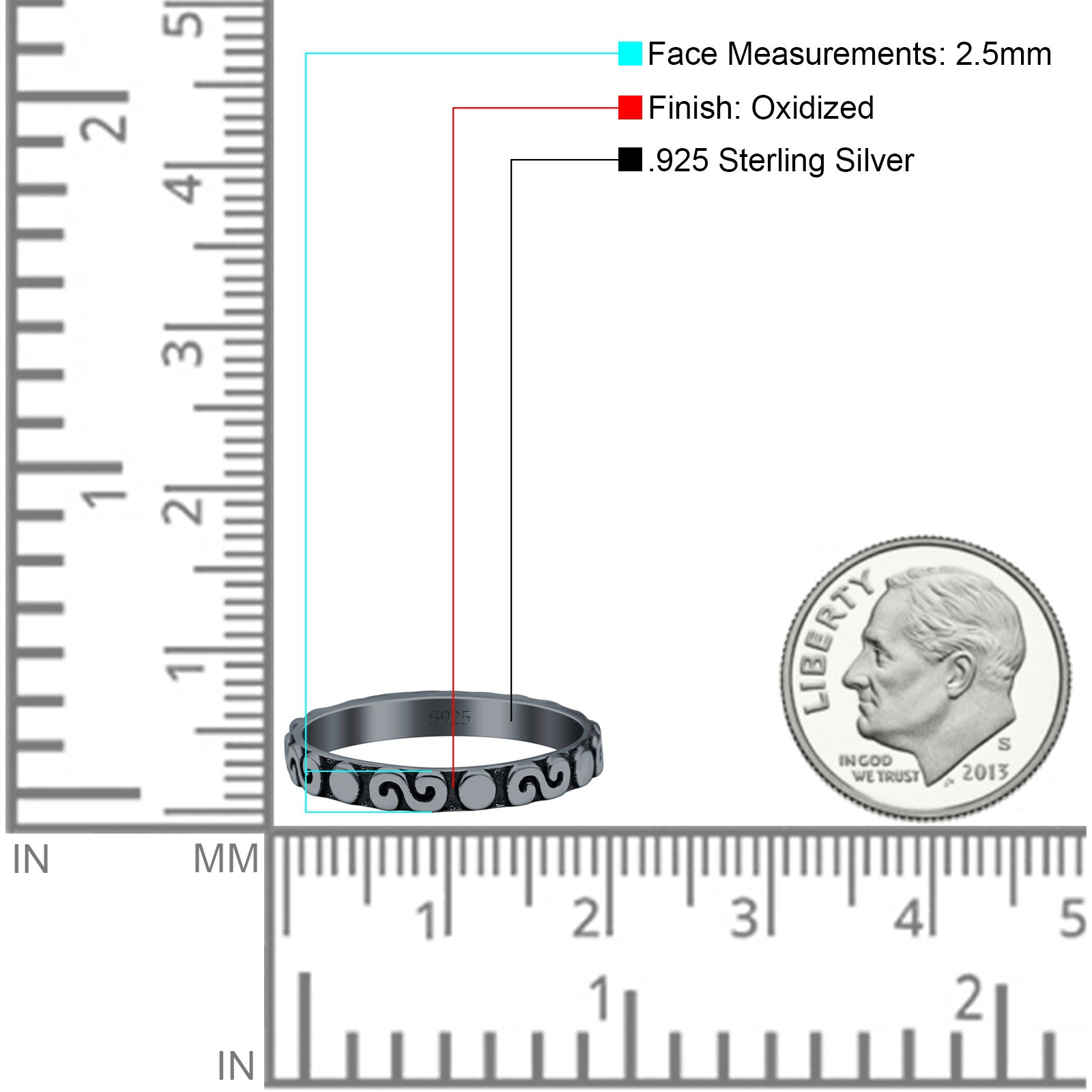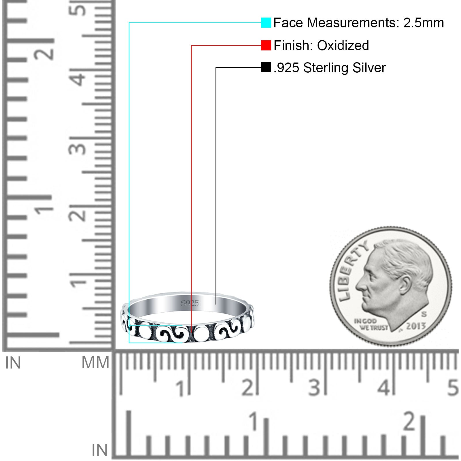 Spirals Ring Oxidized Band Solid 925 Sterling Silver Thumb Ring (2.5mm)