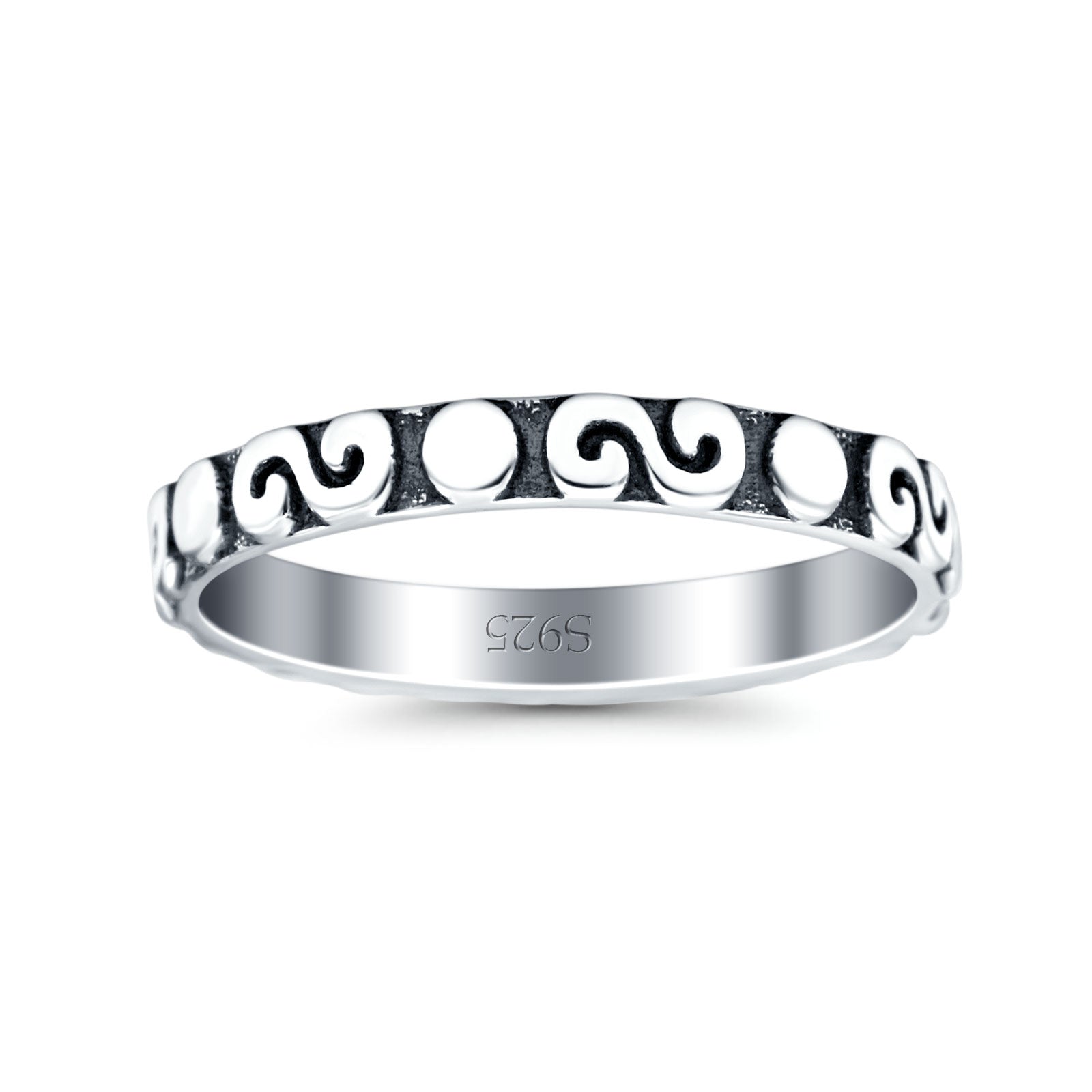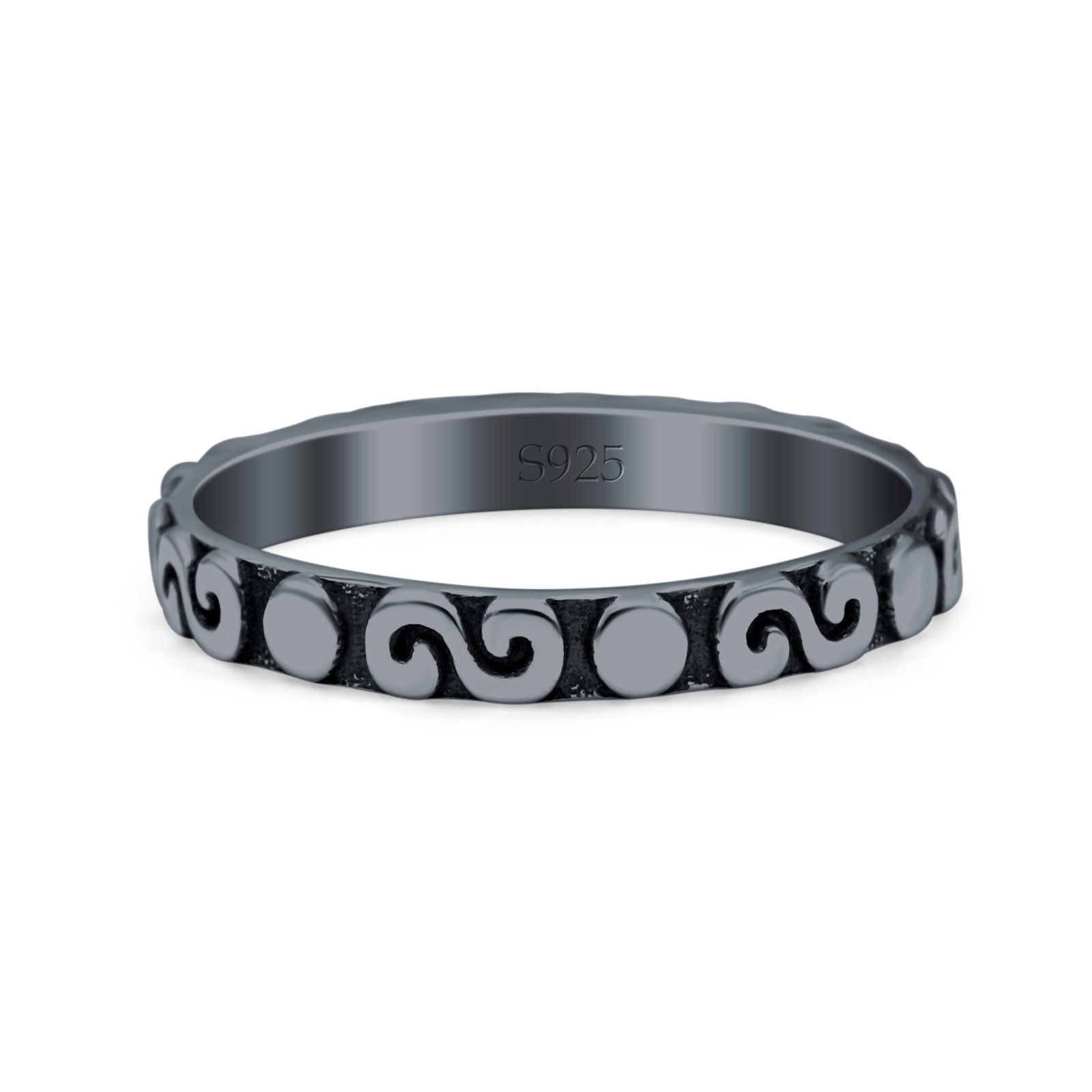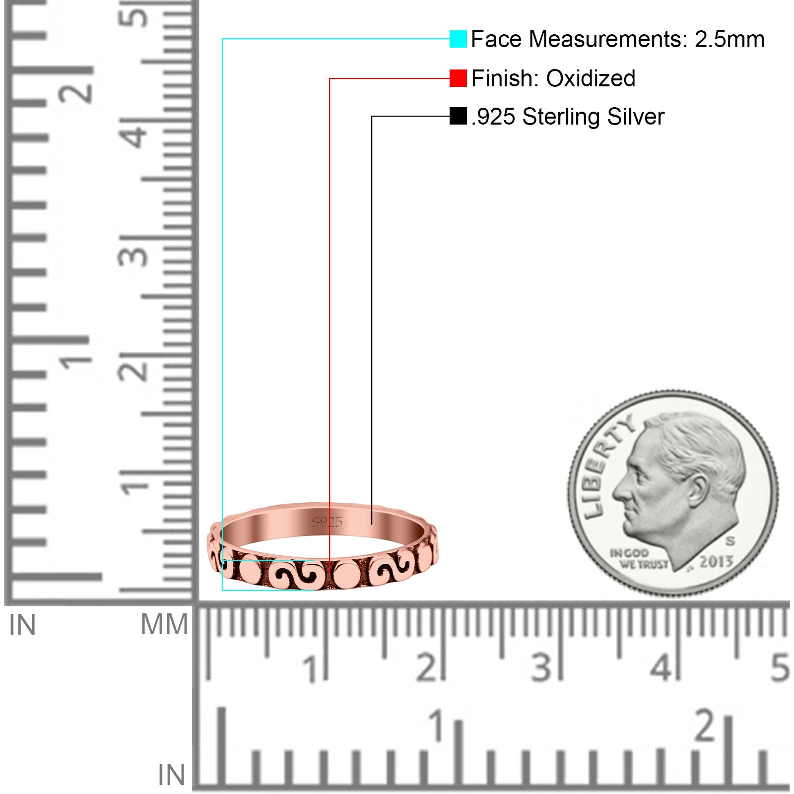 Spirals Ring Oxidized Band Solid 925 Sterling Silver Thumb Ring (2.5mm)