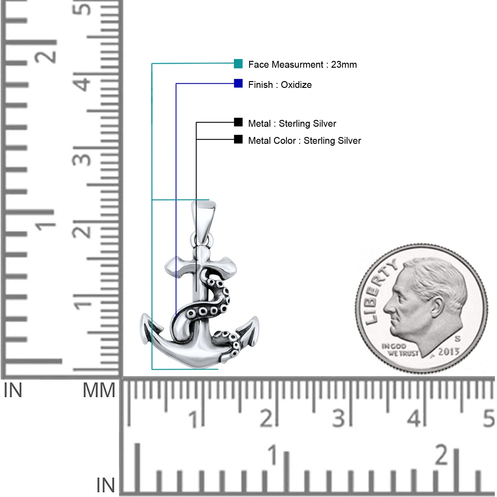 Anchor & Tentacle Pendant Rolo Chain Necklace Oxidized 925 Sterling Silver