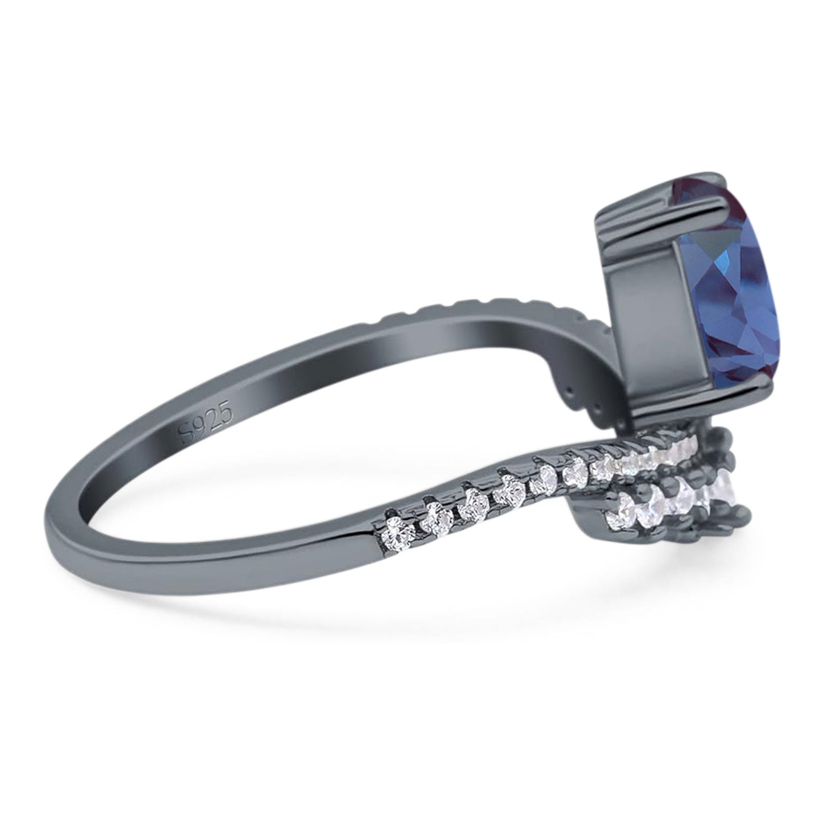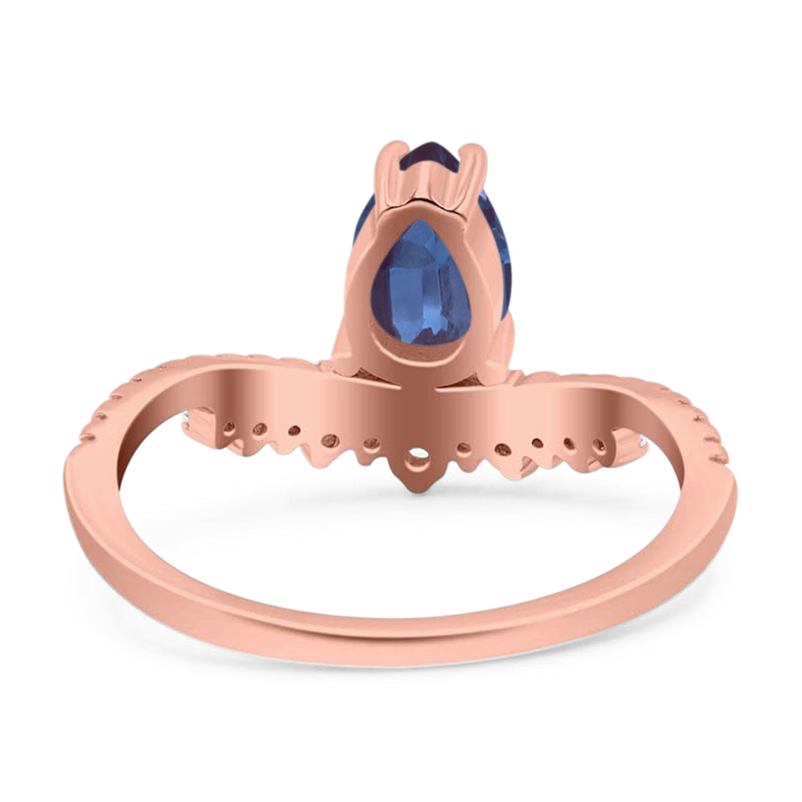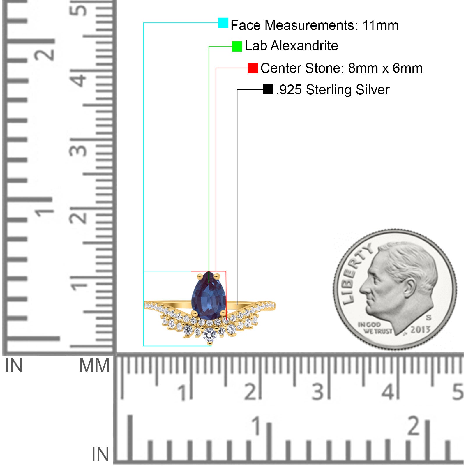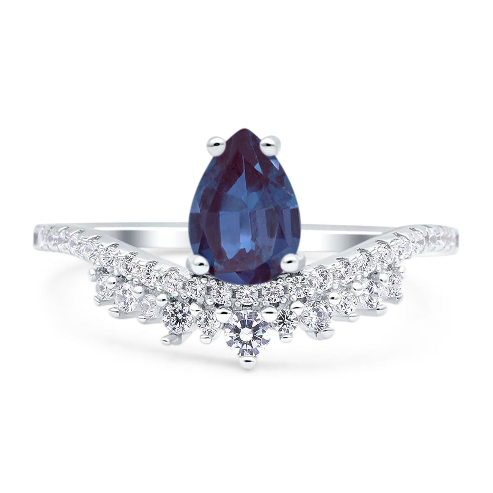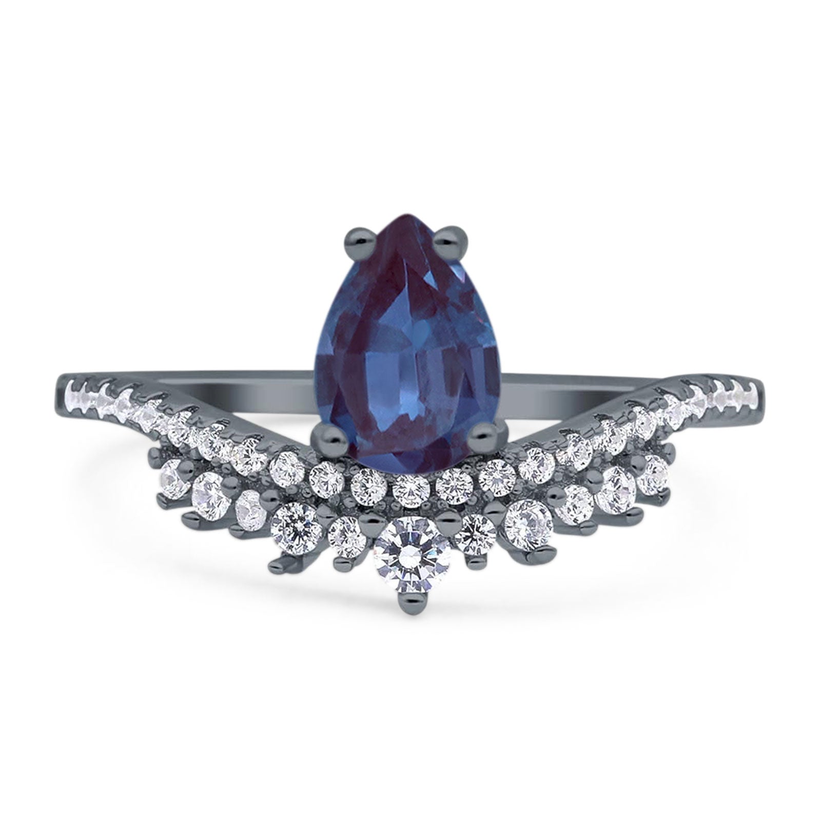 Art Deco Pear Teardrop Lab Alexandrite Cocktail Ring 925 Sterling Silver
