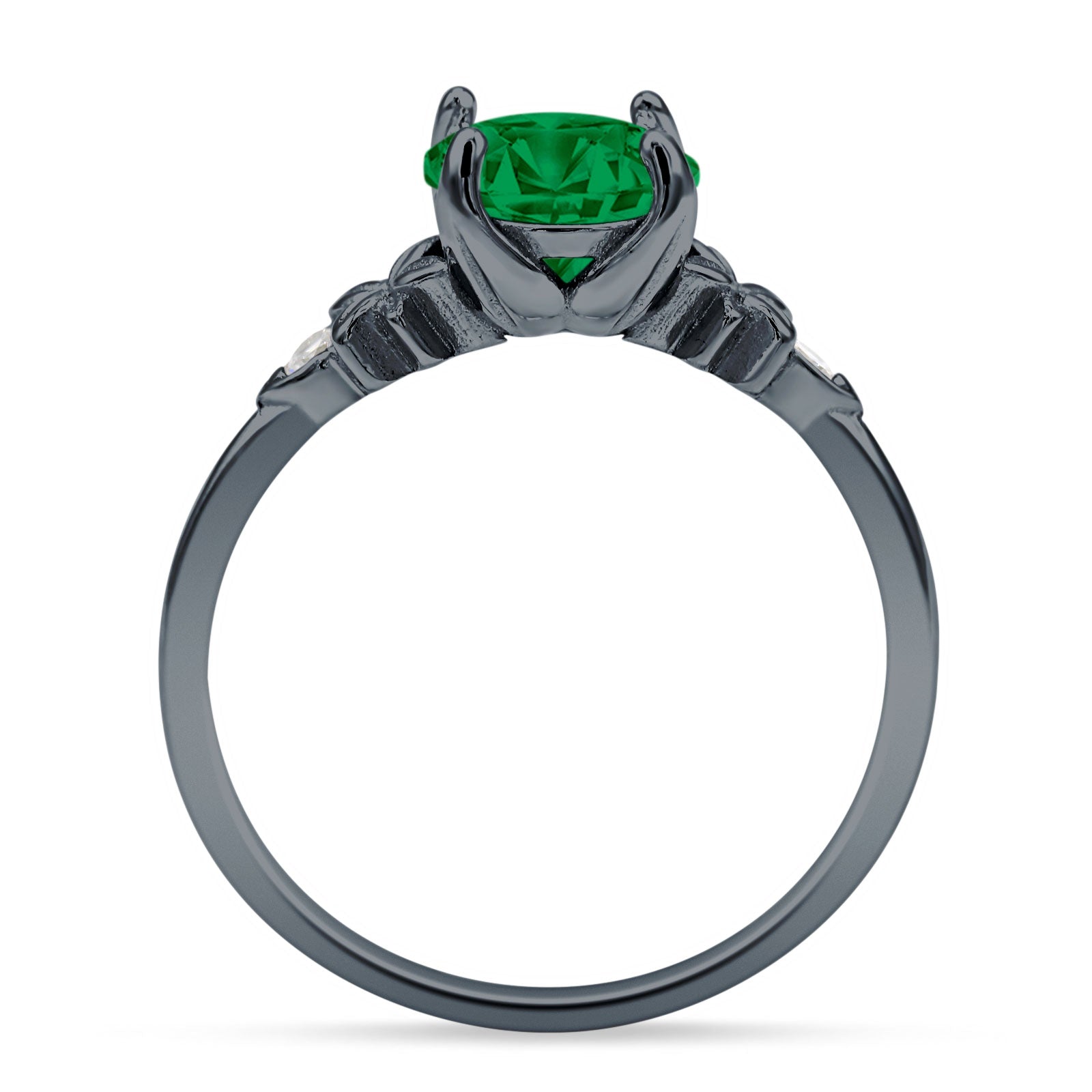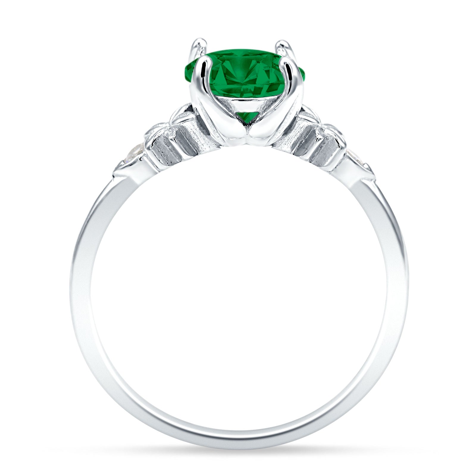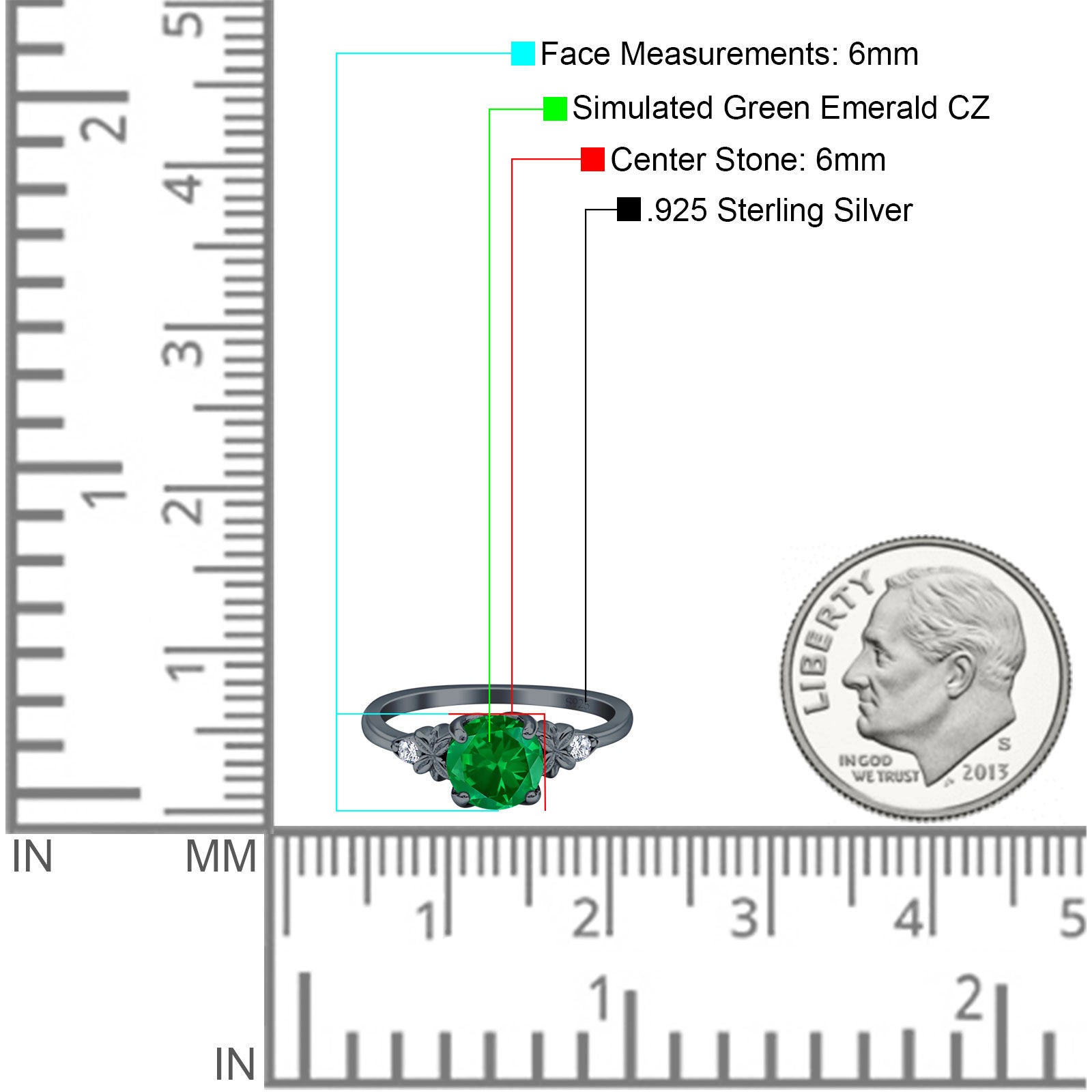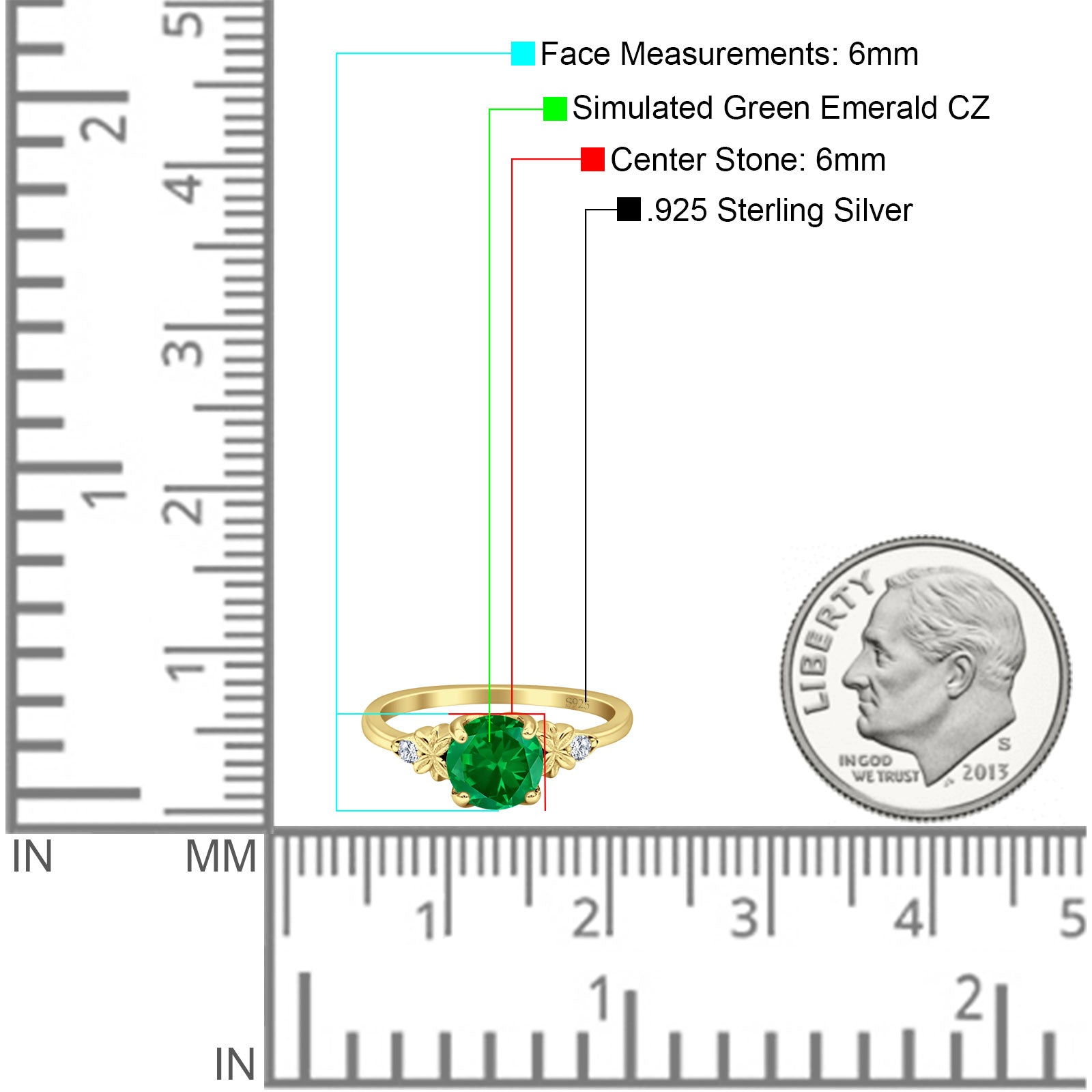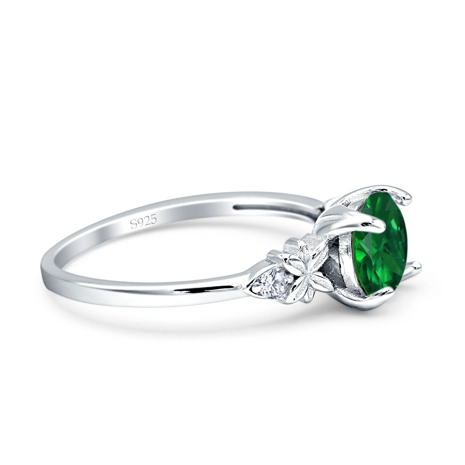 Ring Design: Round Green Emerald CZ Floral Ring.