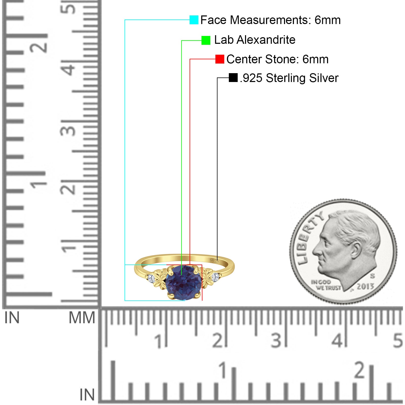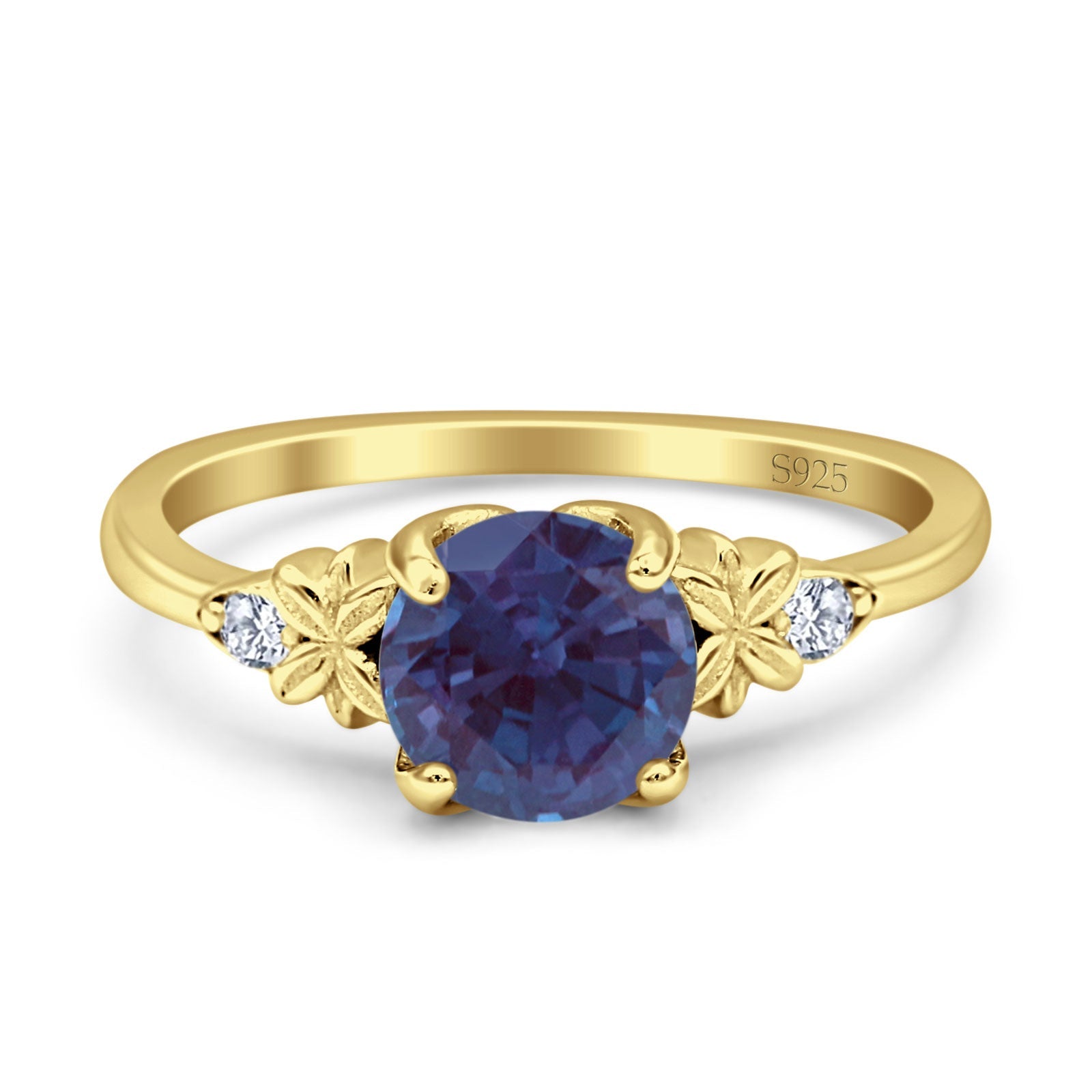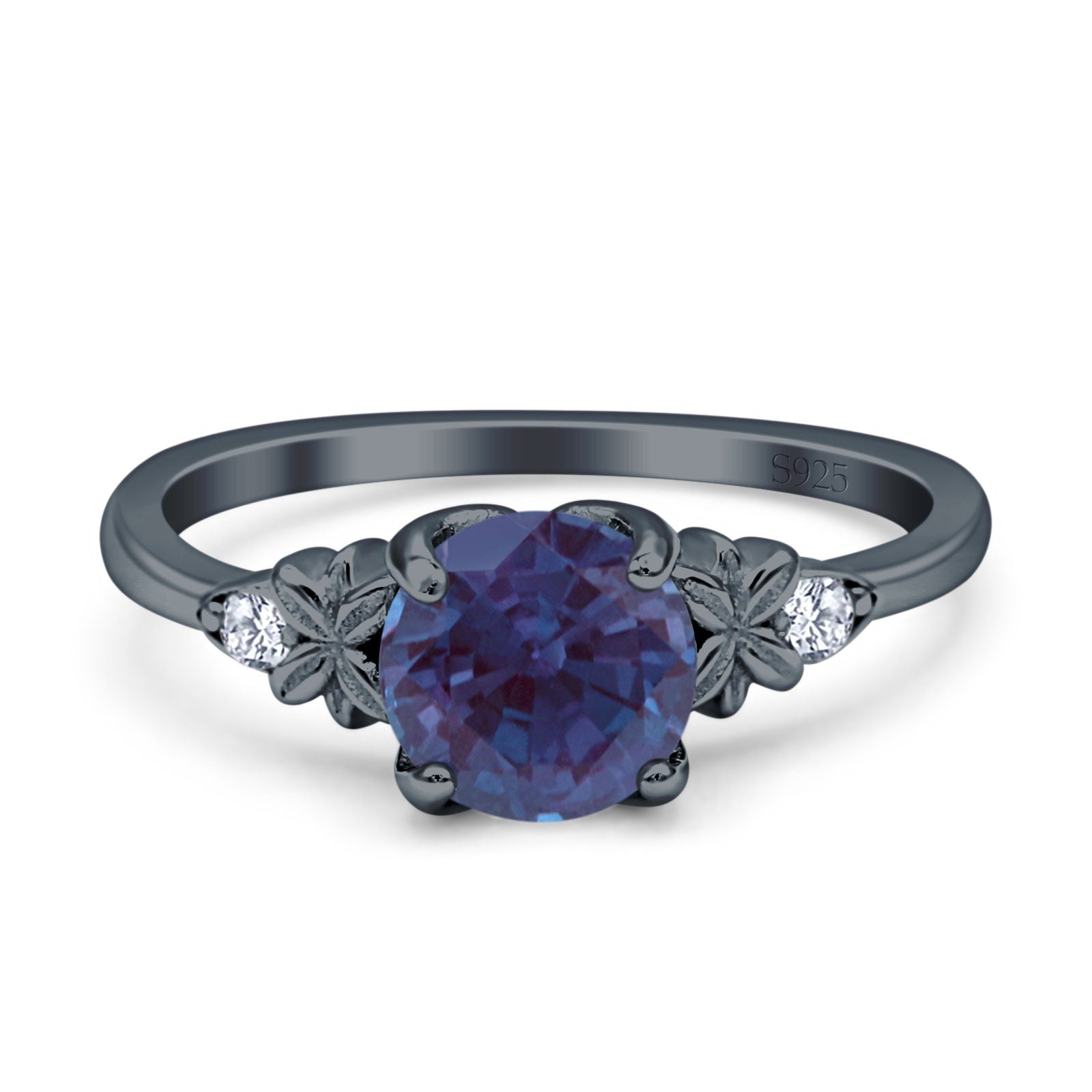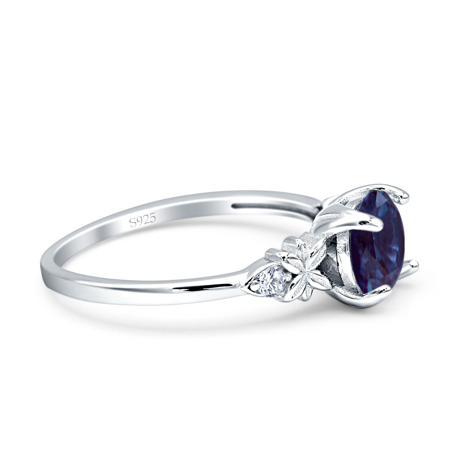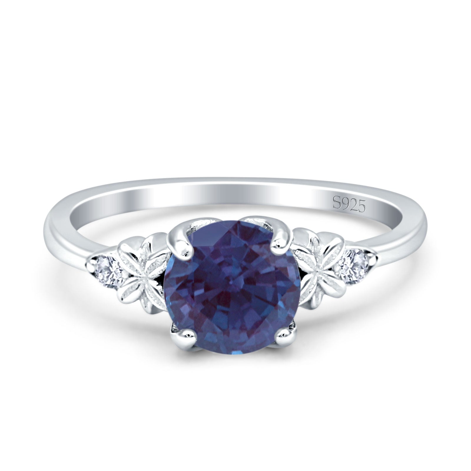 Art Deco Round Lab Alexandrite Floral Ring 925 Sterling Silver