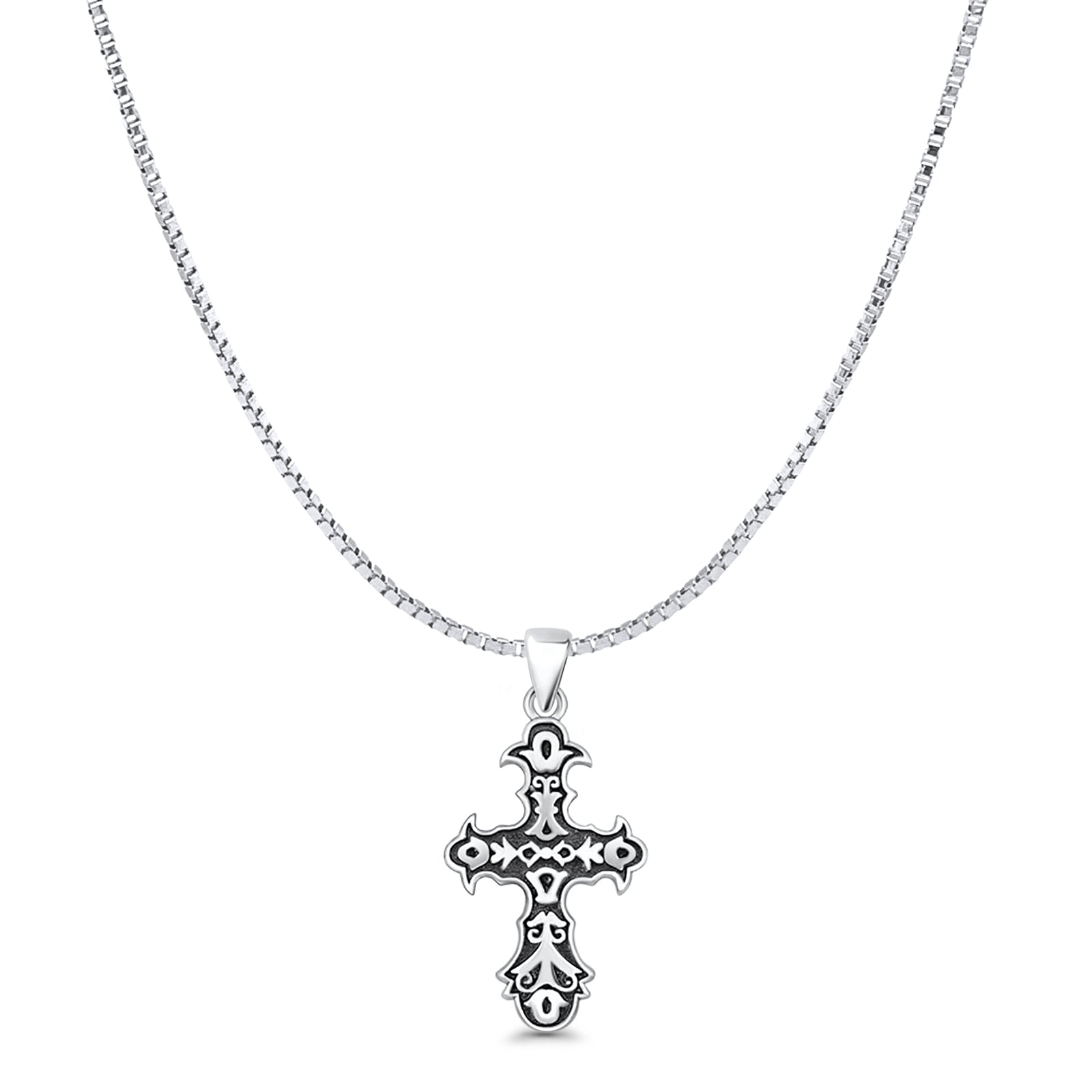 Cross Pendant Box Chain Necklace Oxidized 925 Sterling Silver