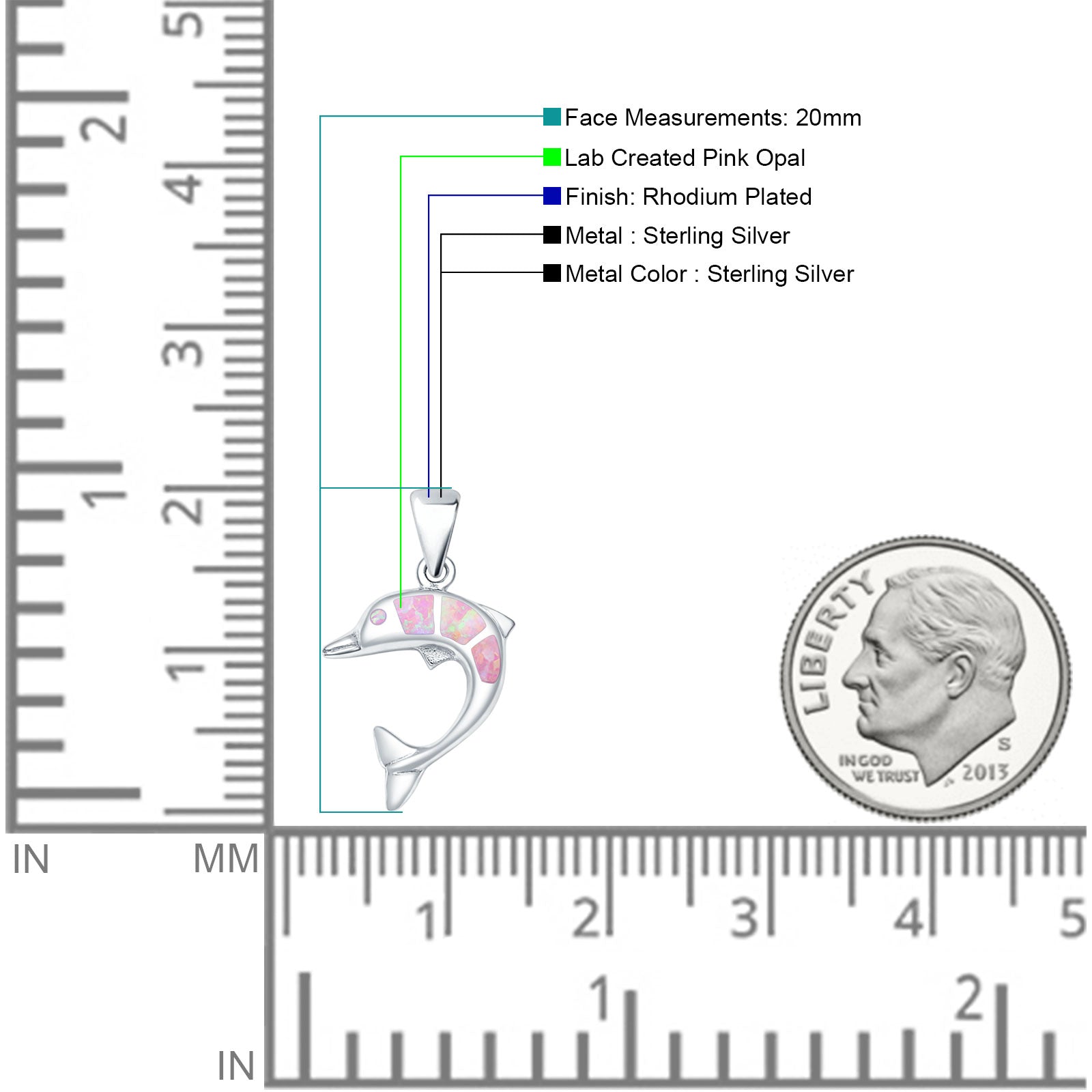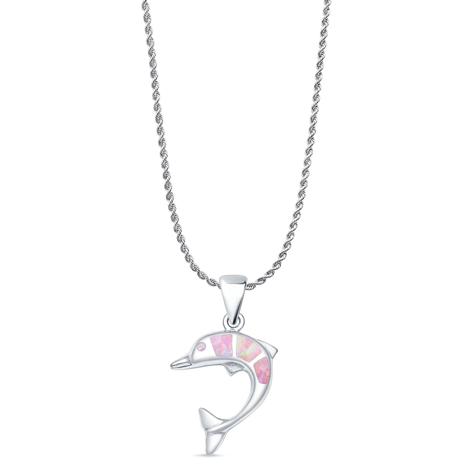 Style: Lab Created Pink Opal Dolphin Pendant Necklace