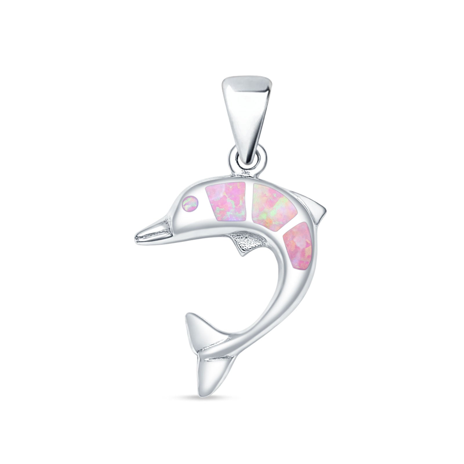 Style: Lab Created Pink Opal Dolphin Pendant Necklace