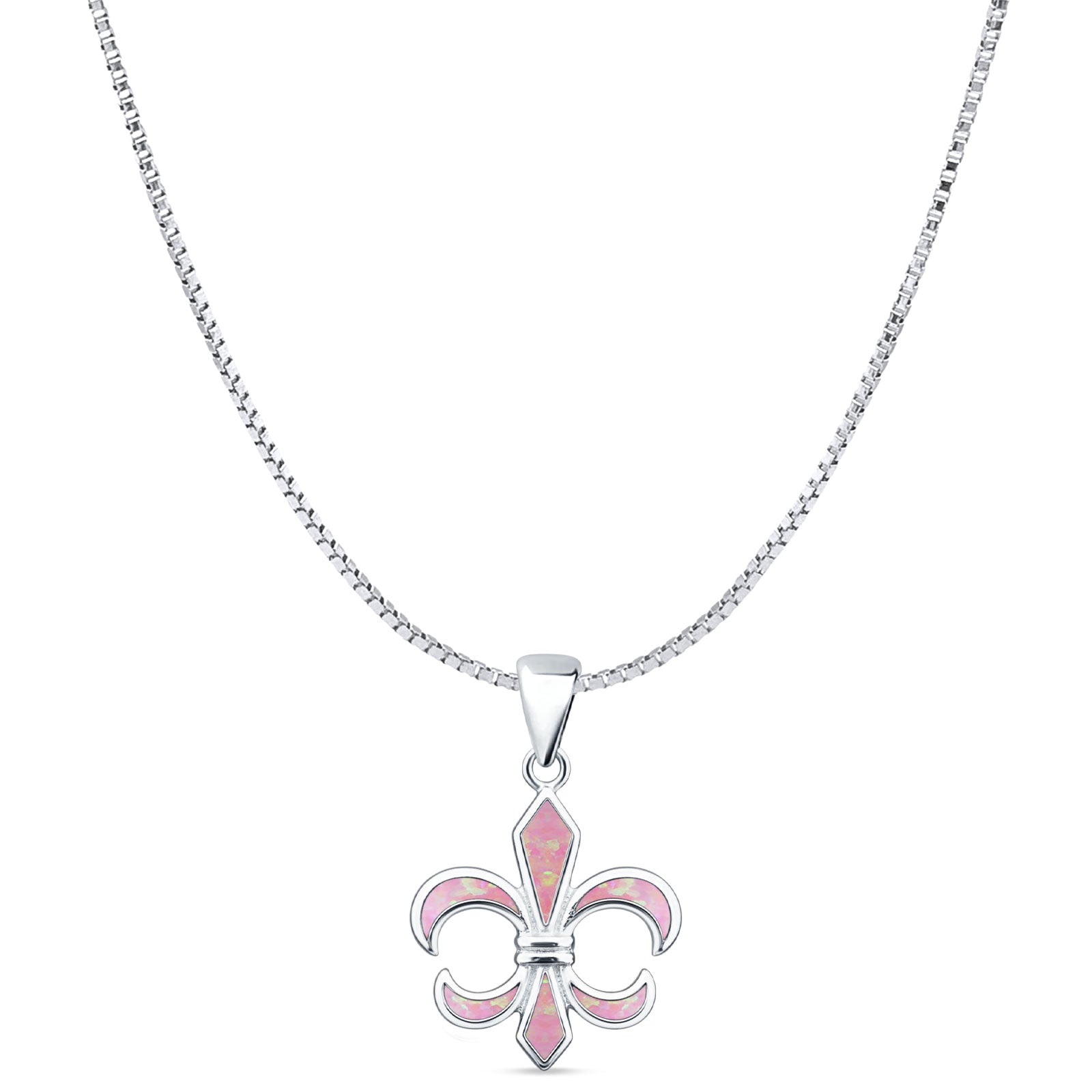 Lab Created Pink Opal Fleur De Lis Pendant Box Chain Necklace 925 Sterling Silver