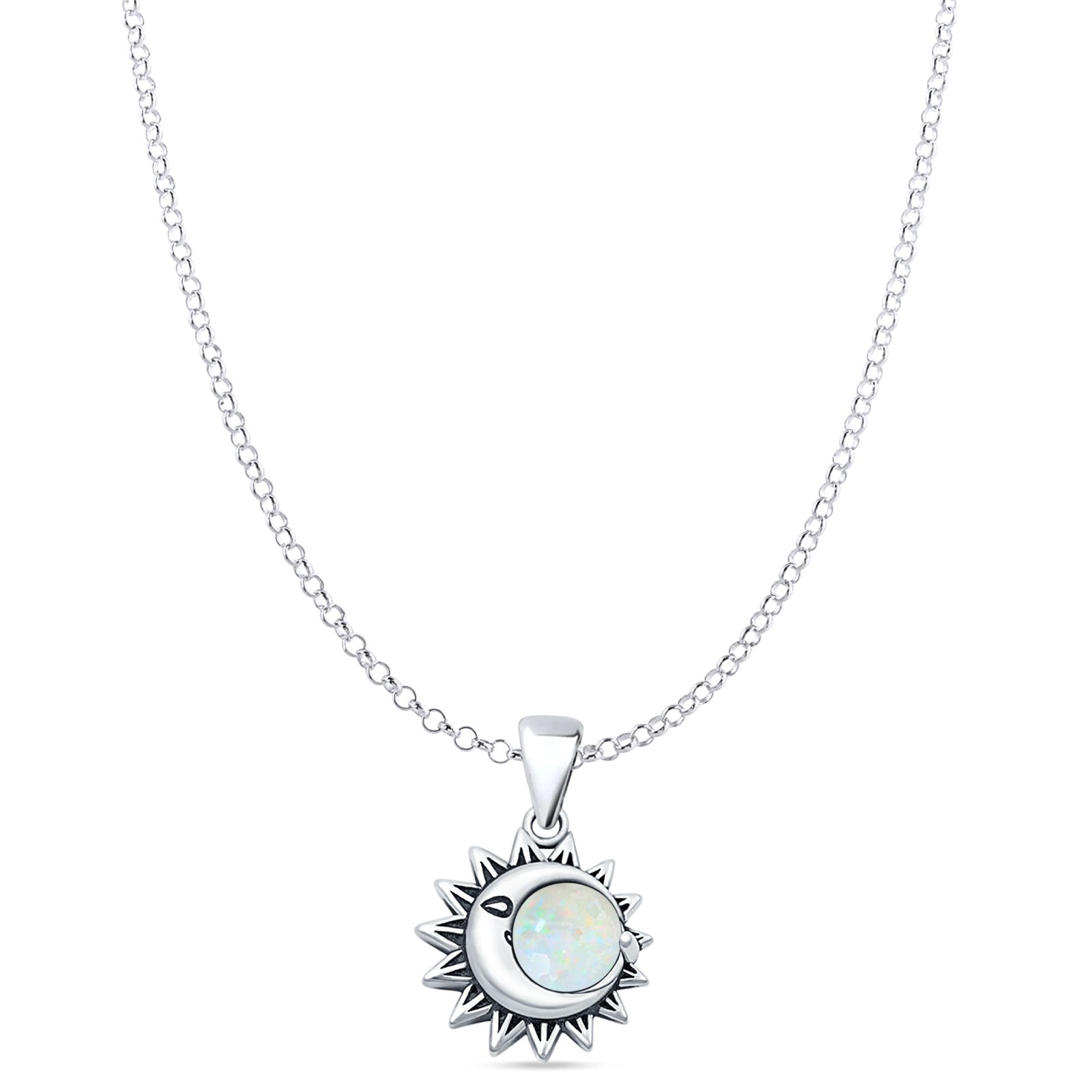 Style: Lab Created White Opal Moon & Sun Pendant Necklace