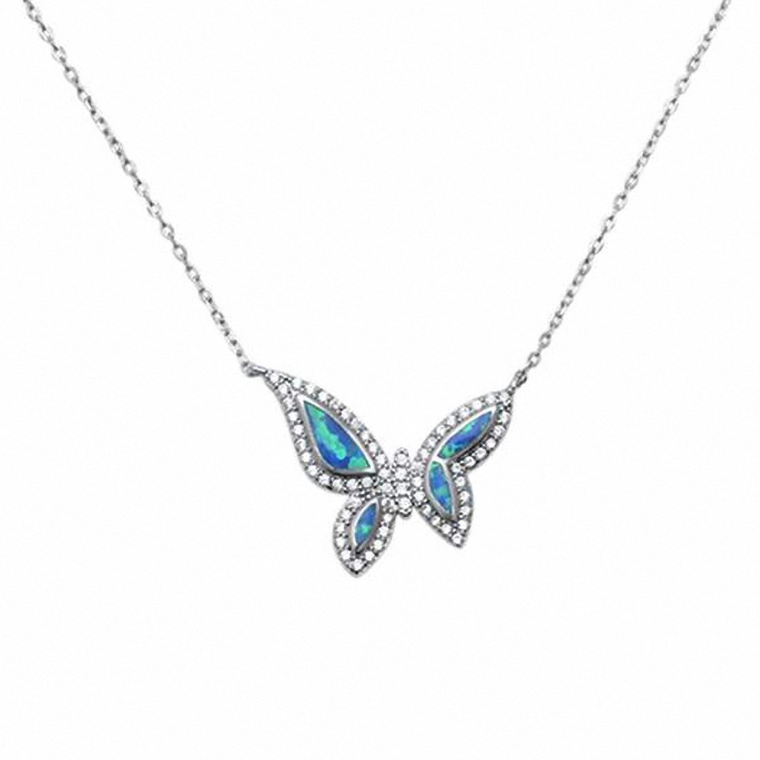 Butterfly Necklace Lab Created Opal Simulated Round Cubic Zirconia 925 Sterling Silver