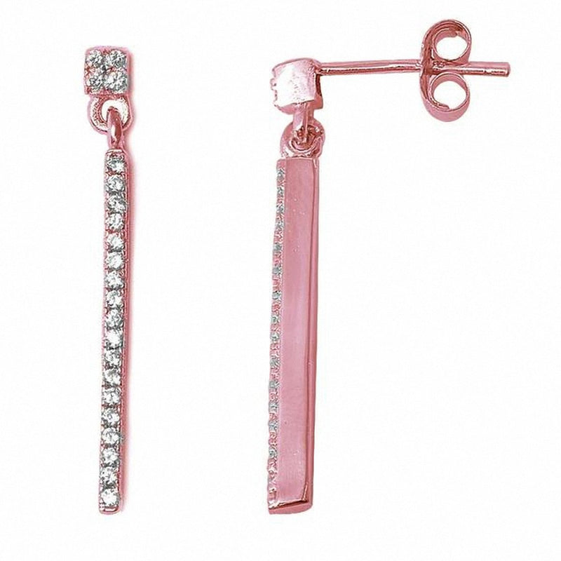 Bar Design Earrings Dangling Round Cubic Zirconia 925 Sterling Silver