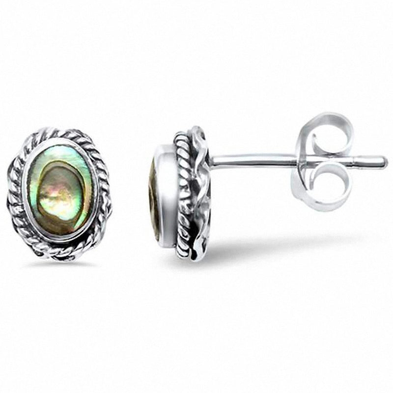 Oval Filigree Solitaire Stud Earrings Simulated Stone 925 Sterling Silver