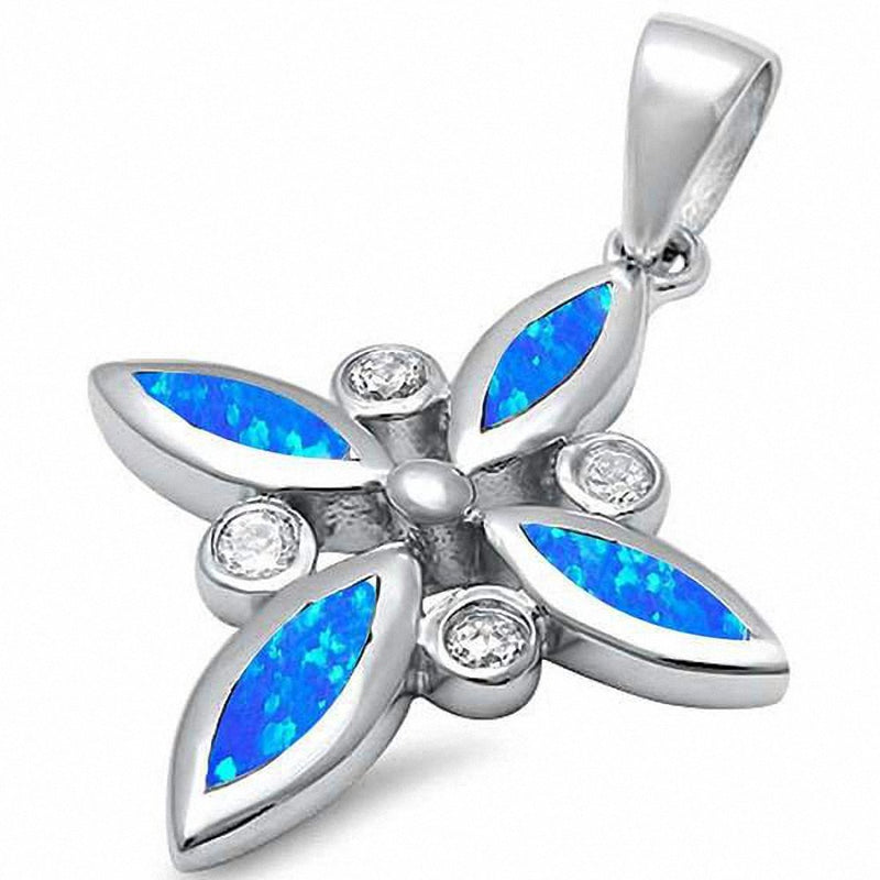 Cross Pendant Lab Created Opal Round Cubic Zirconia 925 Sterling Silver