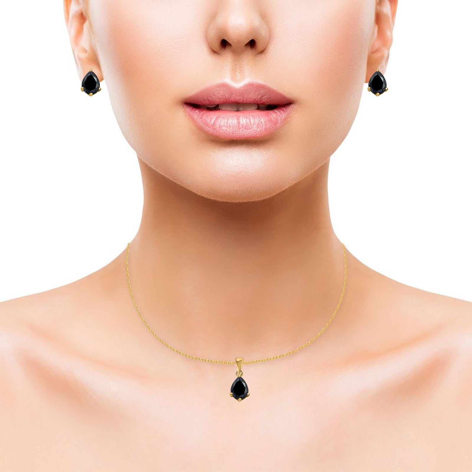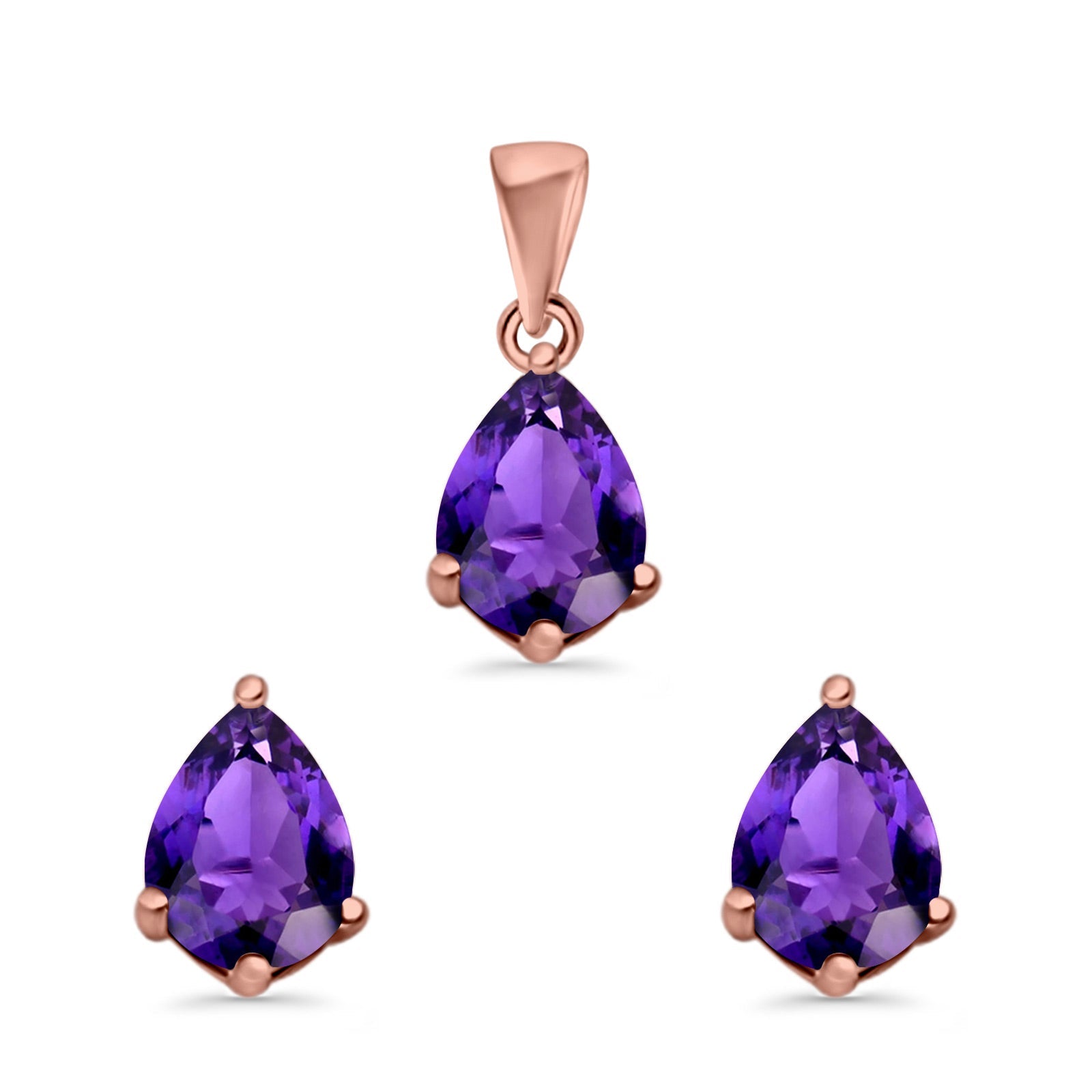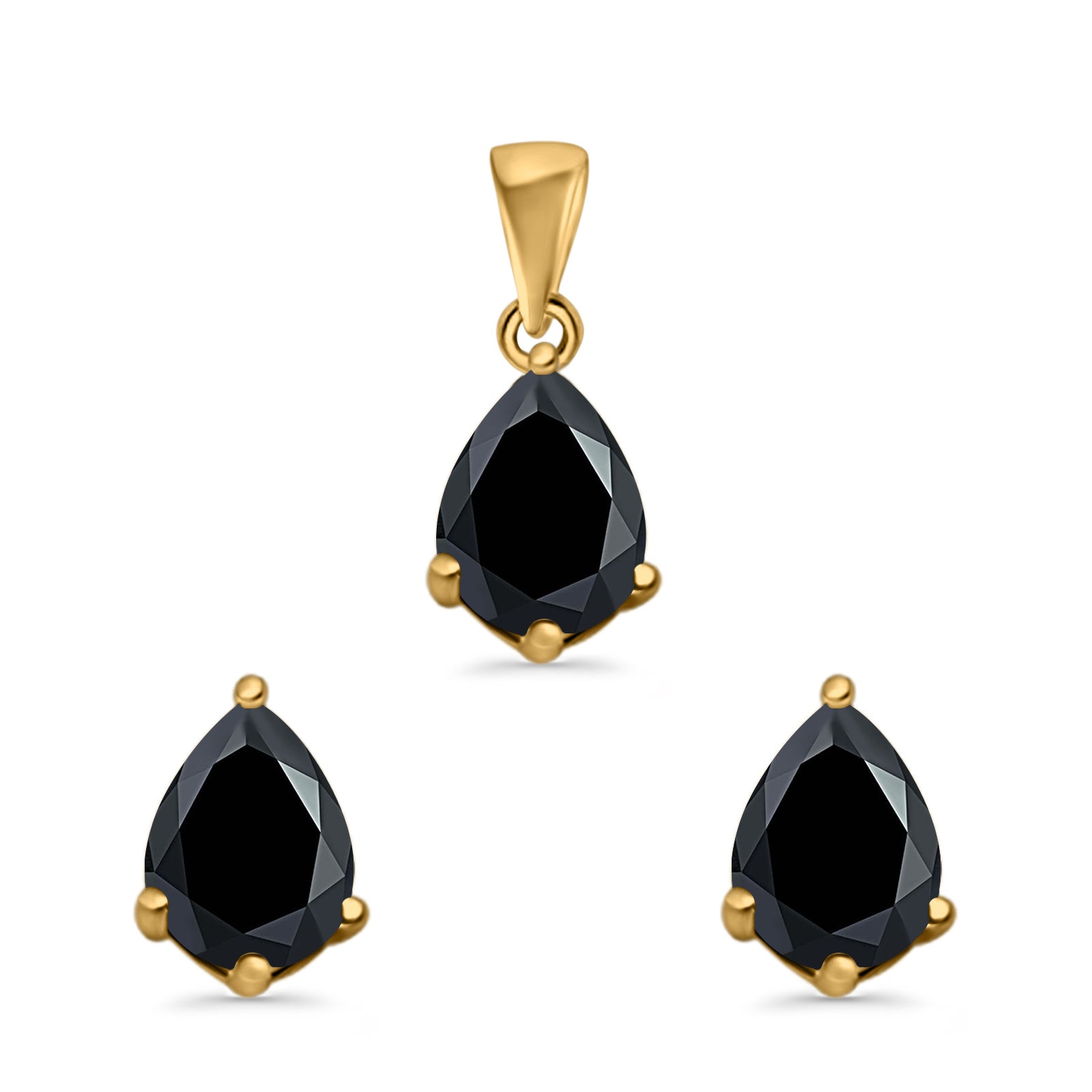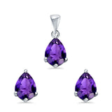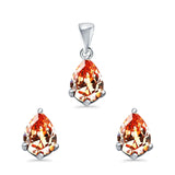 Art Deco Bridal Jewelry Matching Set Pendant Earring Pear Simulated Cubic Zirconia 925 Sterling Silver