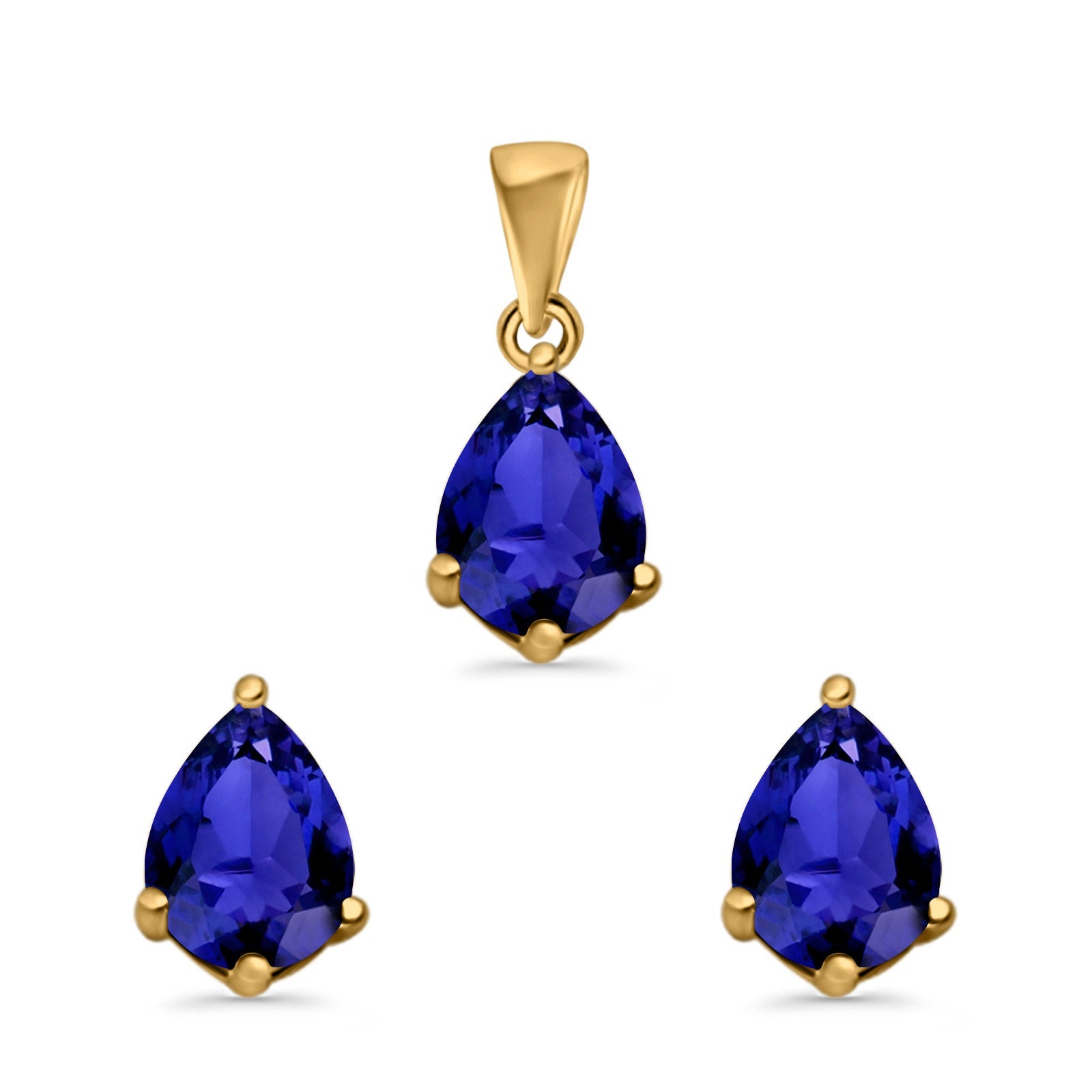 CZ & Blue Sapphire CZ Yellow Tone Silver