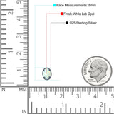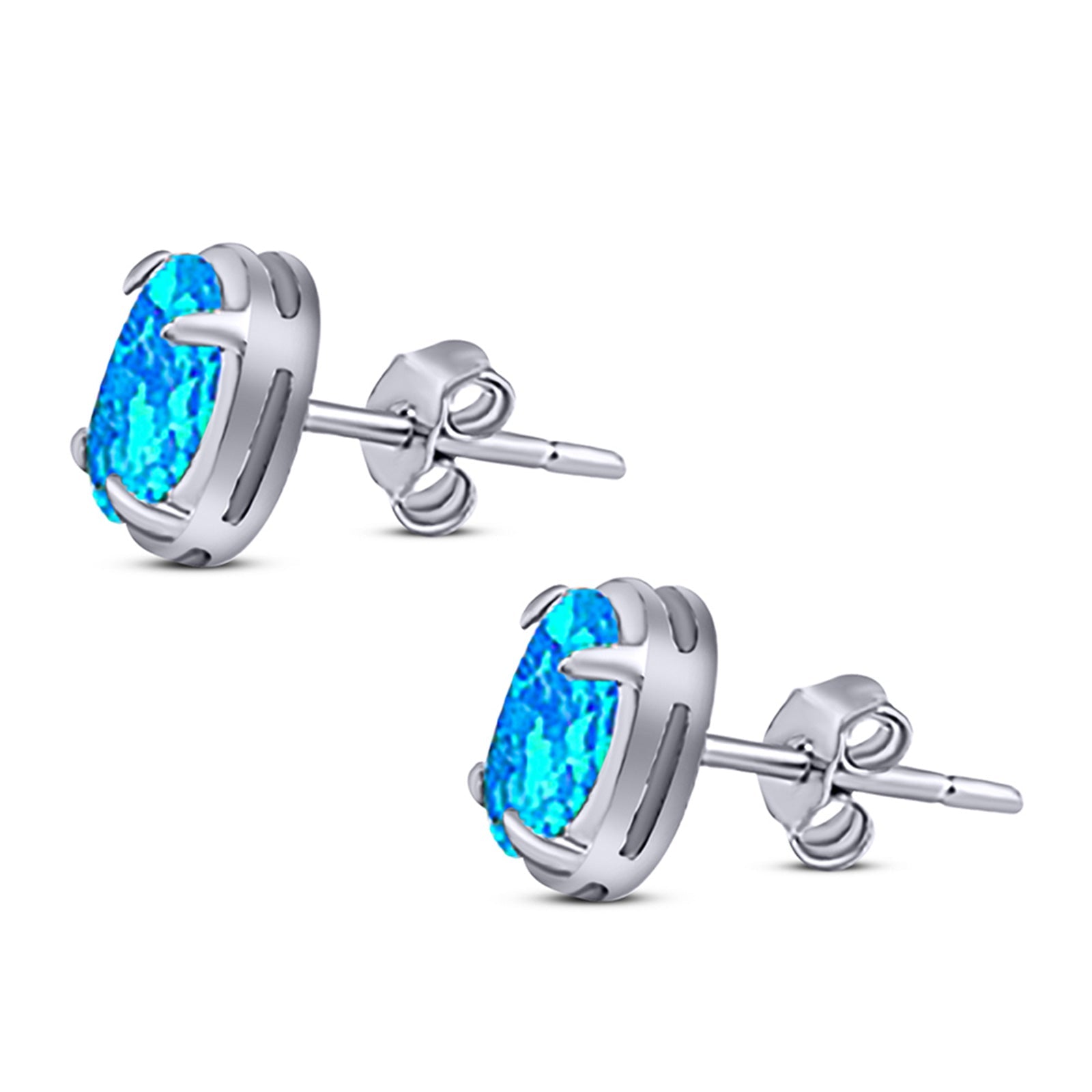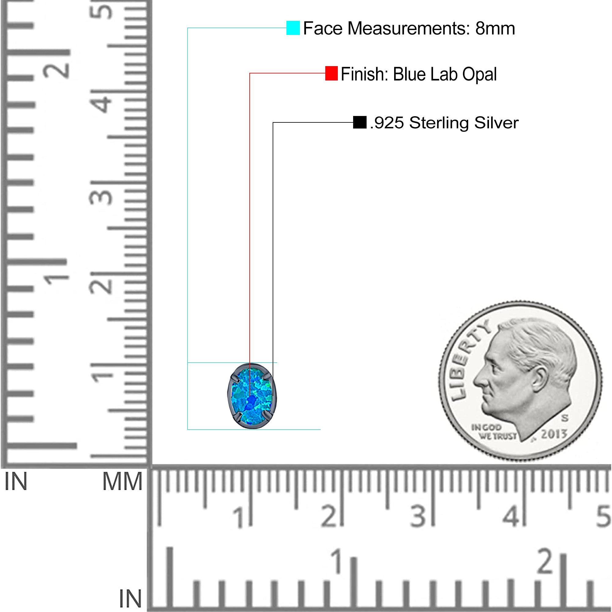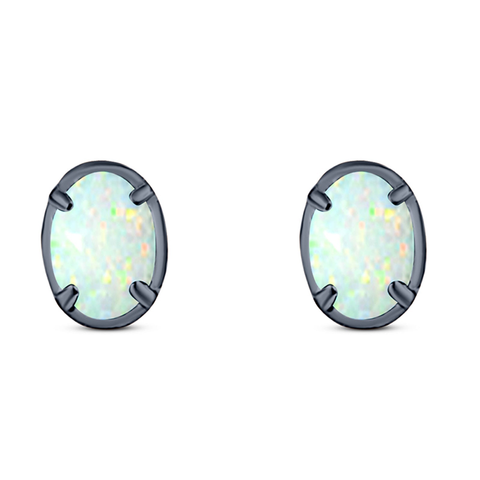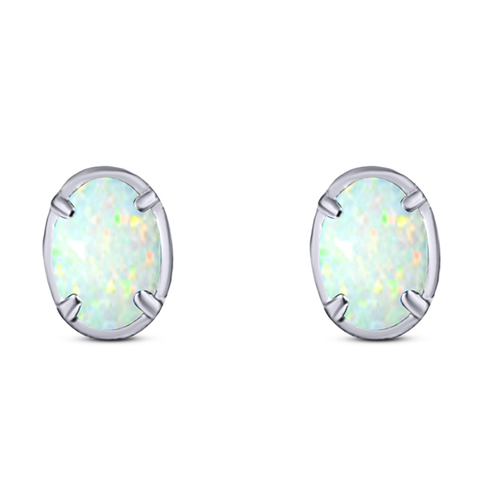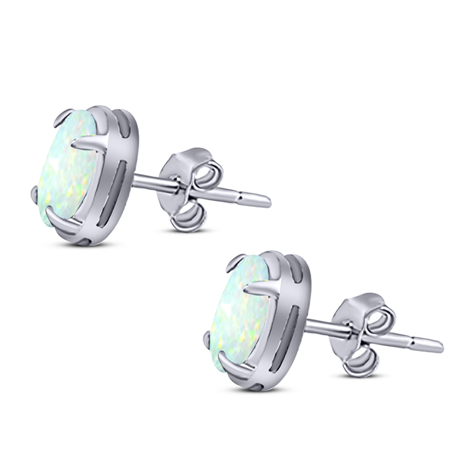 Art Deco Oval Stud Earring Created Opal Solid 925 Sterling Silver (8mm)