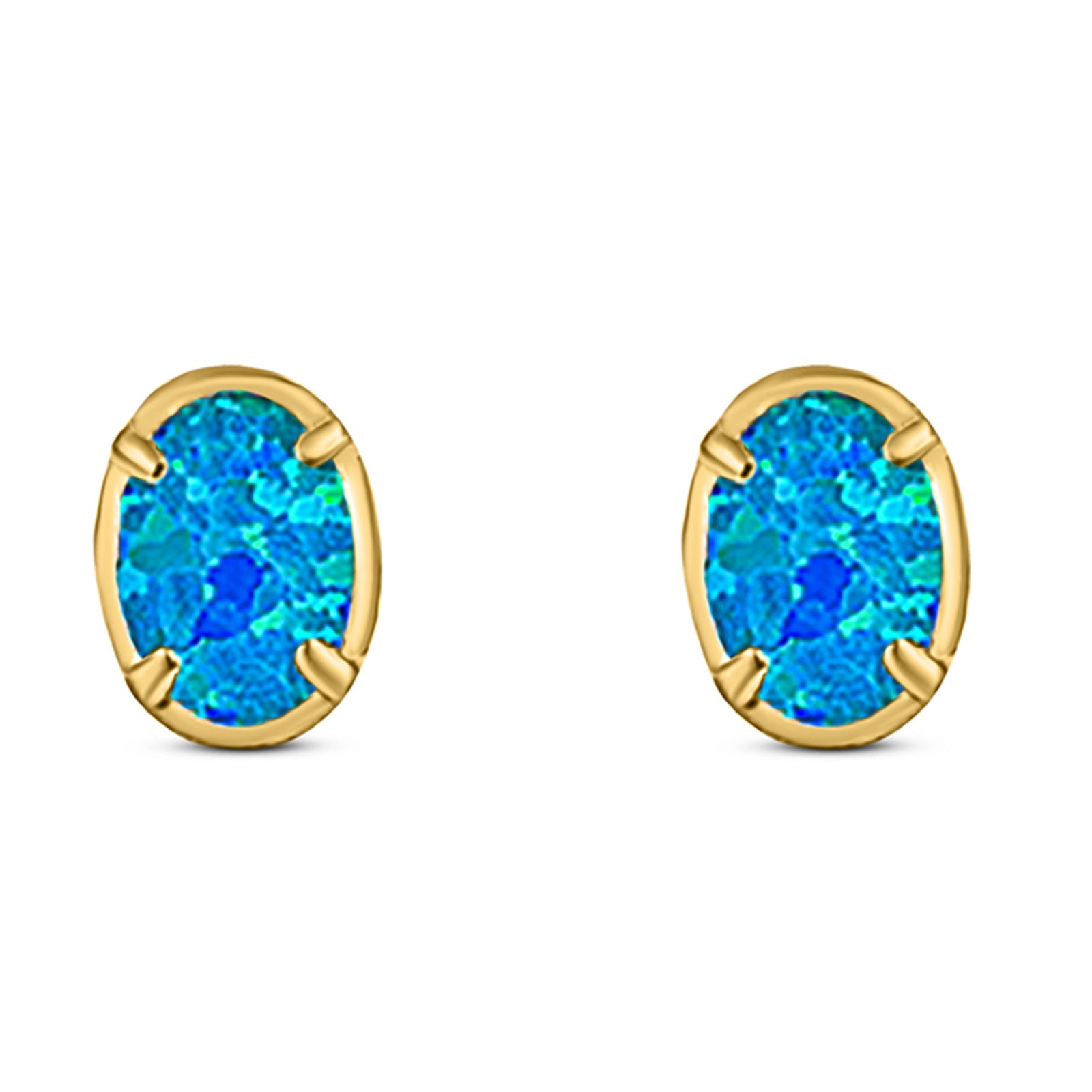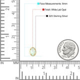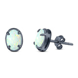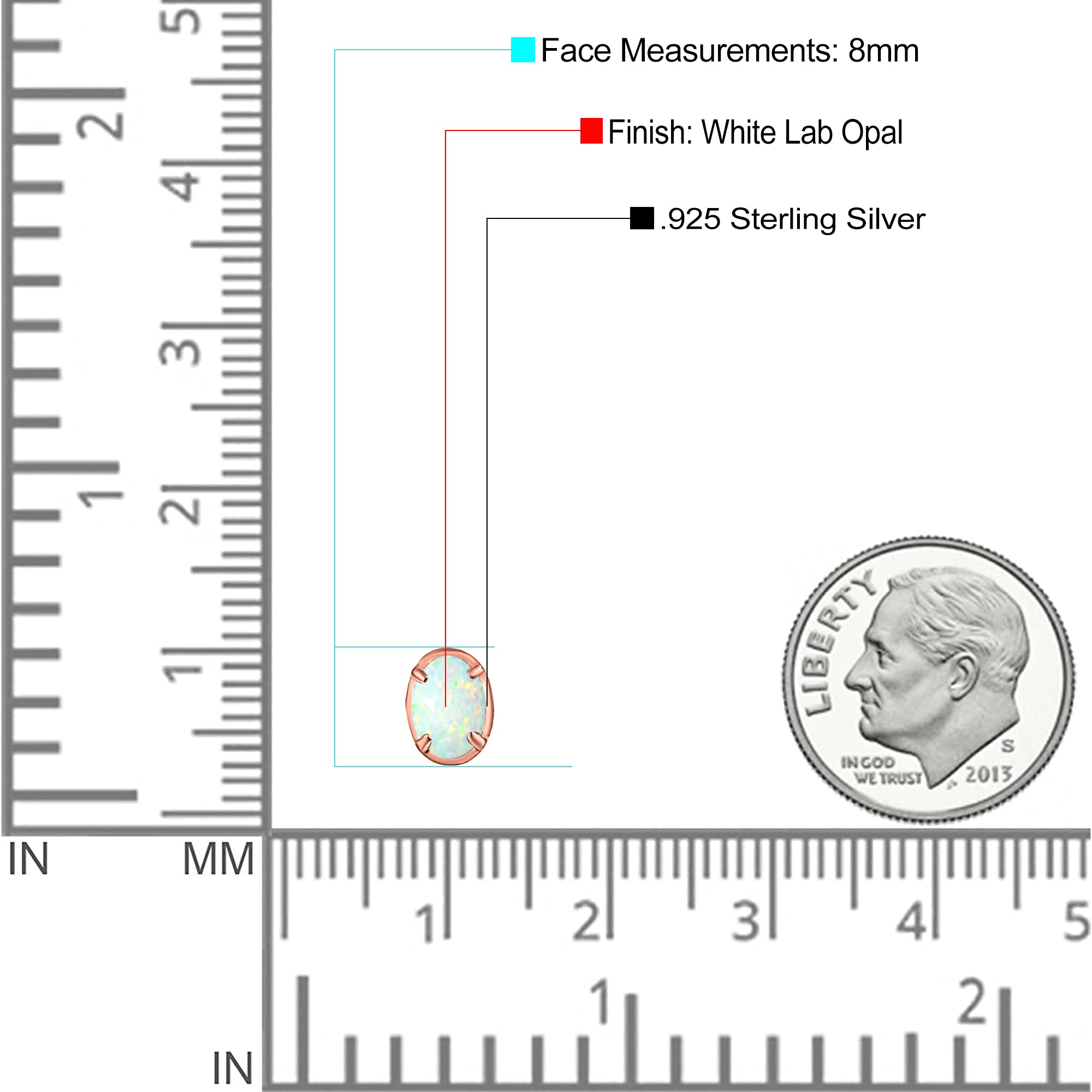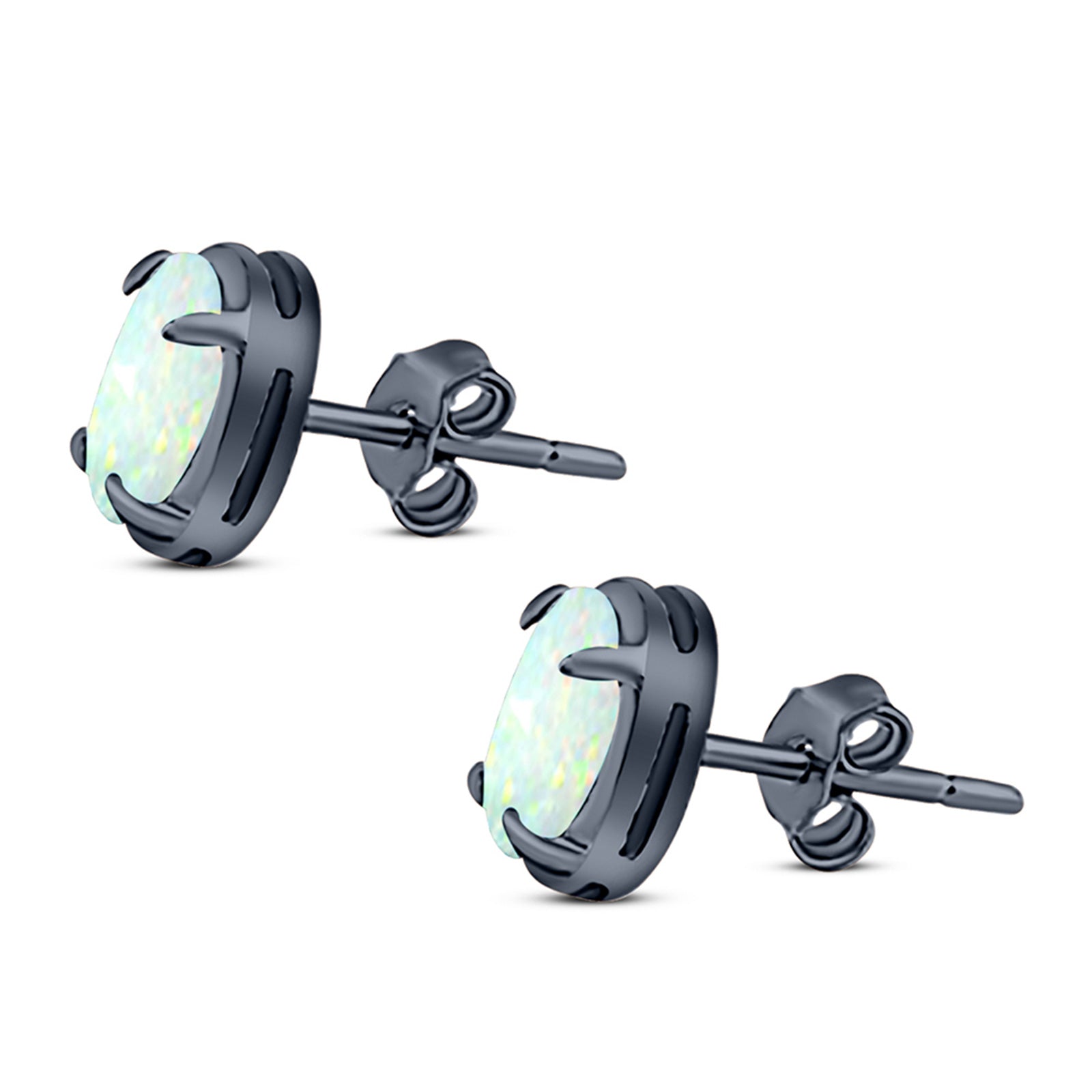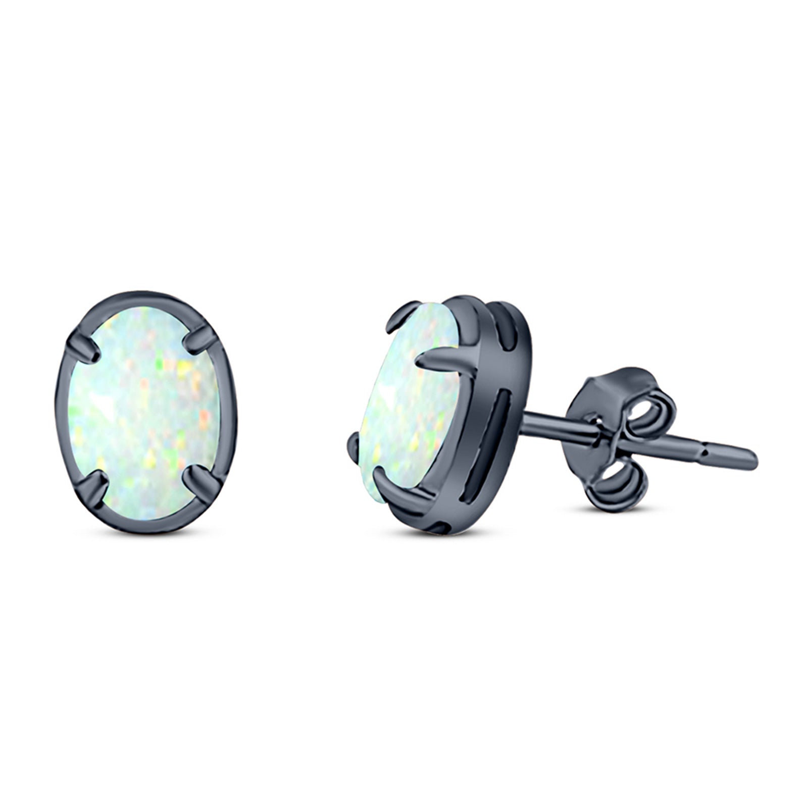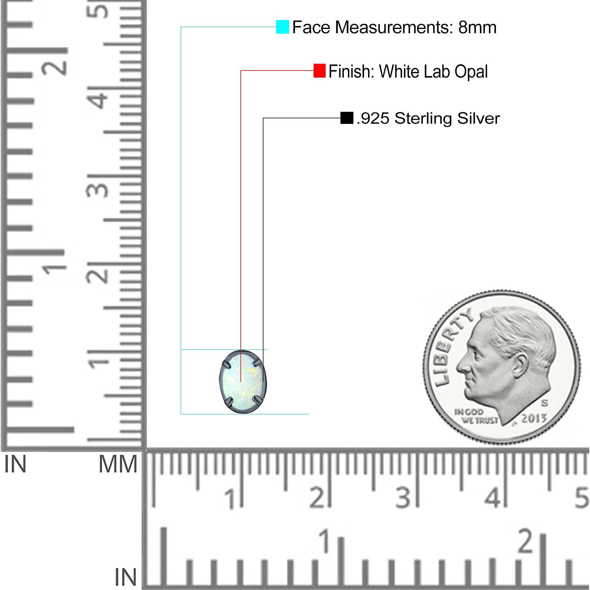 Art Deco Oval Stud Earring Created Opal Solid 925 Sterling Silver (8mm)