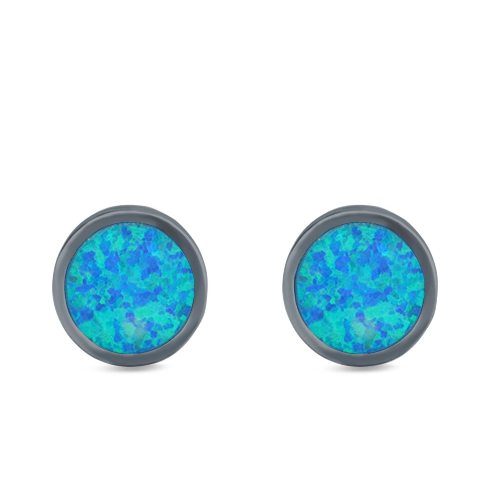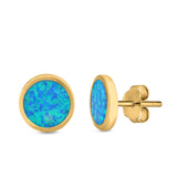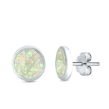 Bezel Stud Earring Round Lab Created Opal 925 Sterling Silver (7mm)