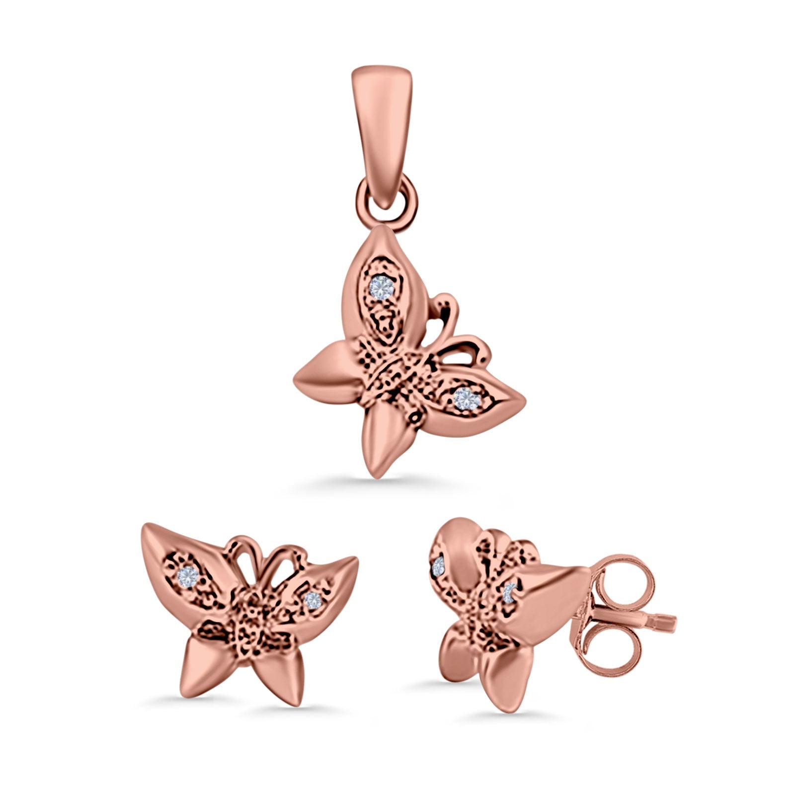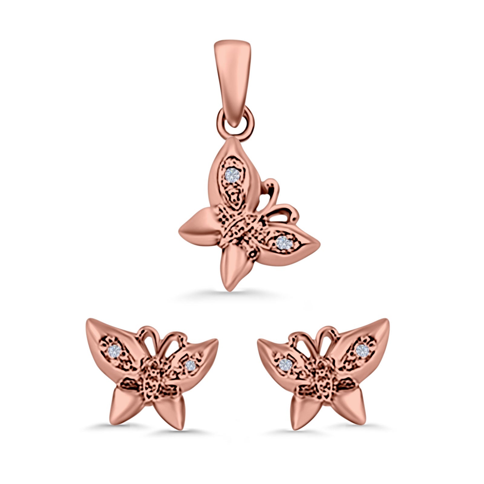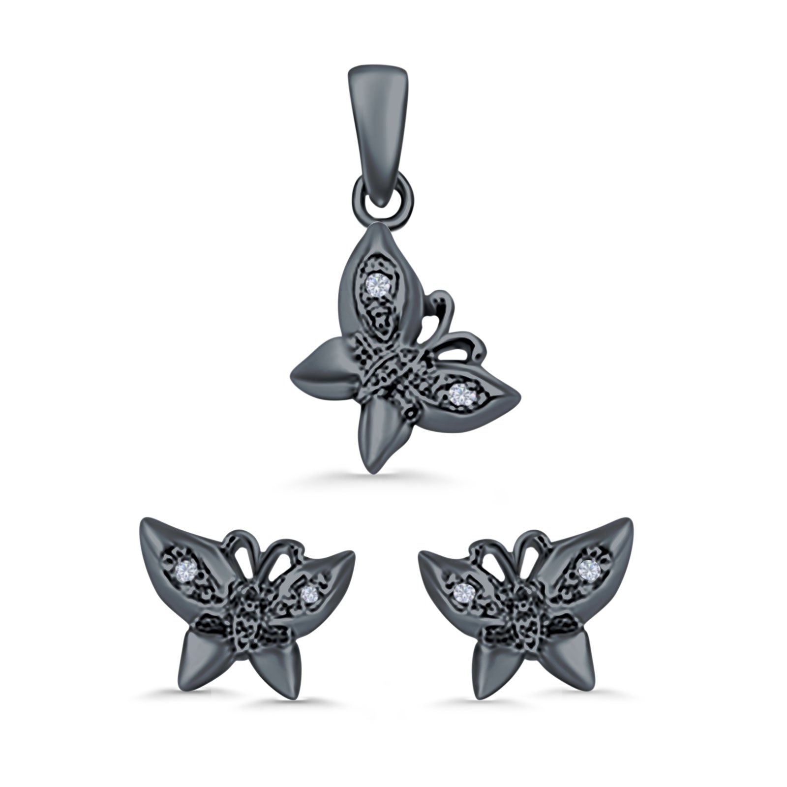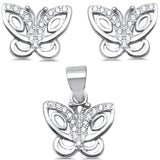Butterfly Jewelry Matching Set Pendant Earring Simulated Cubic Zirconia 925 Sterling Silver
