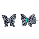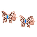 CZ & Blue Sapphire CZ Rose Tone Silver