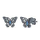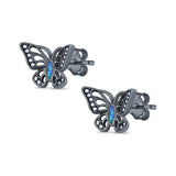 CZ & Blue Sapphire CZ Black Tone Silver