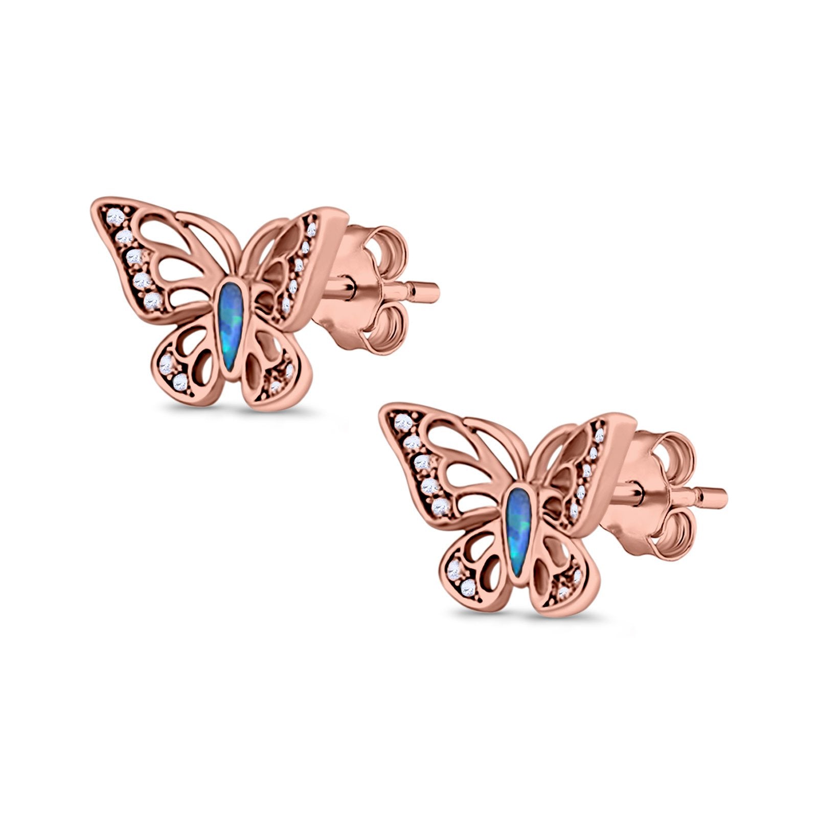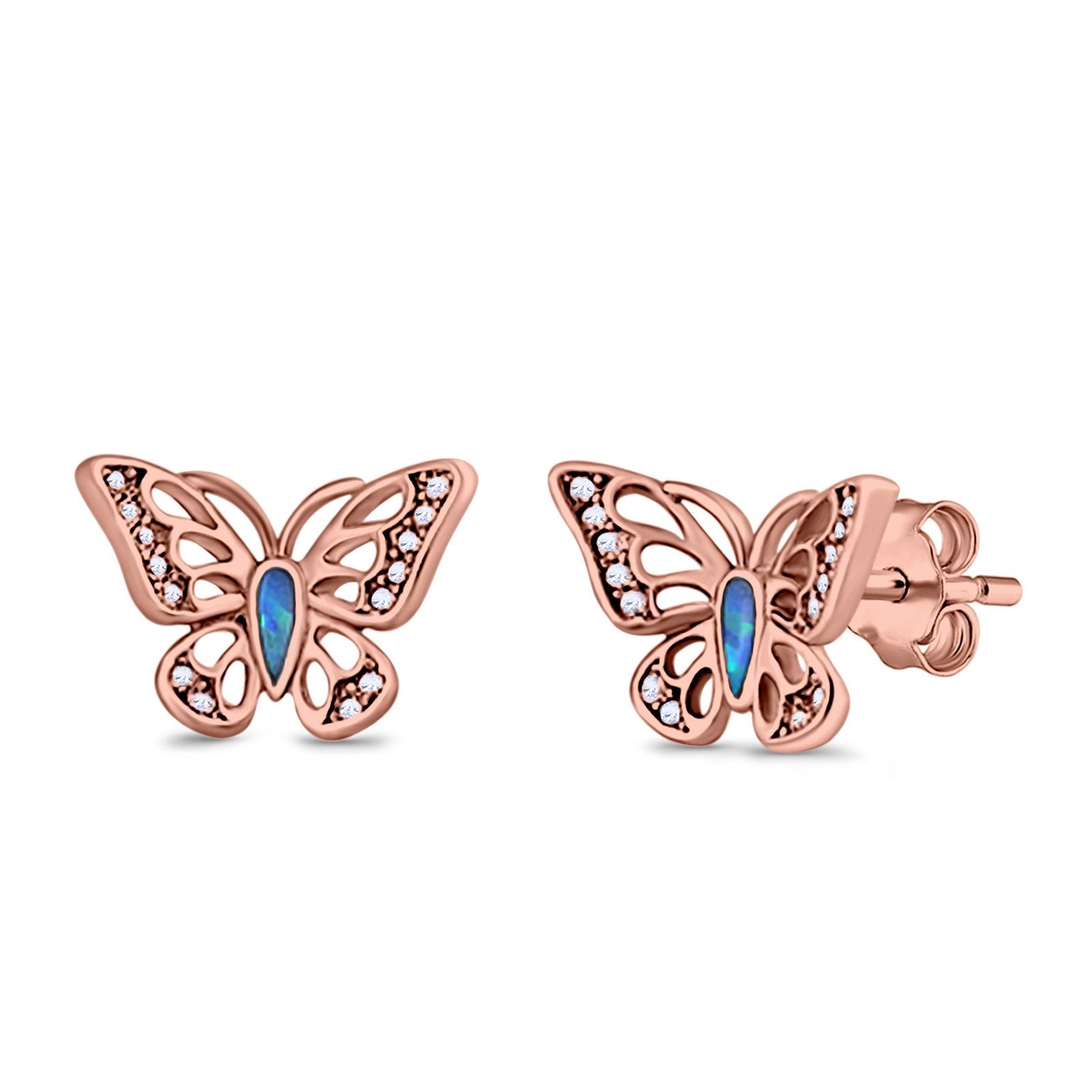 CZ & Blue Sapphire CZ Rose Tone Silver