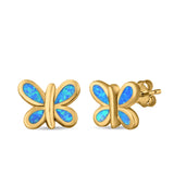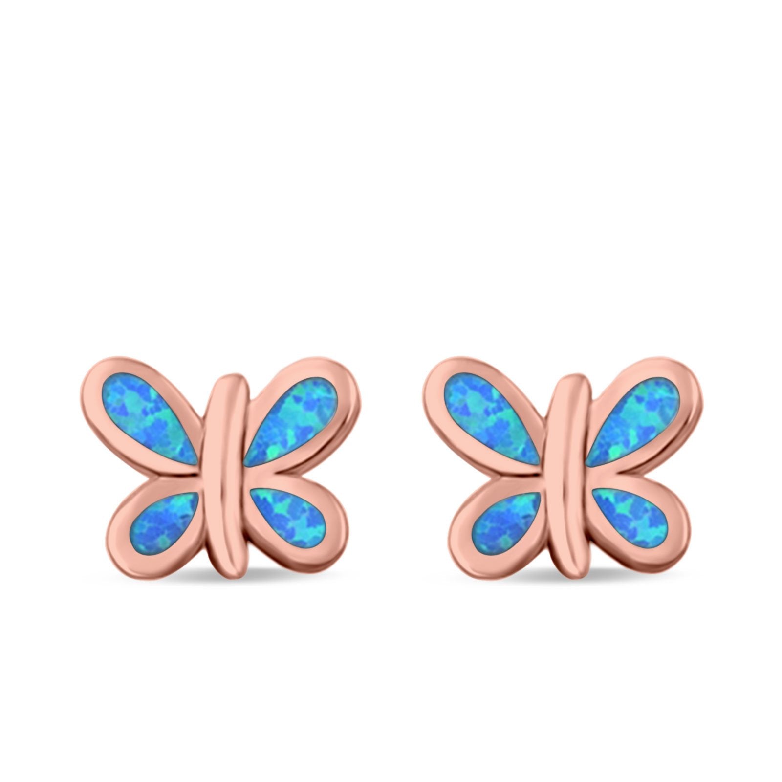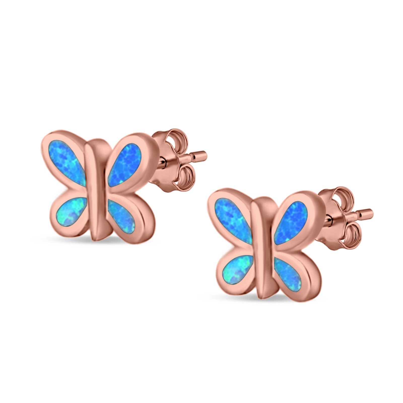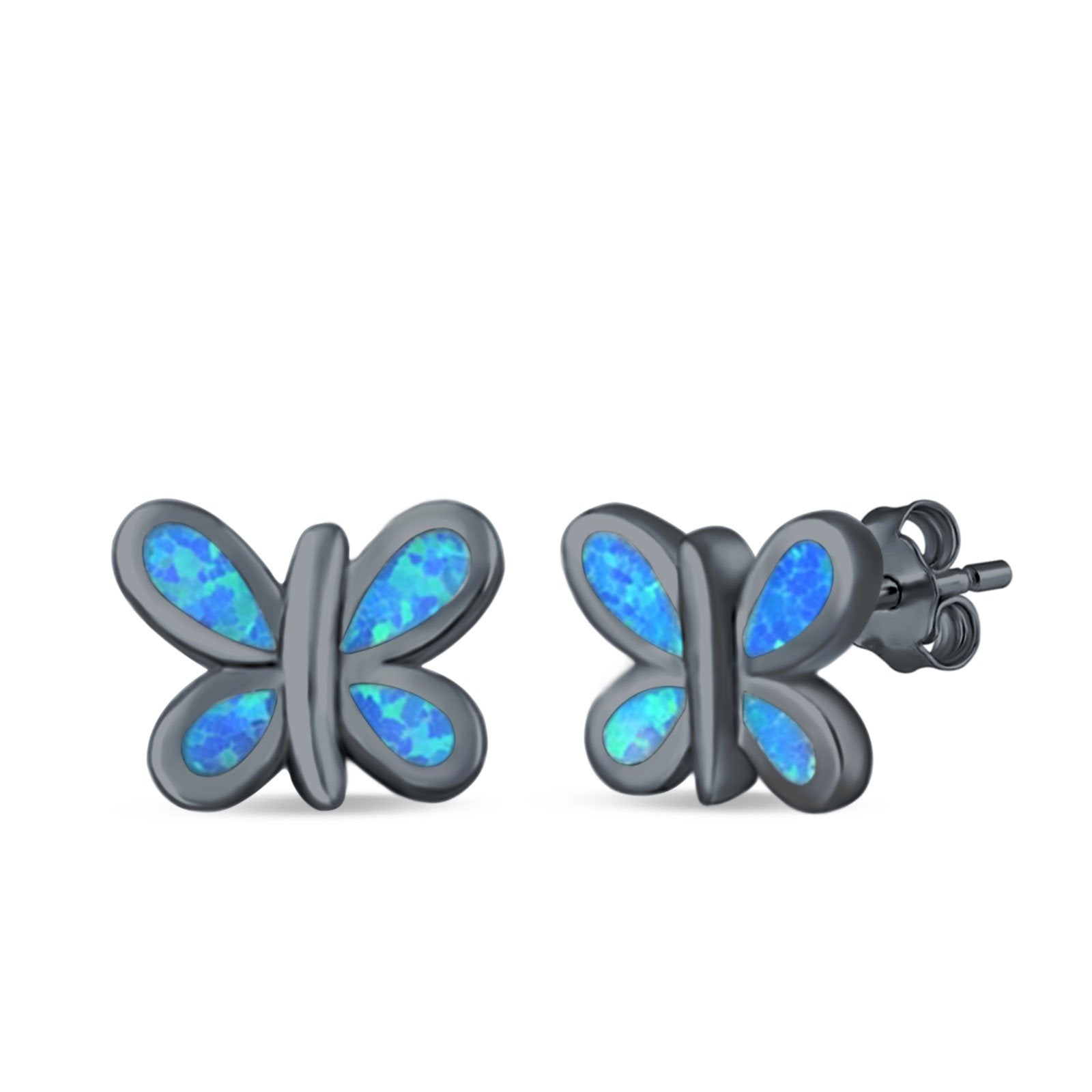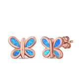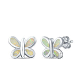 Butterfly Stud Earrings Lab Created Opal 925 Sterling Silver (8mm)