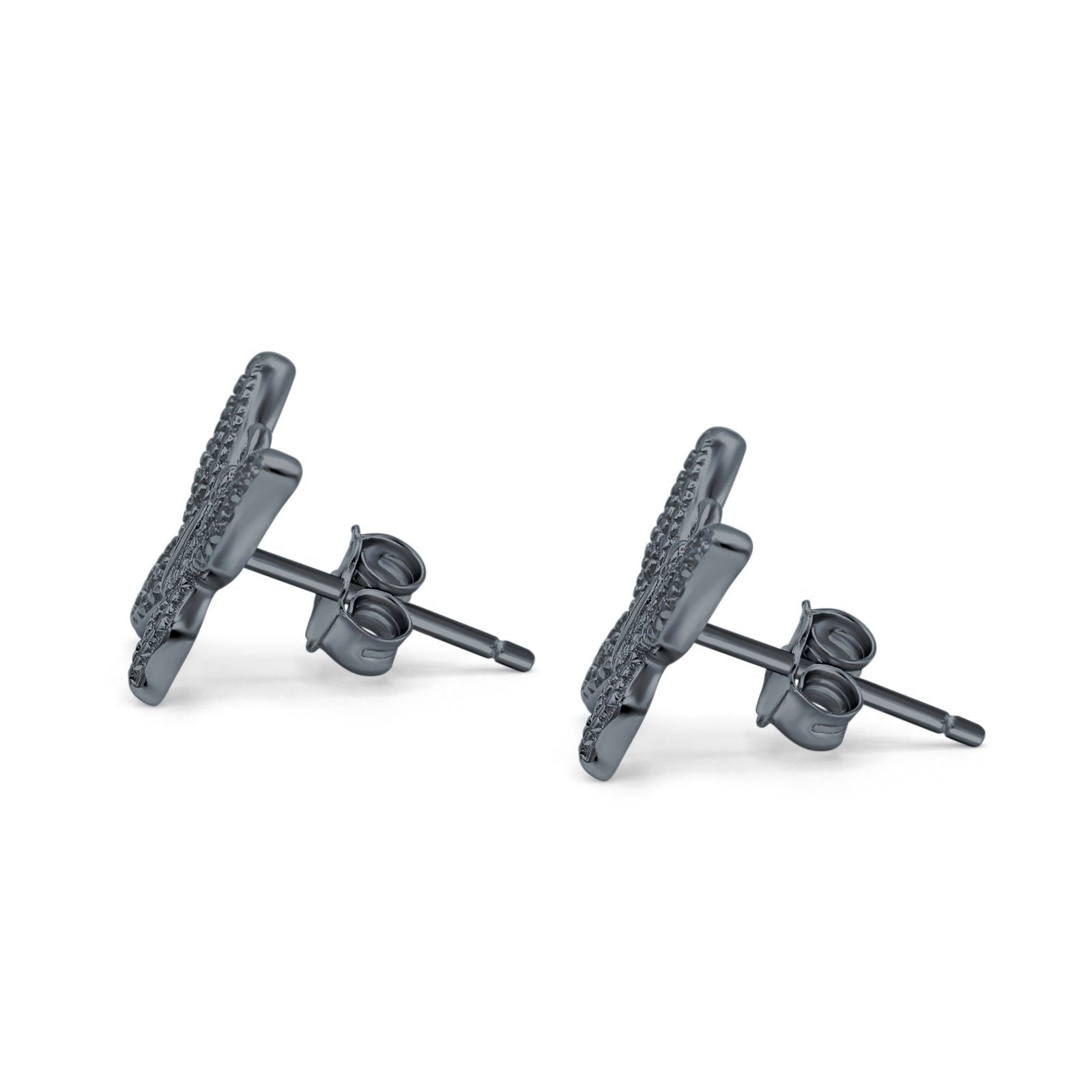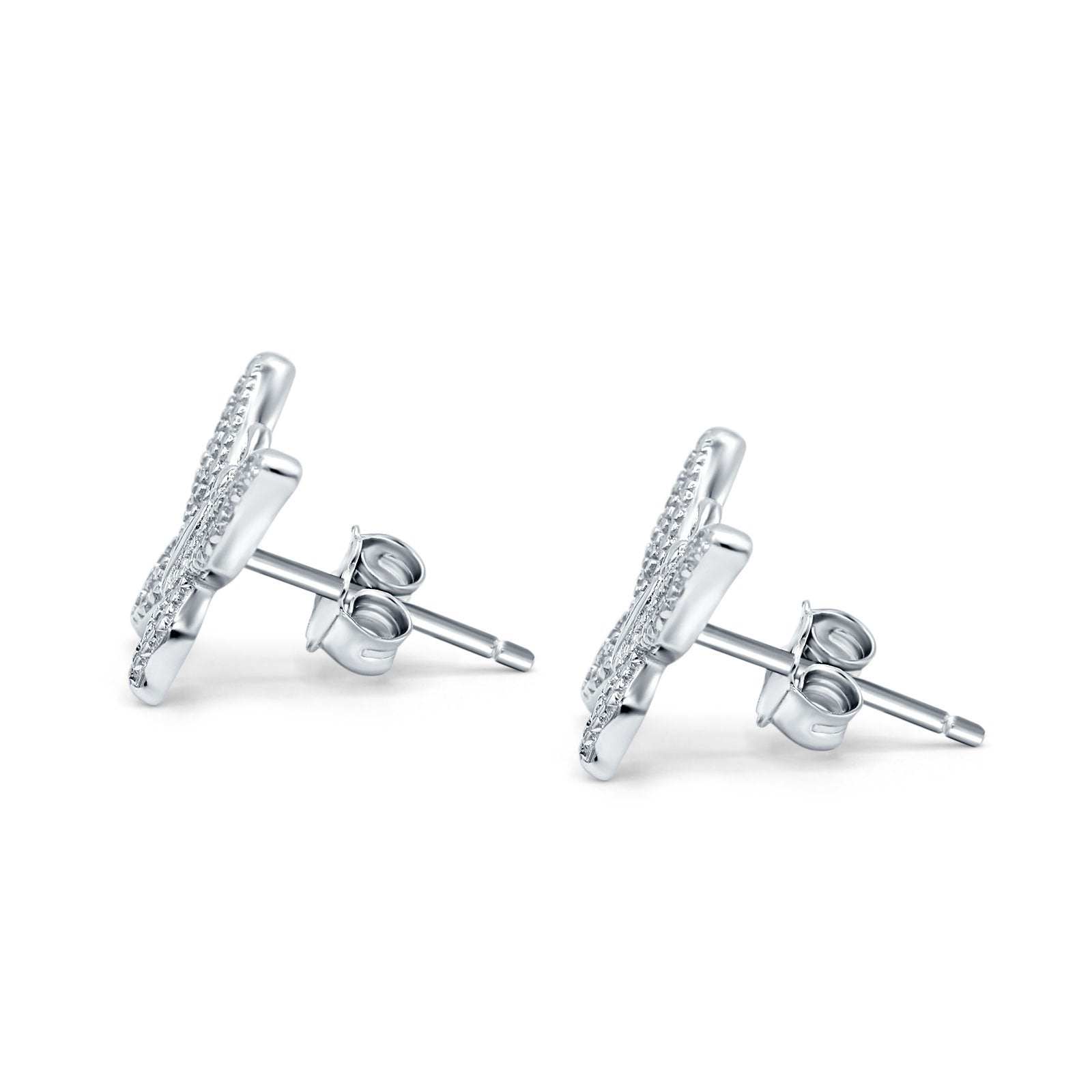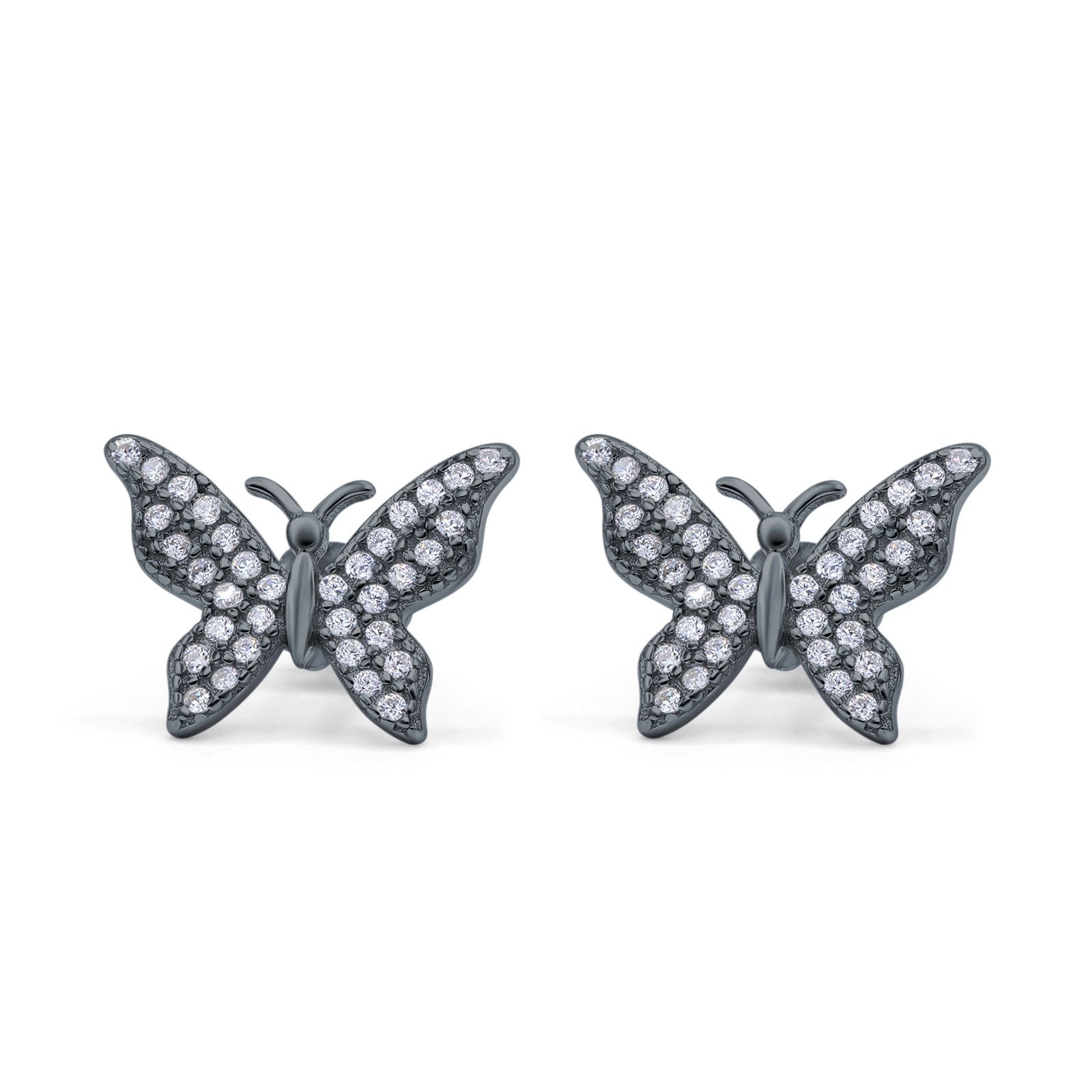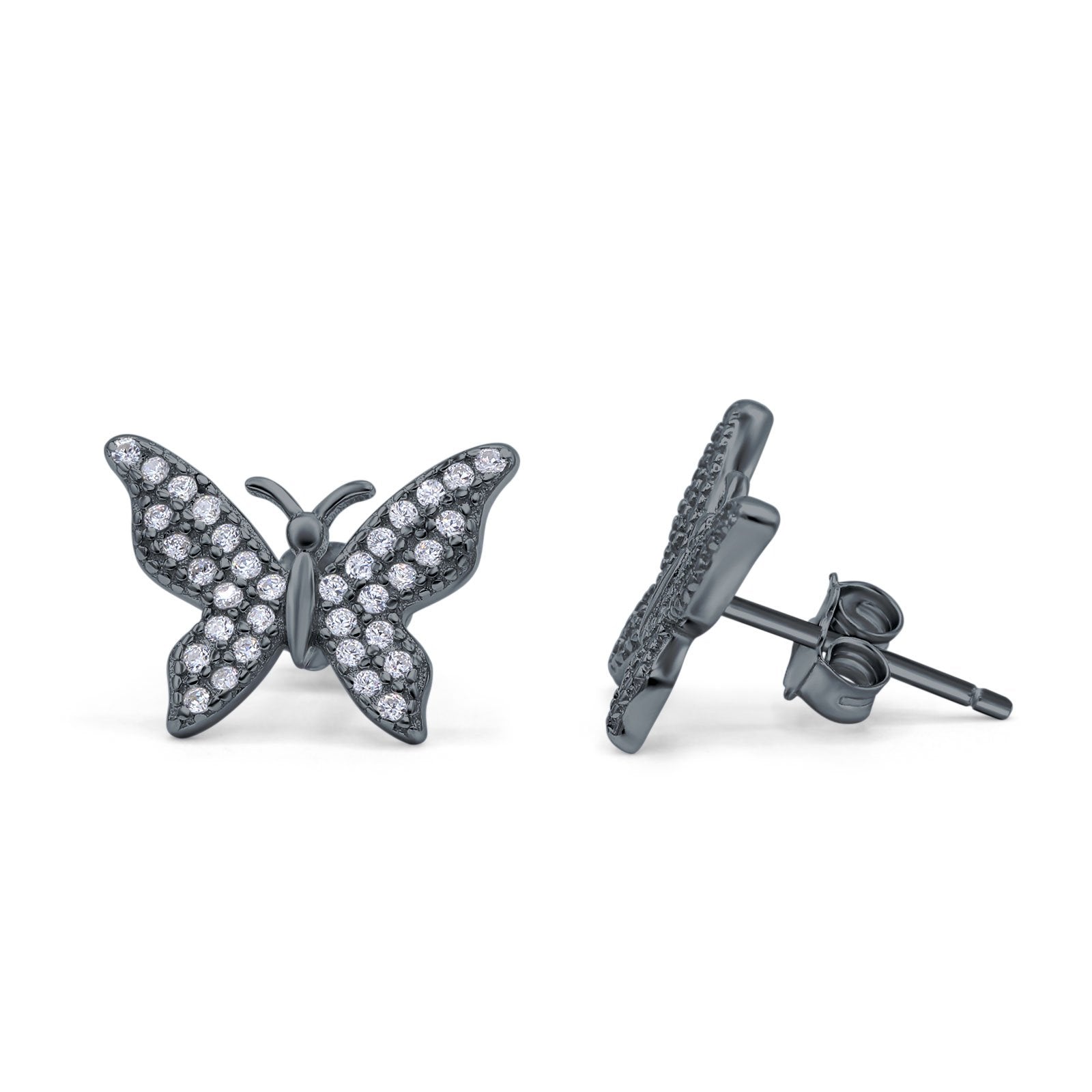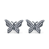 Butterfly Stud Earrings Simulated Cubic Zirconia 925 Sterling Silver (14mm)