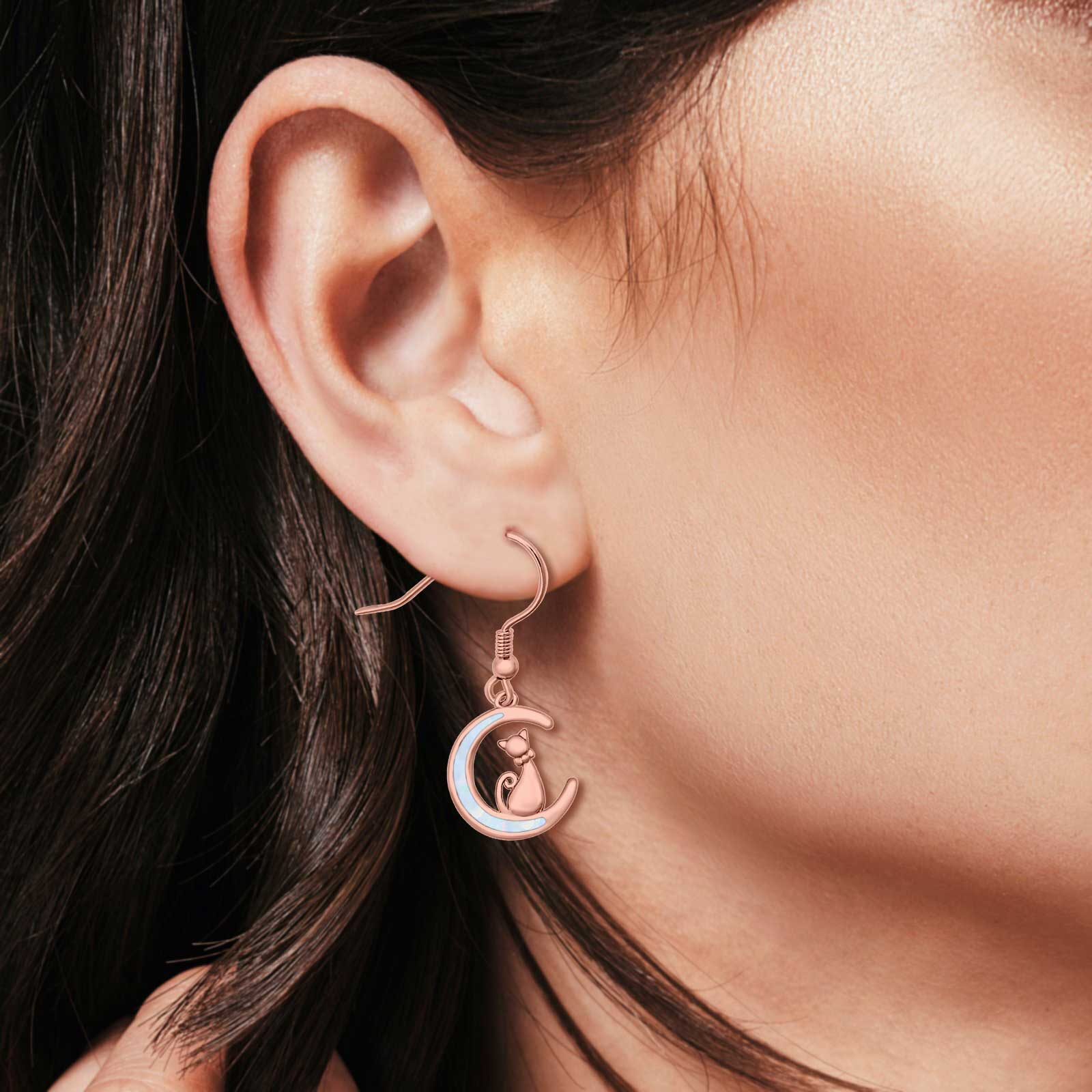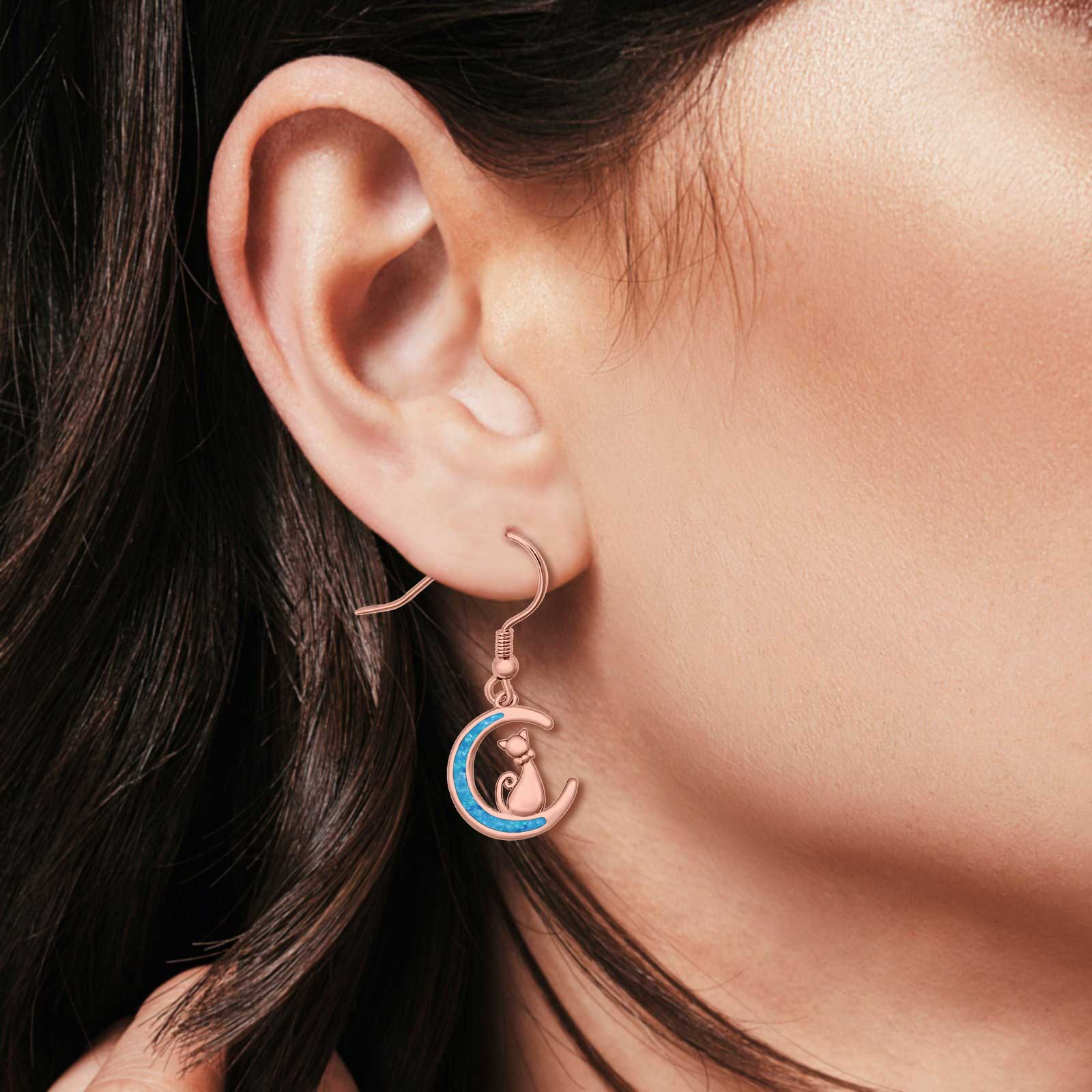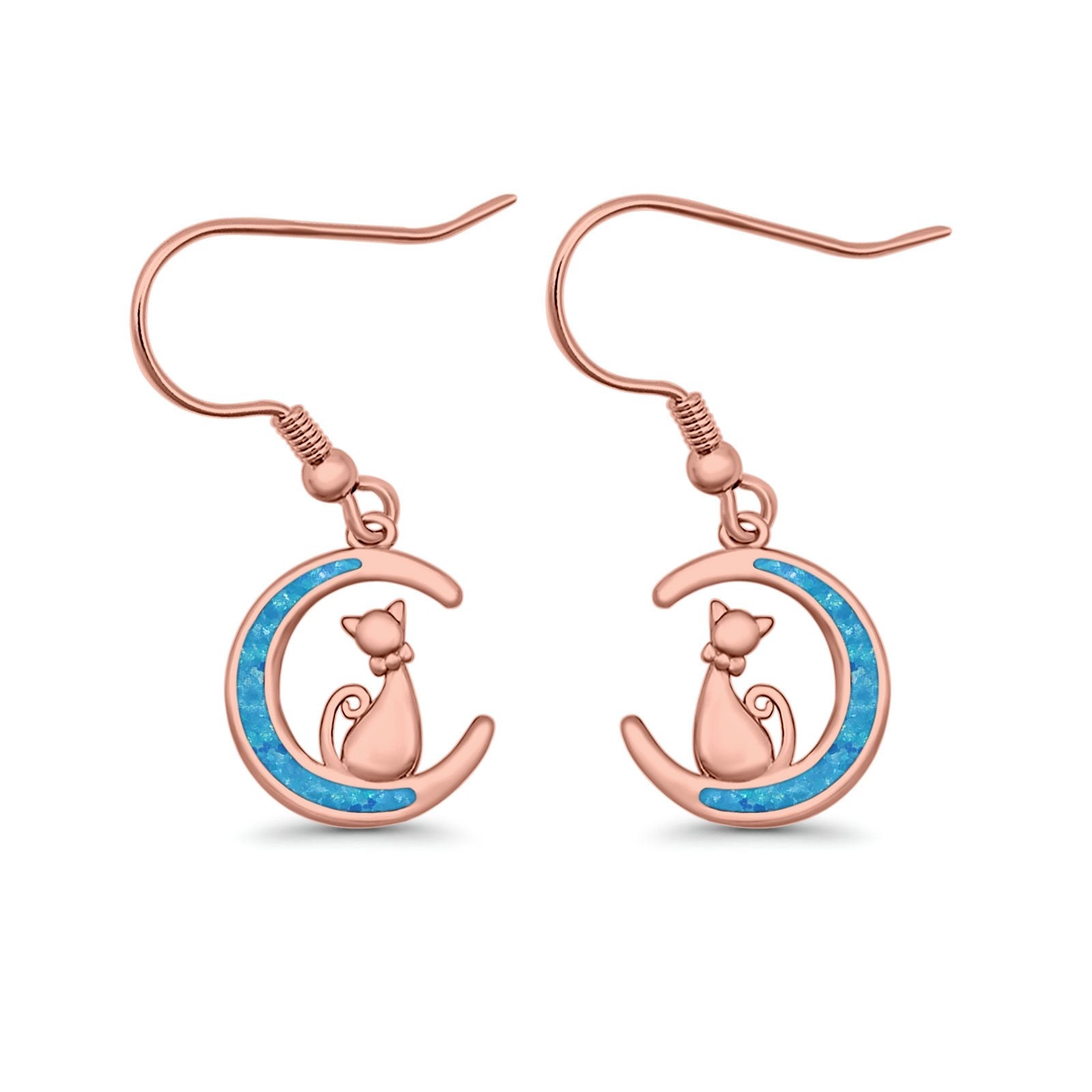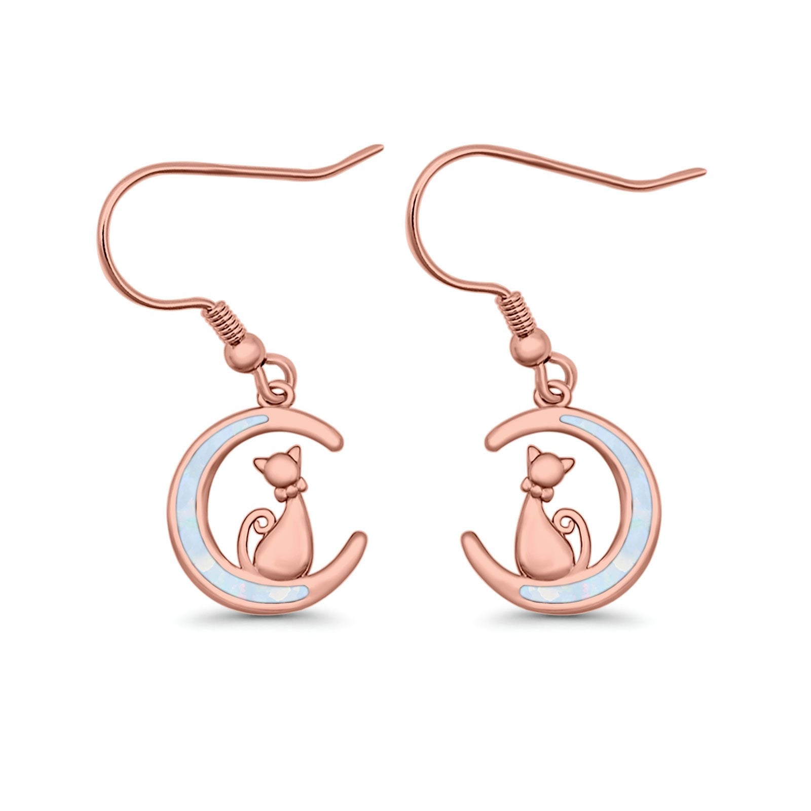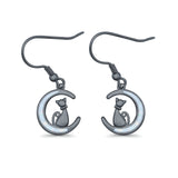 Cat on Moon Drop Dangle Earrings Lab Created Opal 925 Sterling Silver (13mm)