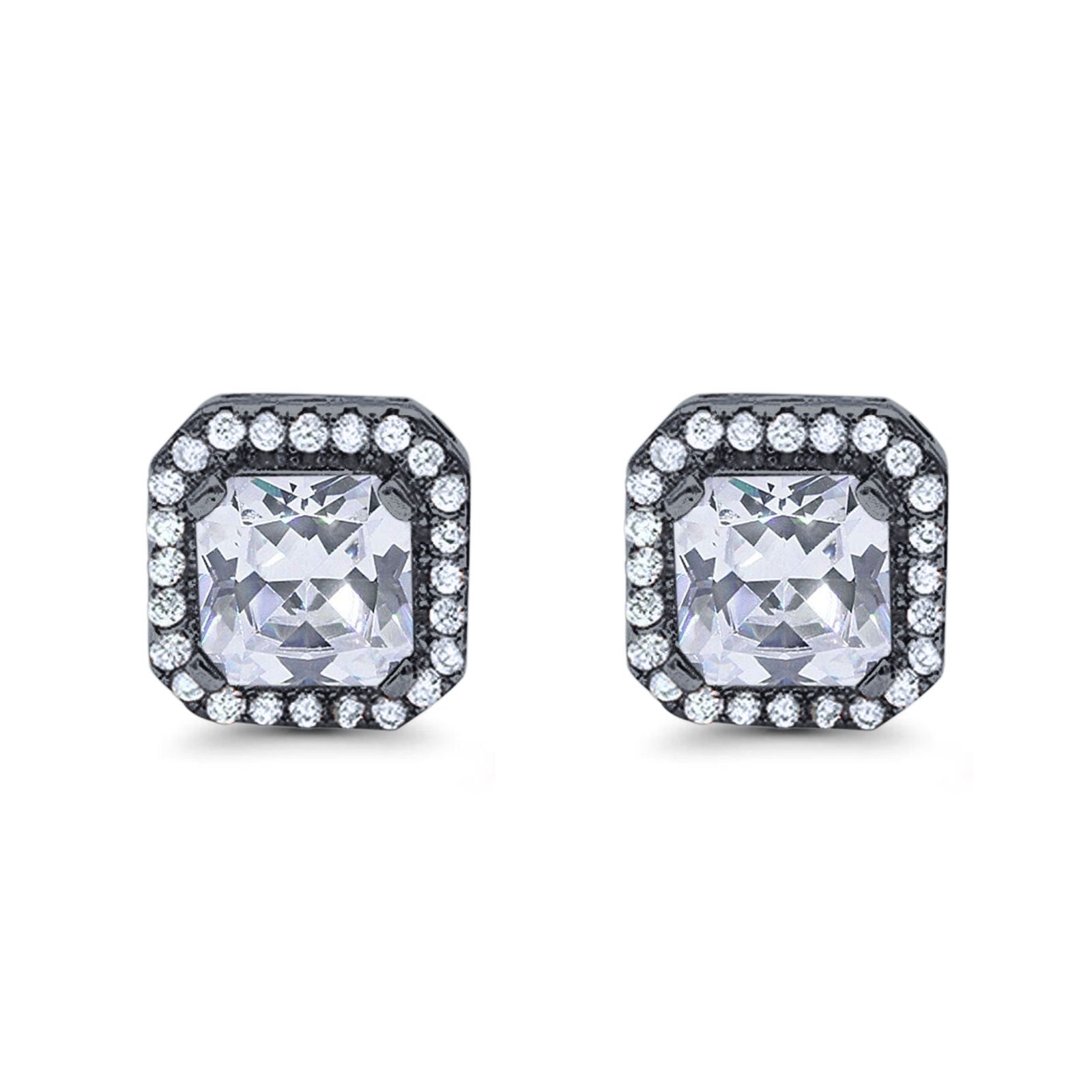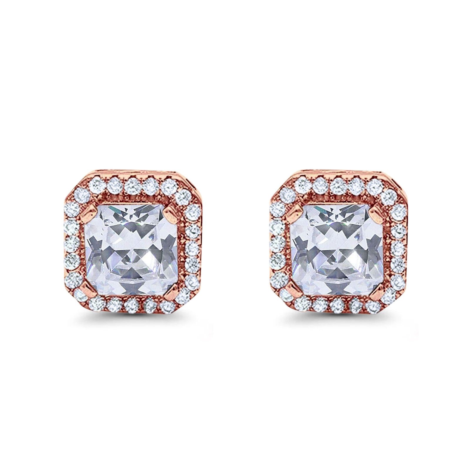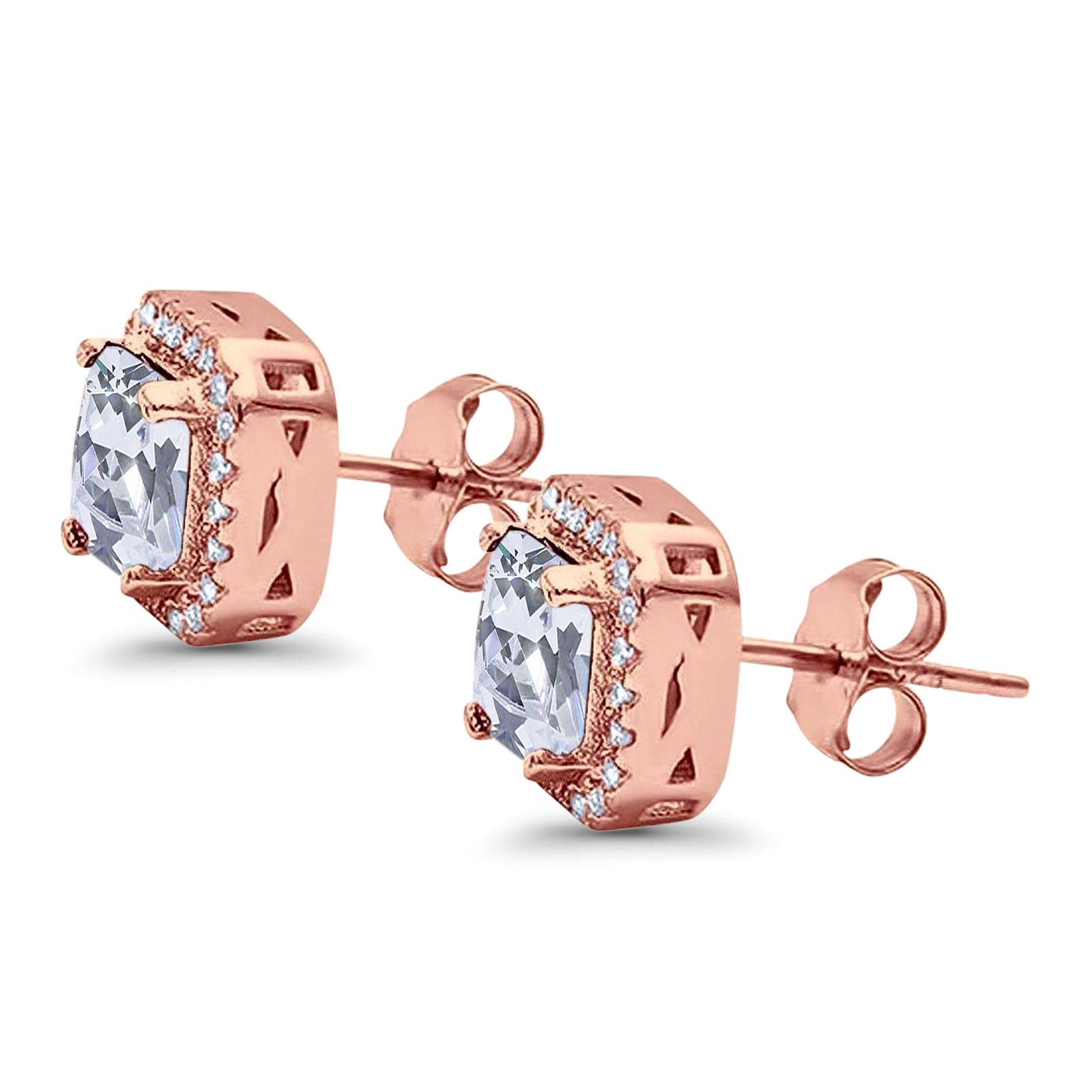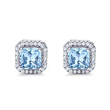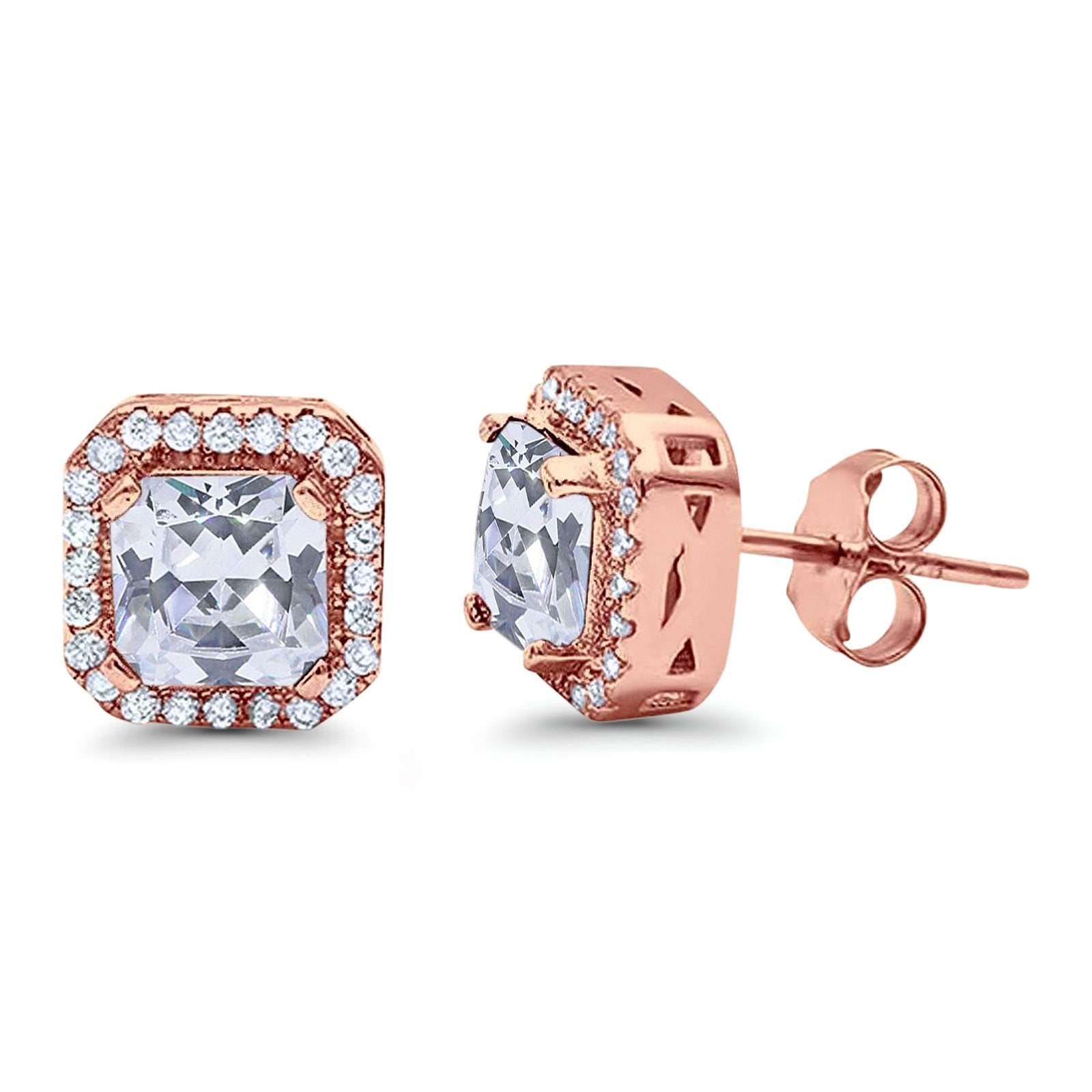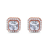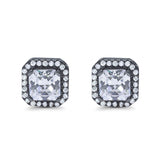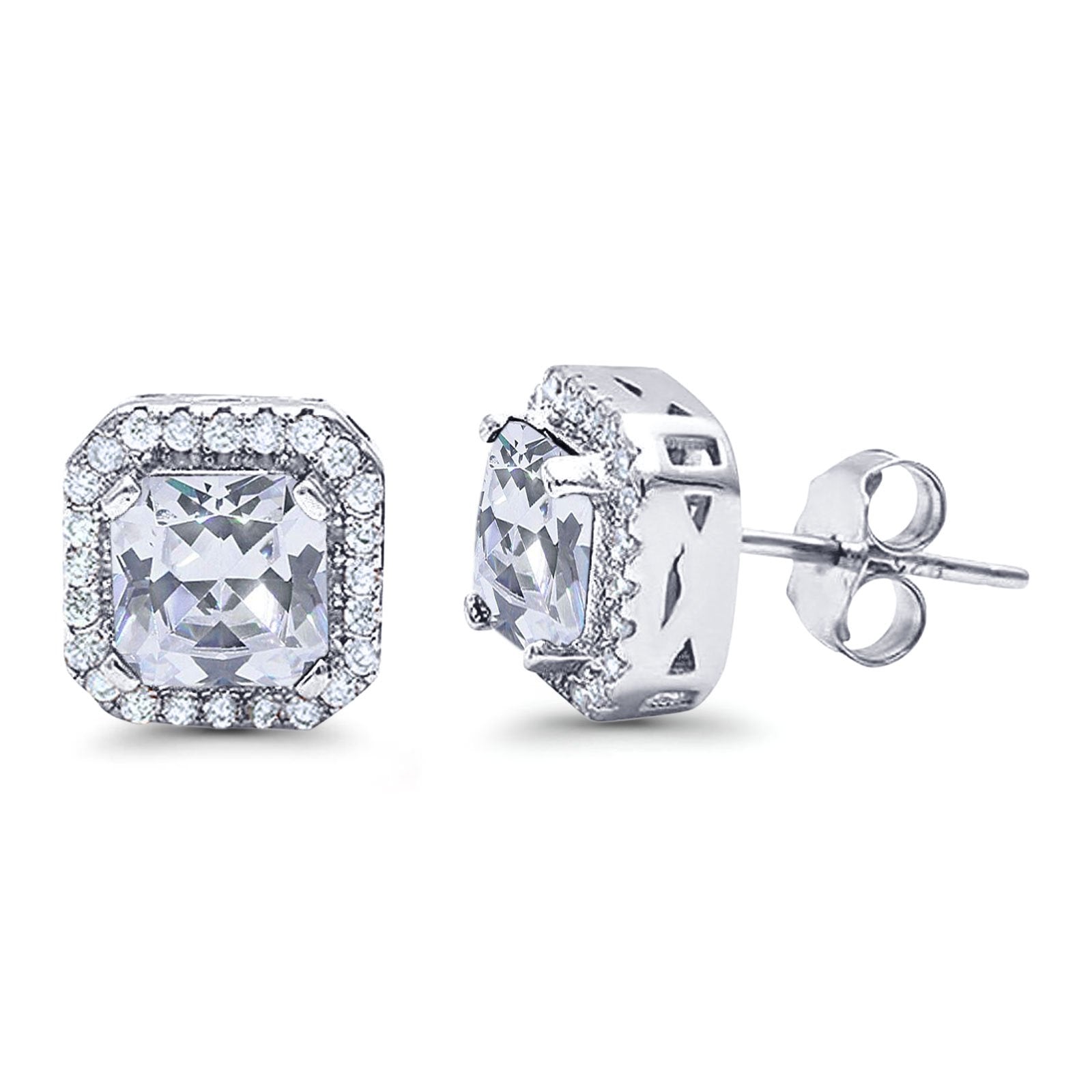 Stud Earrings Wedding Bridal Princess Simulated Cubic Zirconia Solid 925 Sterling Silver