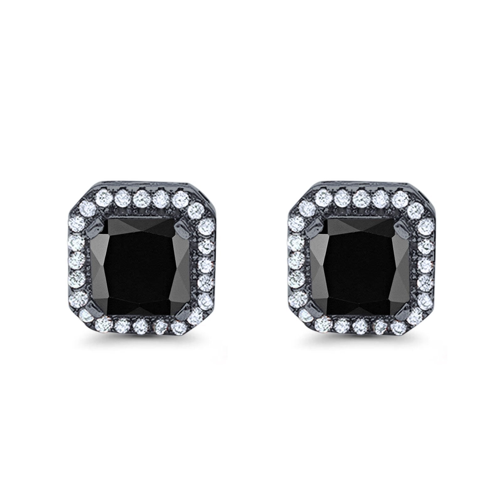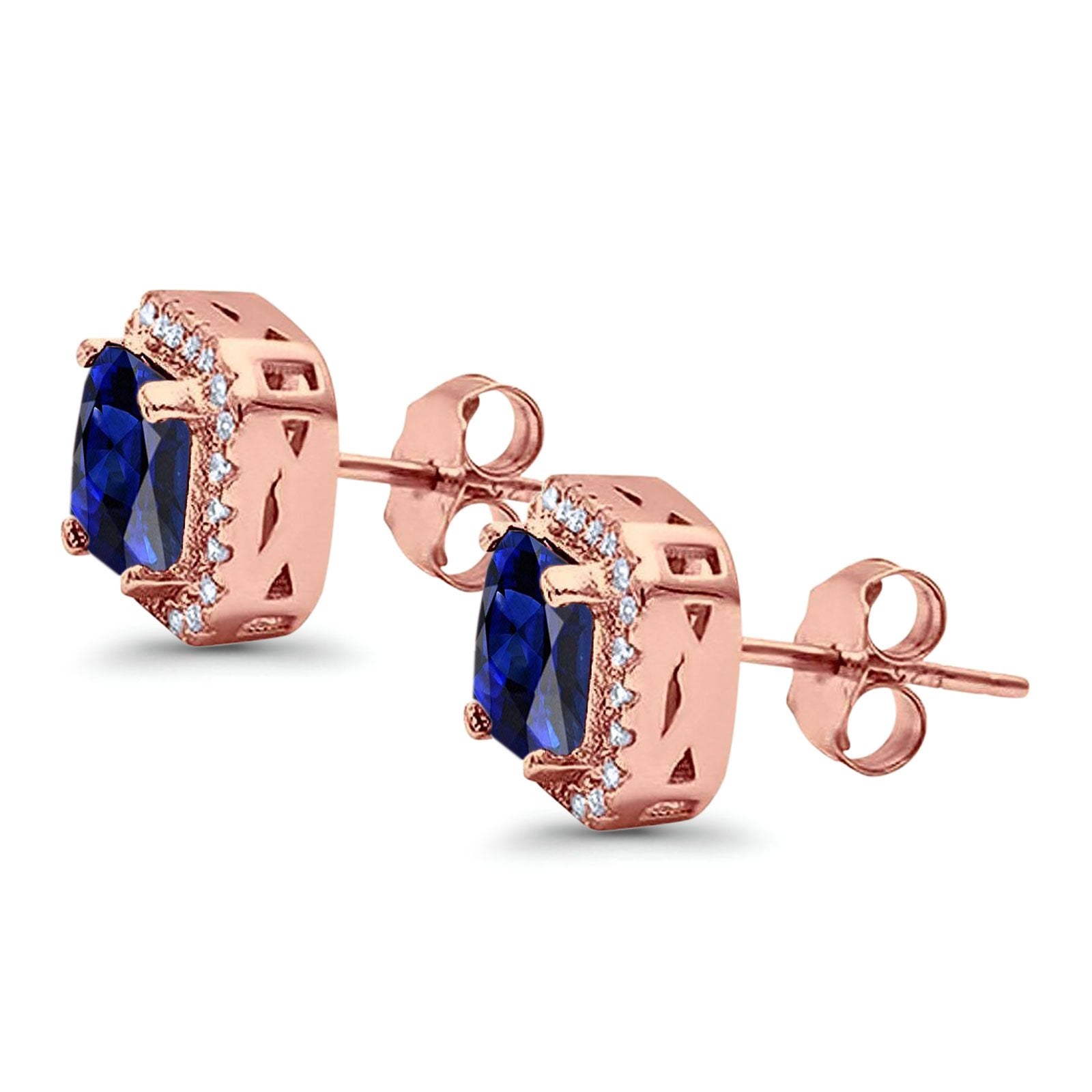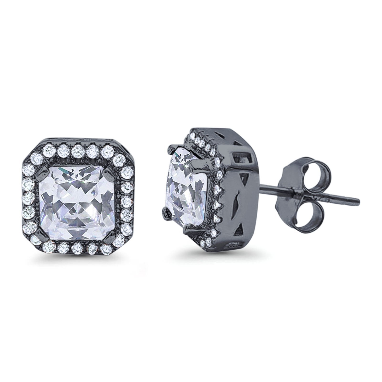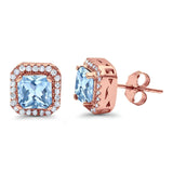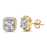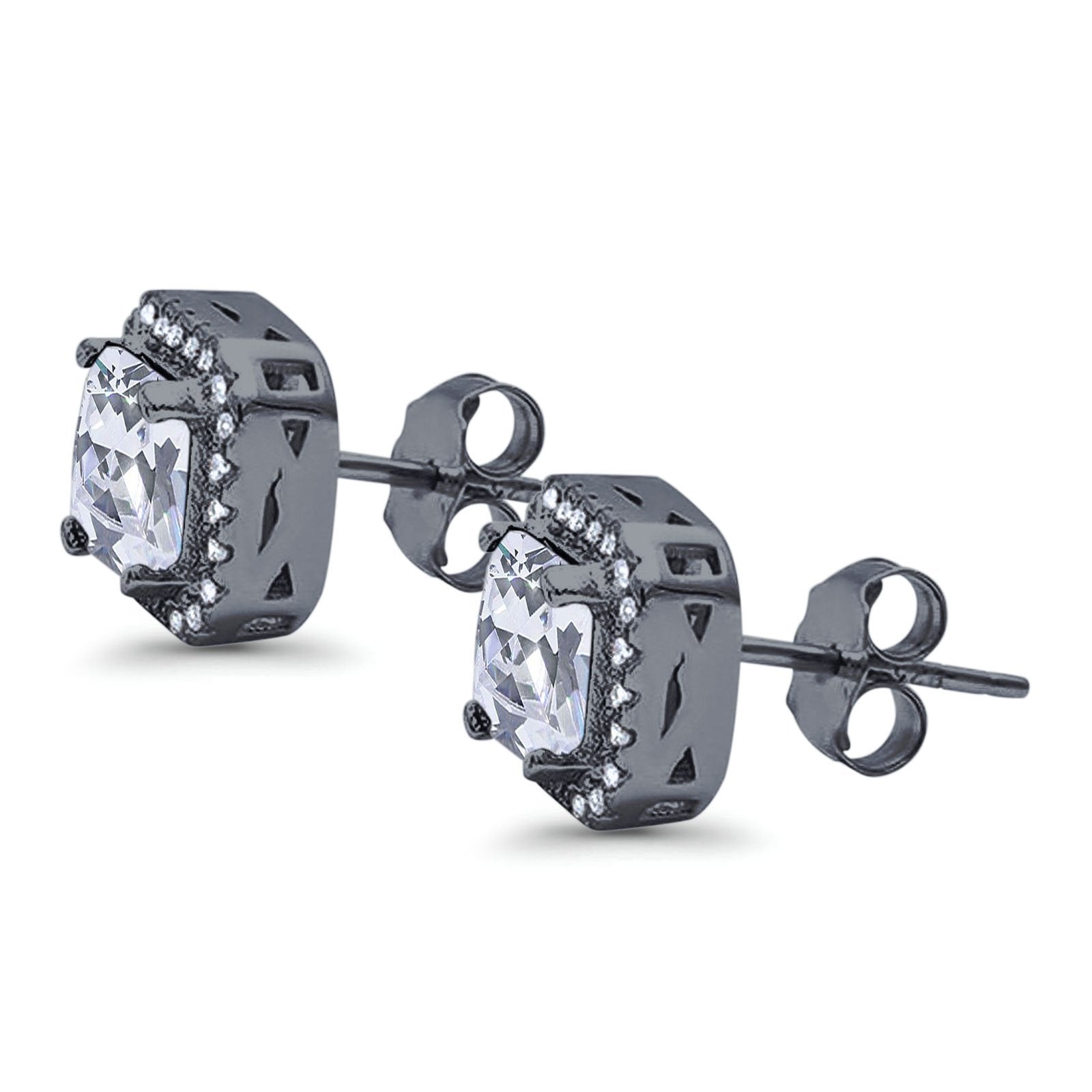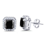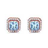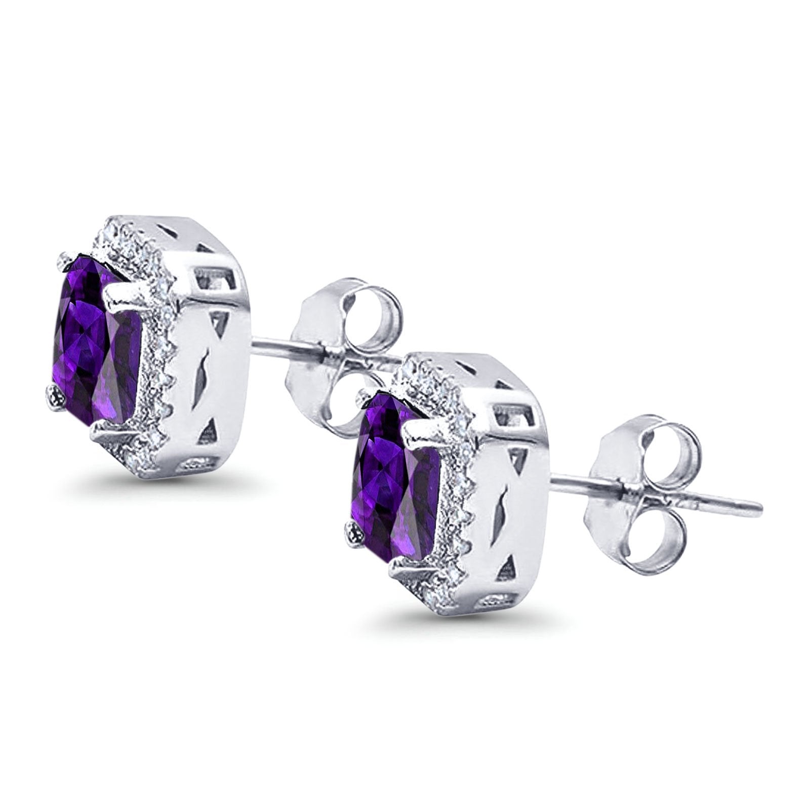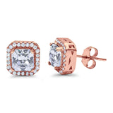 Stud Earrings Wedding Bridal Princess Simulated Cubic Zirconia Solid 925 Sterling Silver