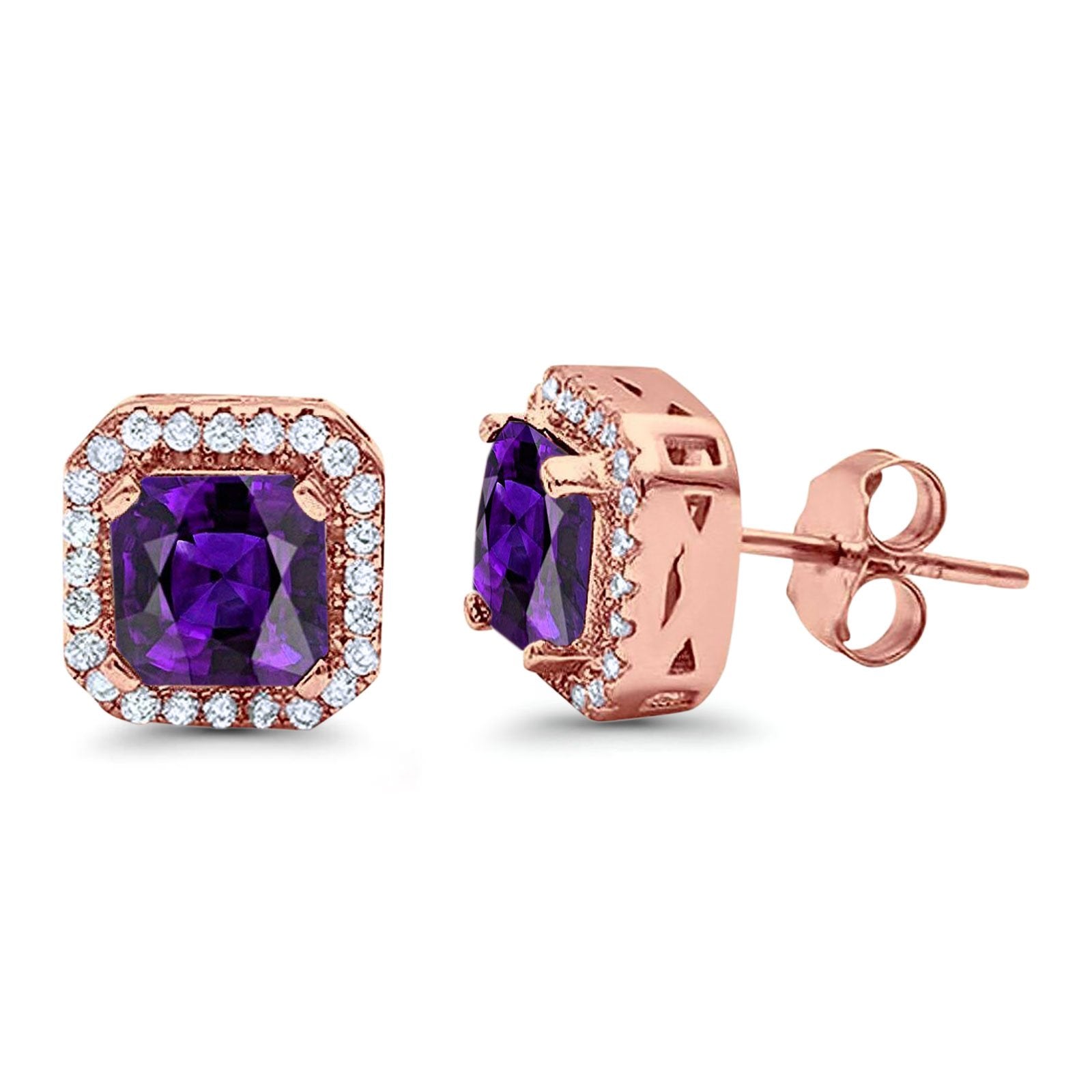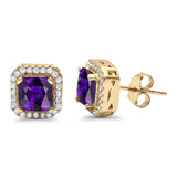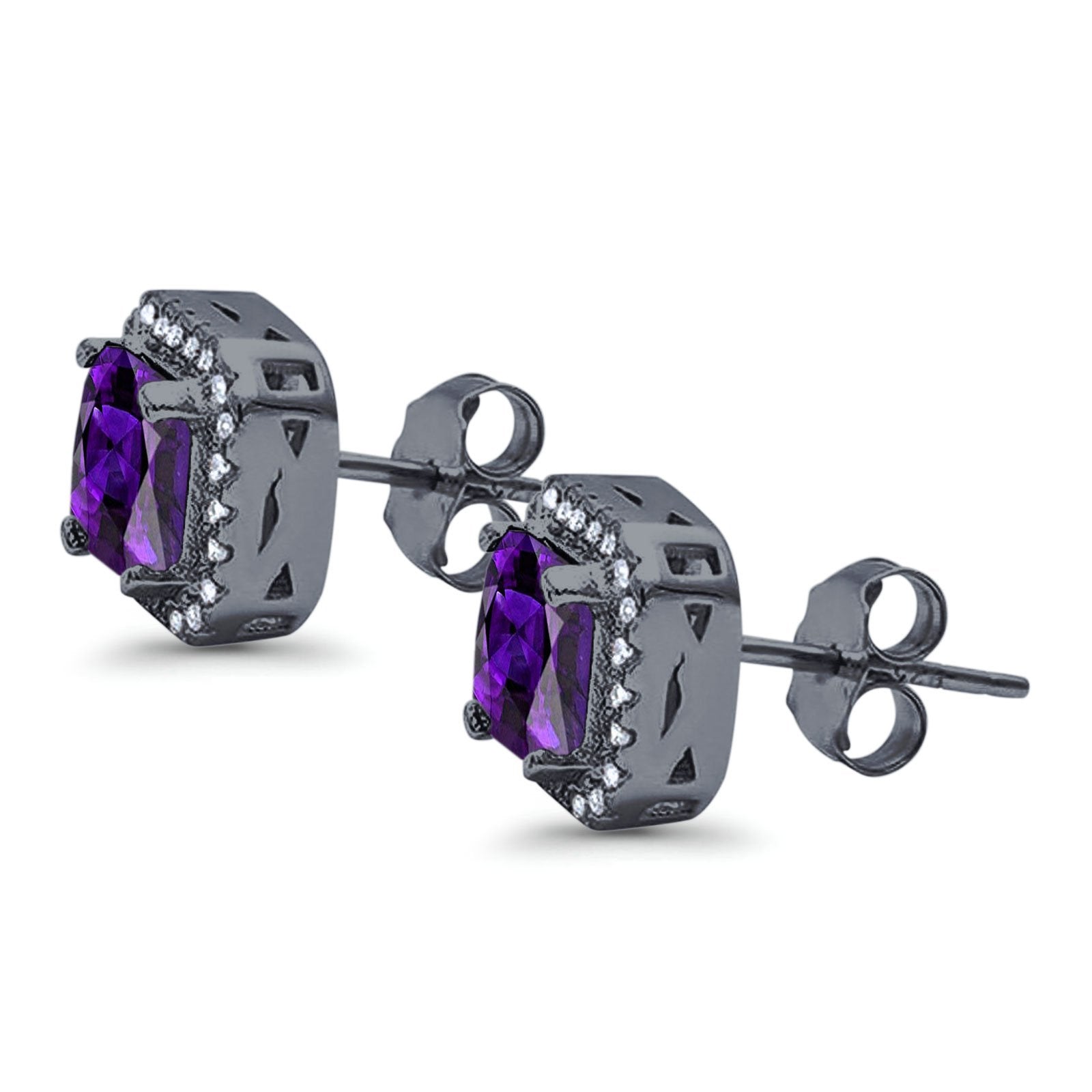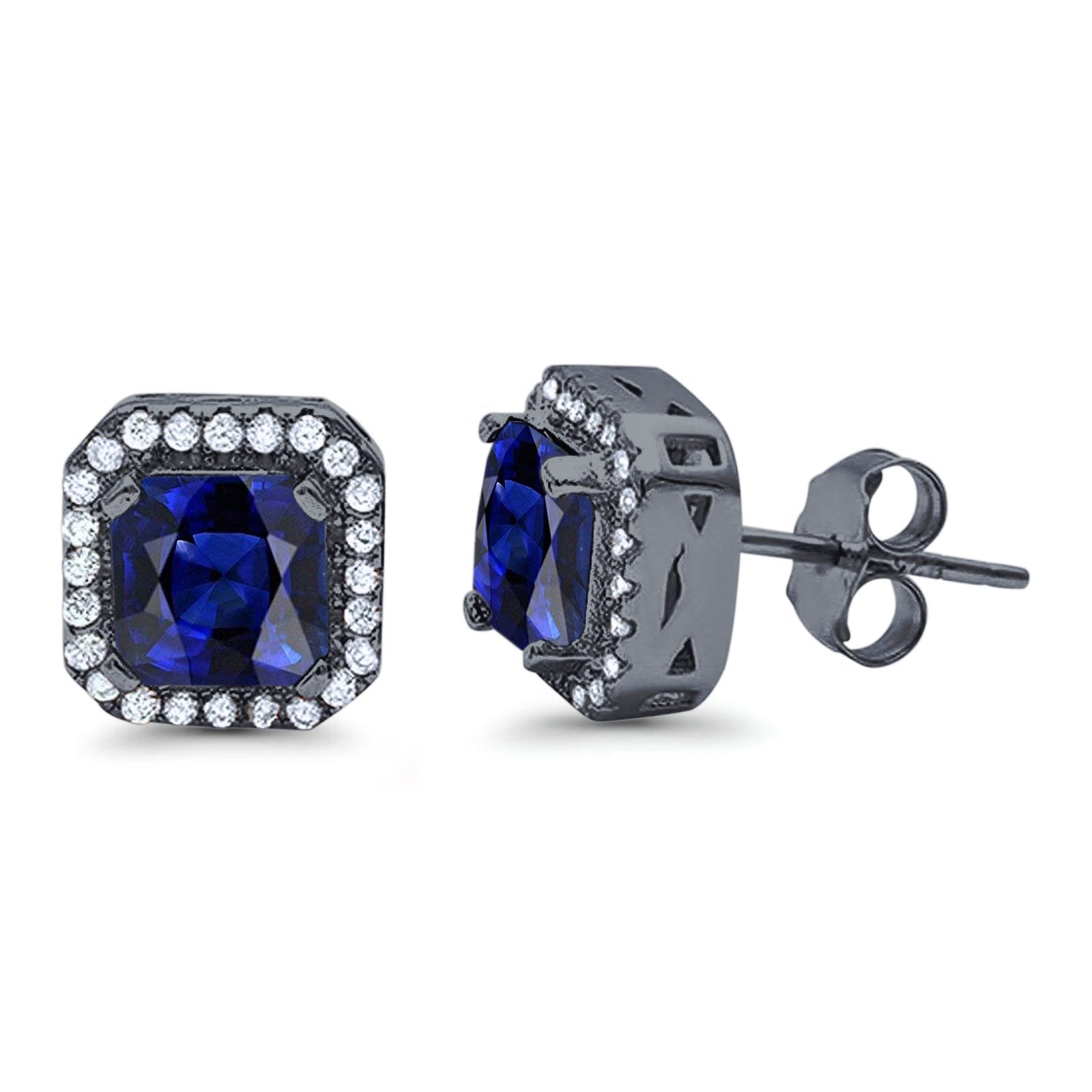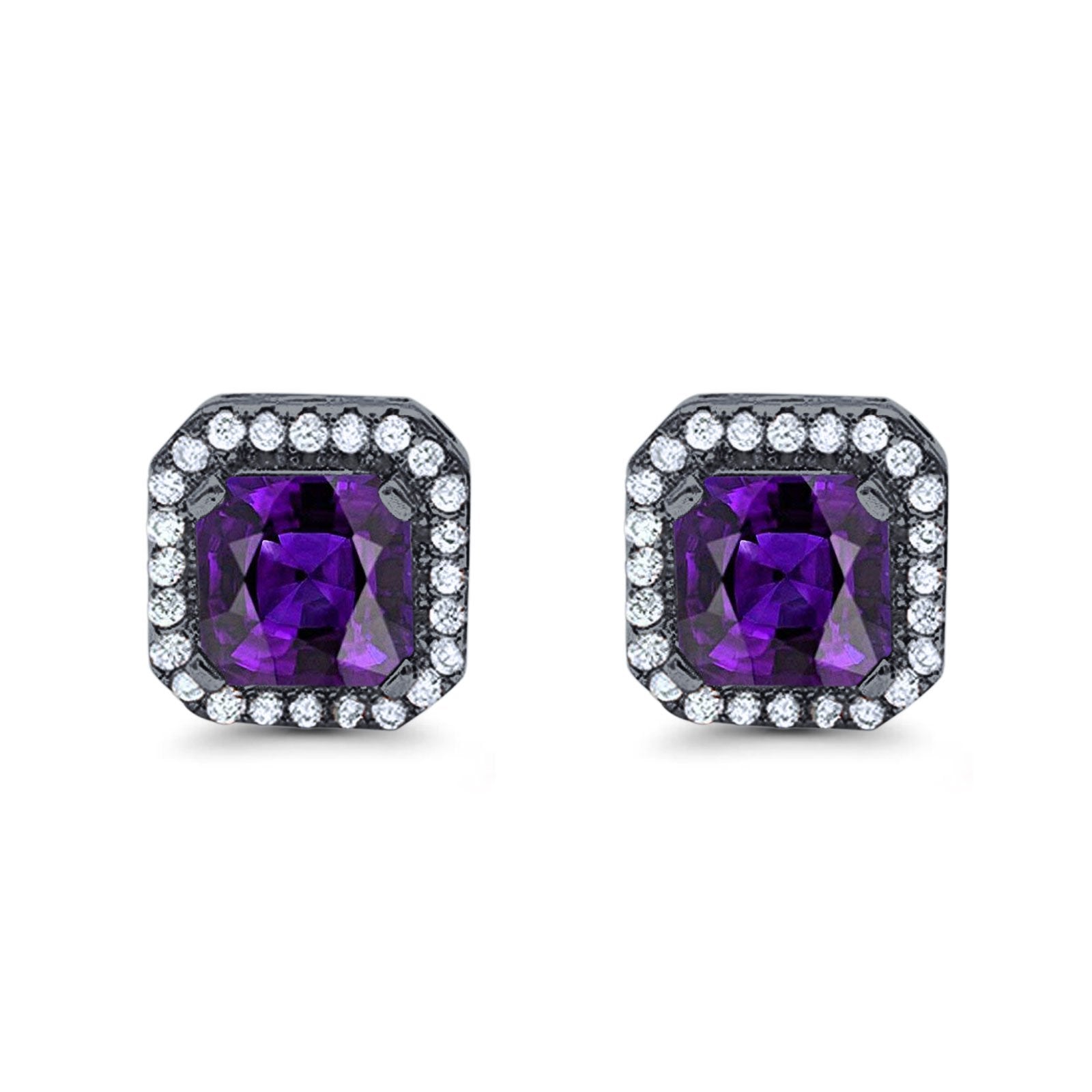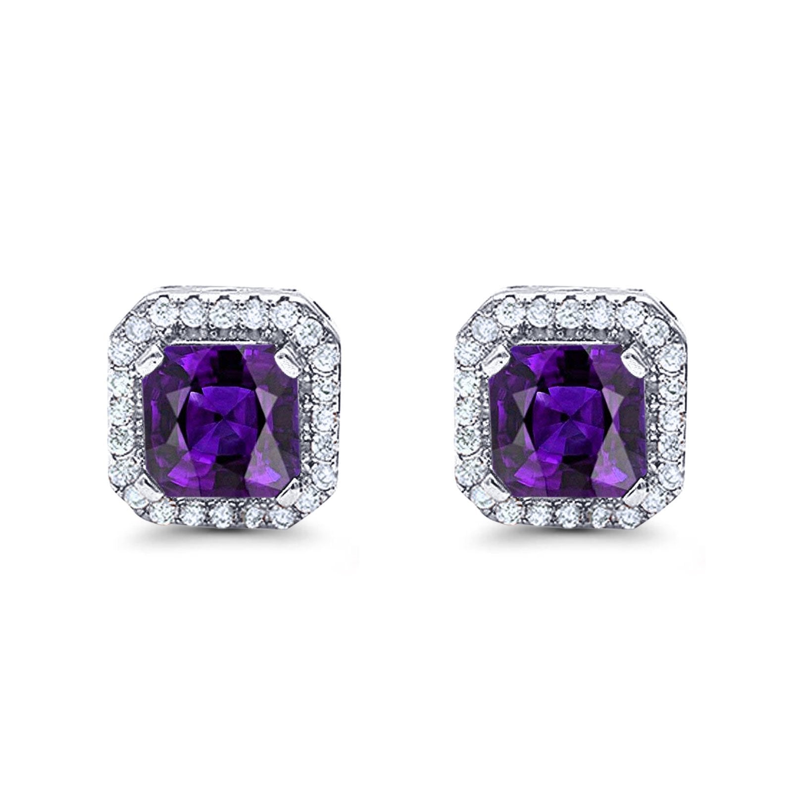 Stud Earrings Wedding Bridal Princess Simulated Cubic Zirconia Solid 925 Sterling Silver